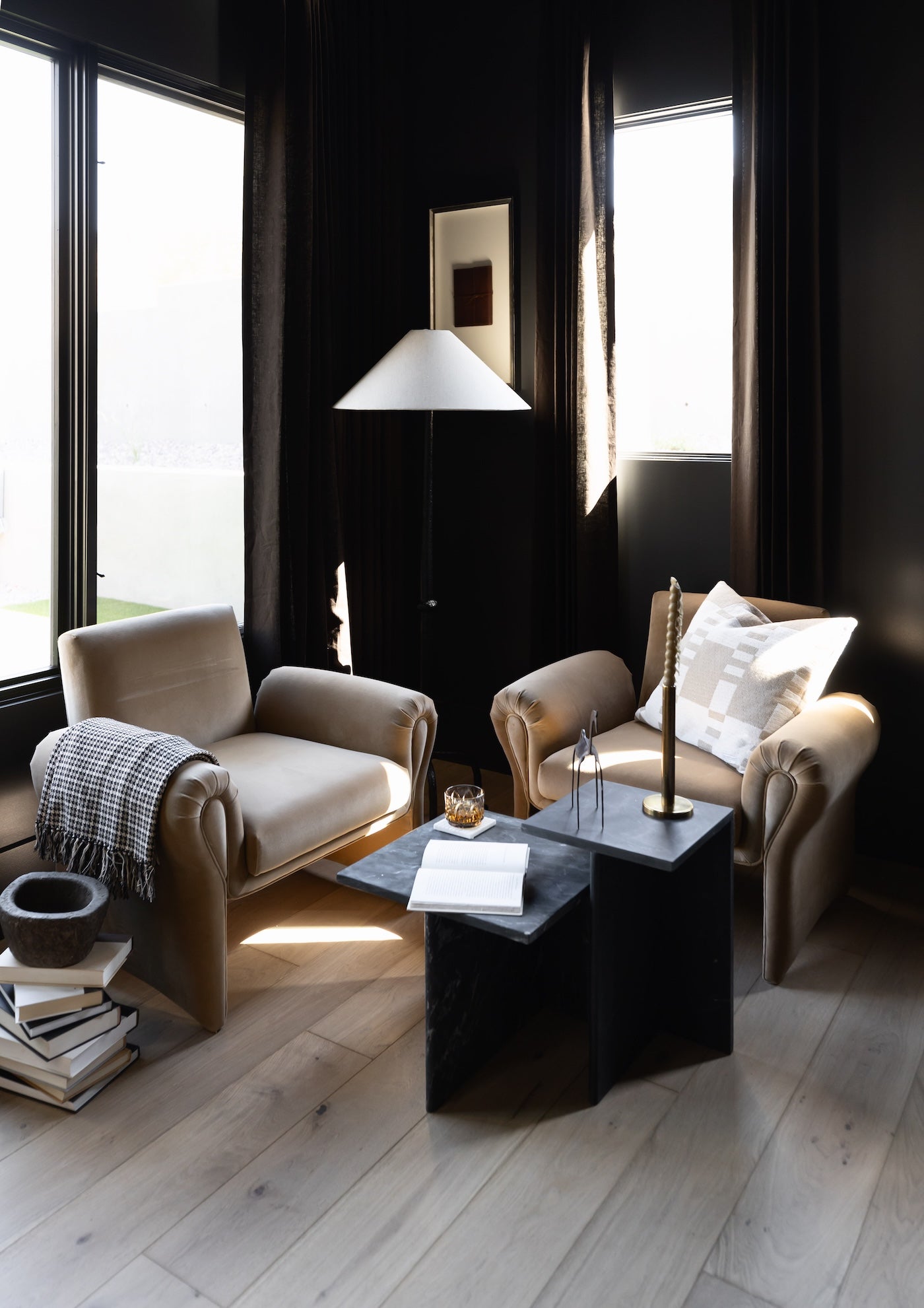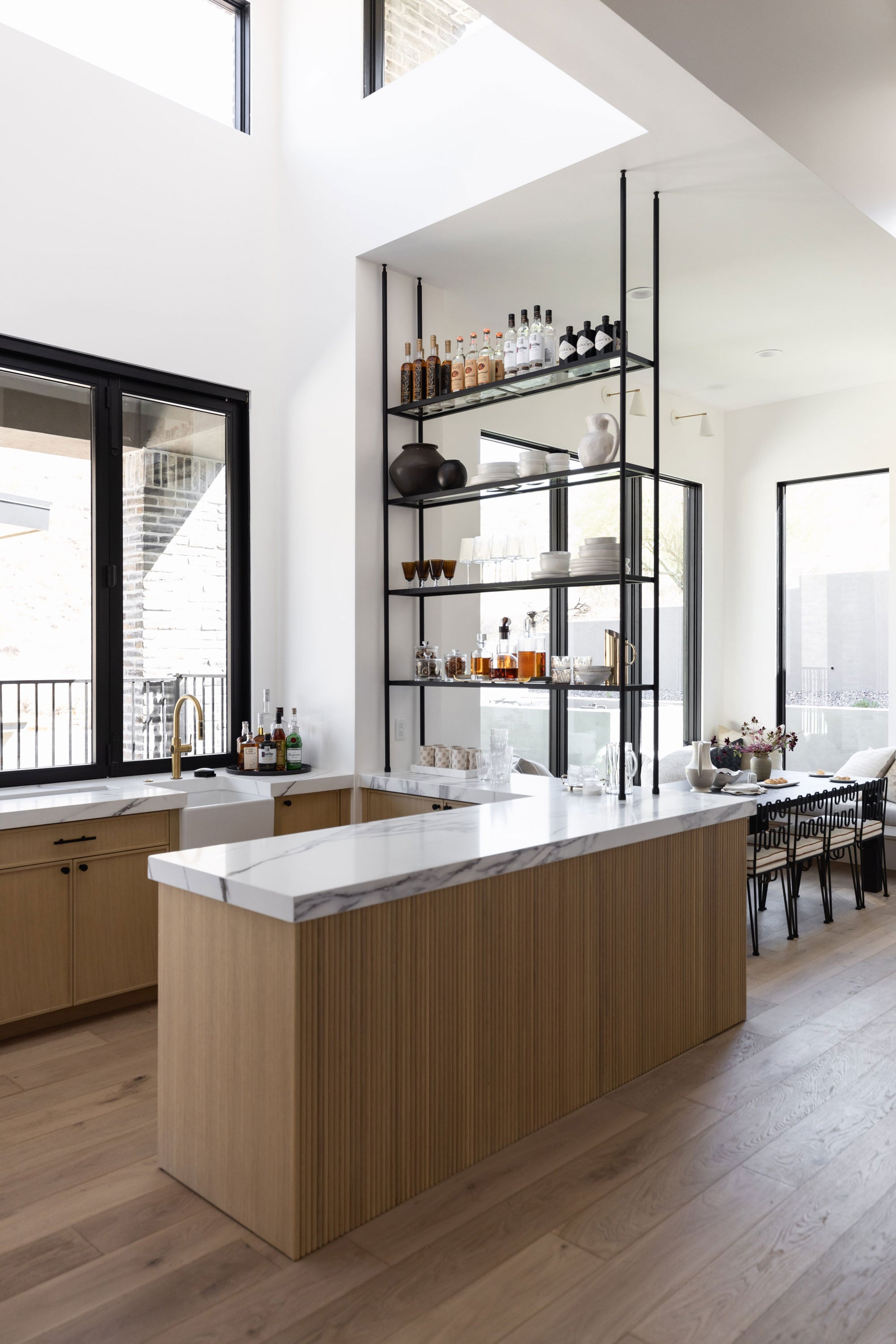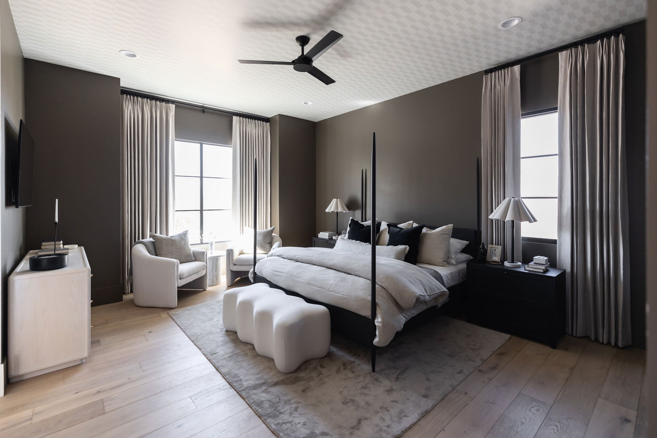 Nestled into the side of a Phoenix mountain, our #BigDaddyProj is a stunning 8,000 sq. ft. residence that marries bold sophistication with swanky, high-end design! The home features five expansive bedrooms, four full bathrooms, and three half baths. At the heart of the home lies a luxurious basement inspired by the Global Ambassador hotel, complete with a golf simulator, a sleek bar, and a double-sided custom chaise designed for entertaining! A curated collection of family records adds a personal touch, creating a space both refined and inviting. The attached casita, with the allure of a boutique Airbnb, offers a serene, hotel-like retreat for guests, blending comfort with chic, tailored design! Every corner of this home reflects a perfect balance of luxury and intimate detail, creating an unforgettable home for our clients!