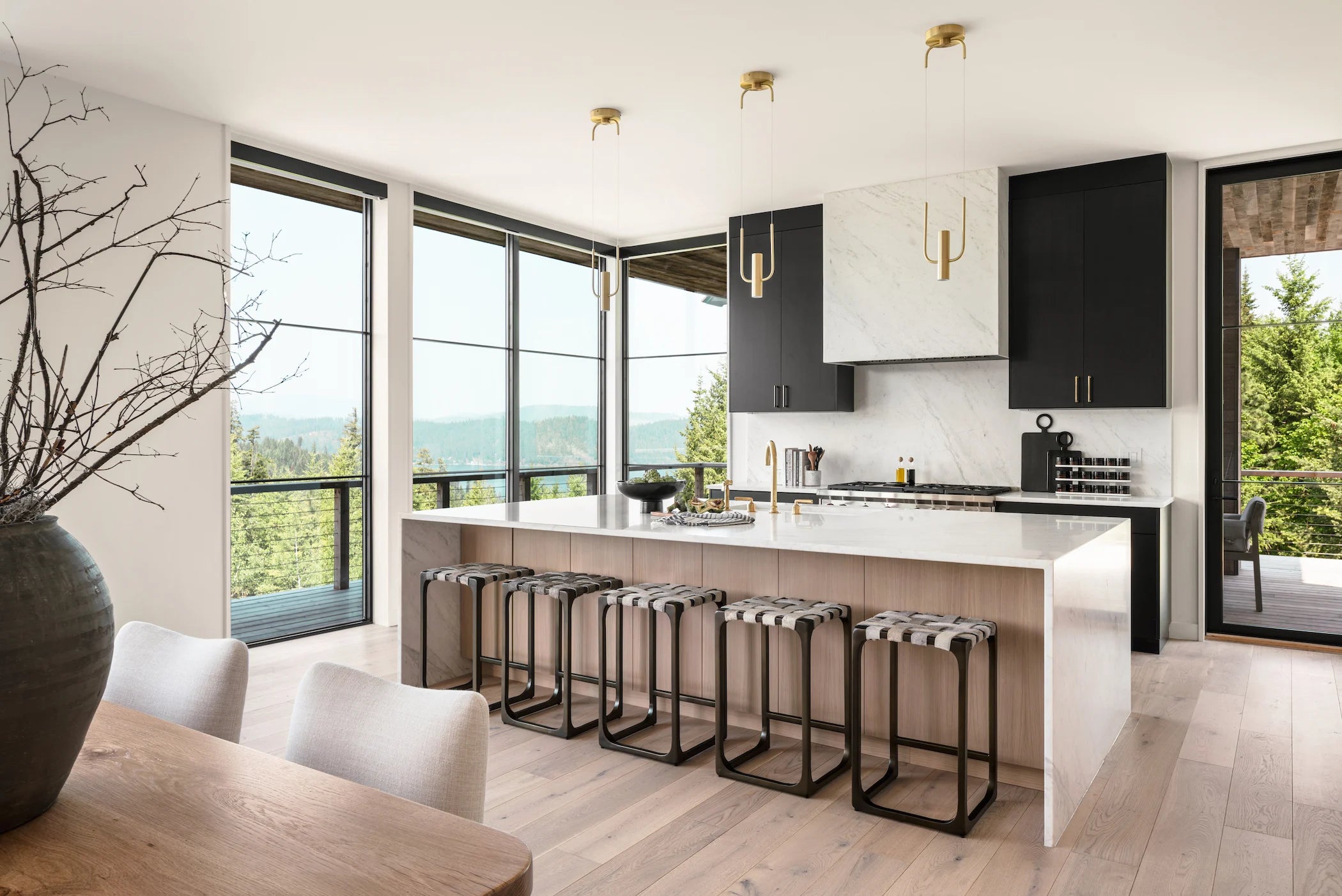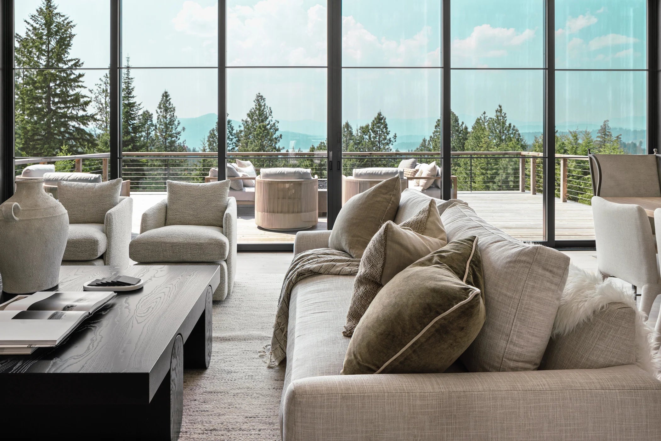 This interiors project is situated in the exclusive Gozzer Ranch Golf & Lake Club, which is nestled in the breathtaking Coeur d'Alene, Idaho! Our clients wanted their home to capture the essence of Idaho while avoiding any kitschy elements, so our goal was to create a sophisticated and elegant space that reflected the natural beauty of the surroundings. Elements like a fur throw and a thoughtfully placed cowboy hat were among the small details that added a touch of local charm without overwhelming the overall aesthetic. As a vacation home, this 6,700 sqft three-story residence was designed to provide both comfort and relaxation for the family. One of the standout features of this home is the breathtaking views that can be enjoyed from various vantage points. With attention to detail and a keen understanding of the clients' vision, this home perfectly encapsulates the allure of Gozzer Ranch and Coeur d'Alene, providing an idyllic retreat for the family!