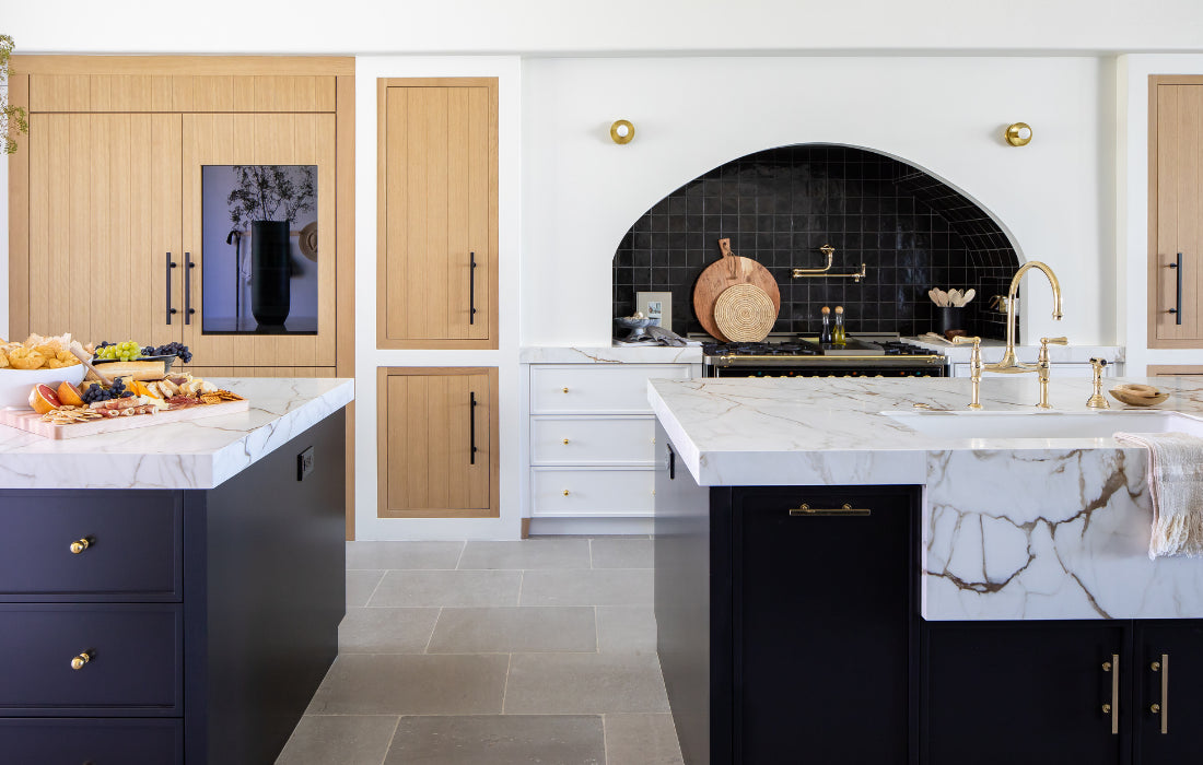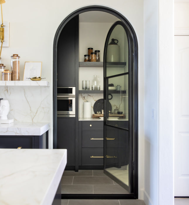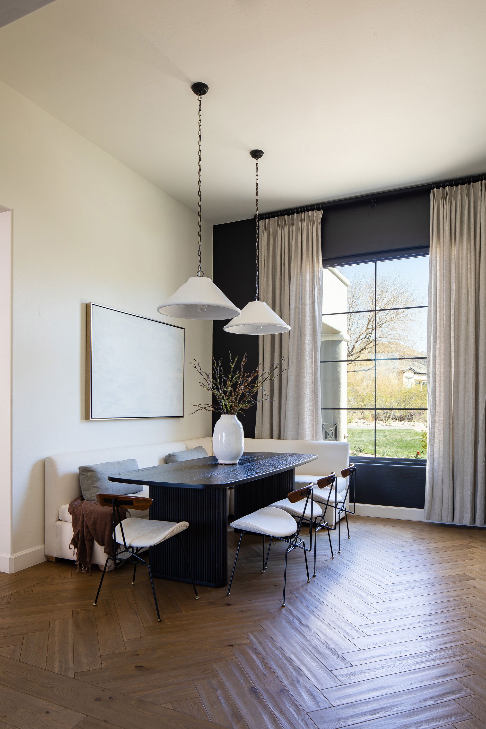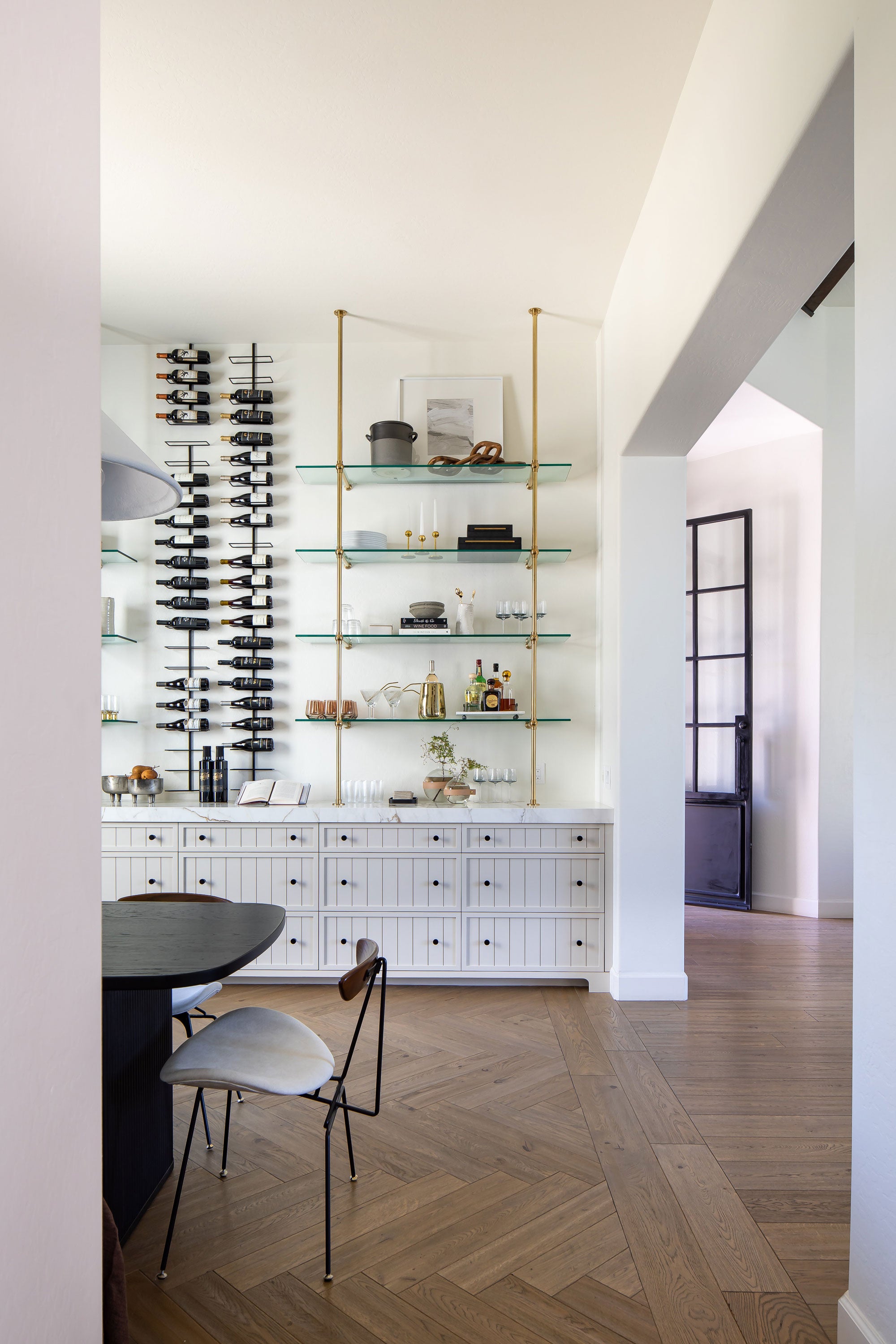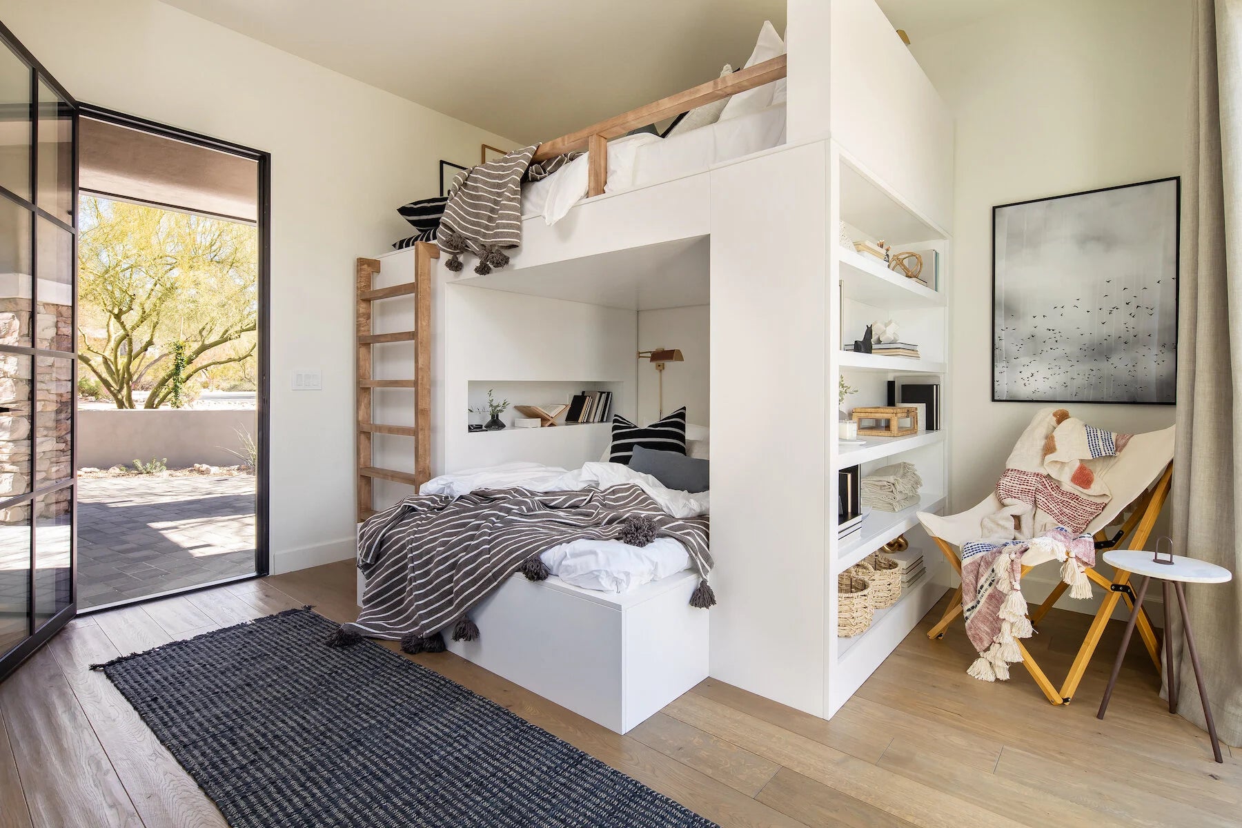 The appropriately named #CoolShitProj (it'll be easy to see why!!), was a renovation and interiors project located in Scottsdale, AZ. Using a bold iteration of our trademarked aesthetic, Organic Desert Living, we completely transformed the previously dated home into a modern, sophisticated sanctuary this family of four would be able to enjoy, and entertain in, for years to come. We incorporated a lot of COOL SHIT into the design, including the arched hood, double islands and doggie station in the kitchen, the custom bunk beds in the guest house, and a formal dining room complete with stunning custom shelving and built in banquette seating.