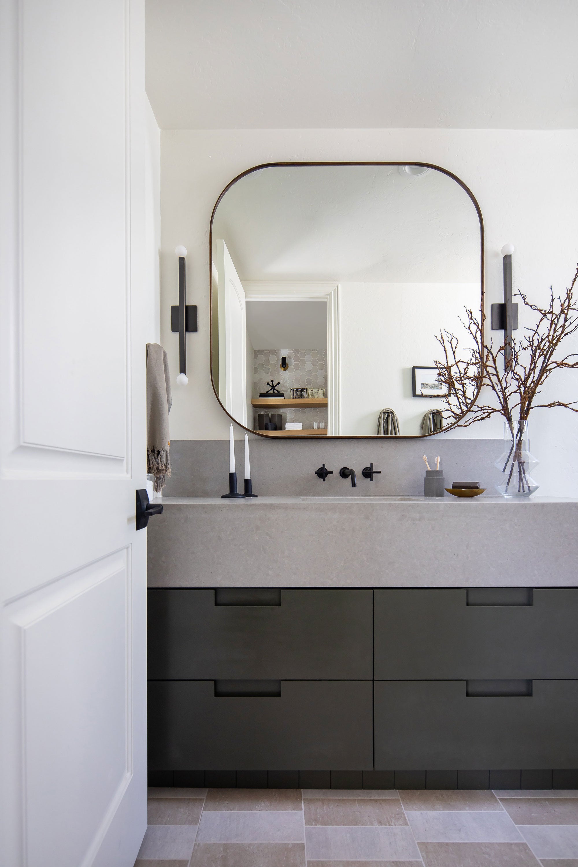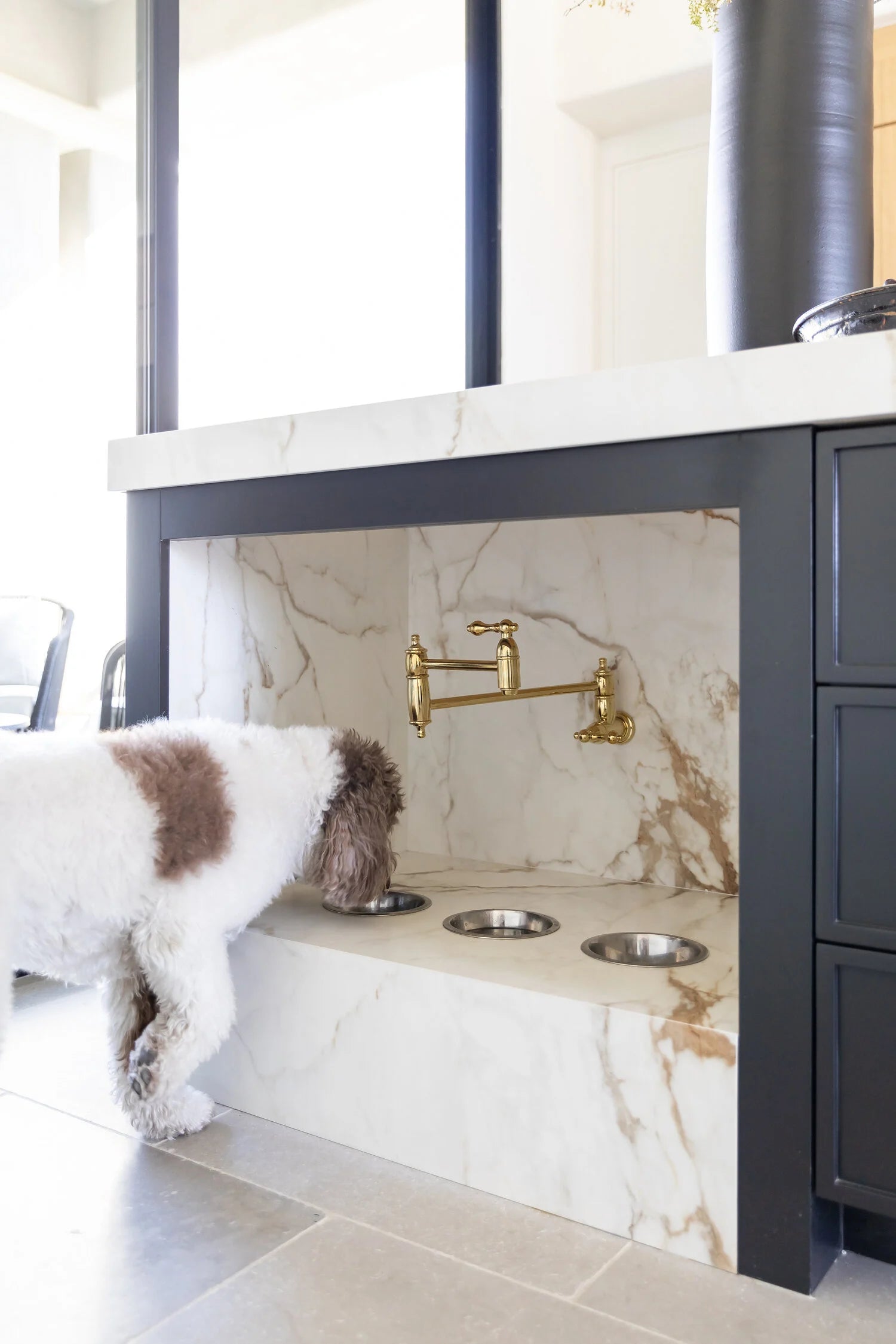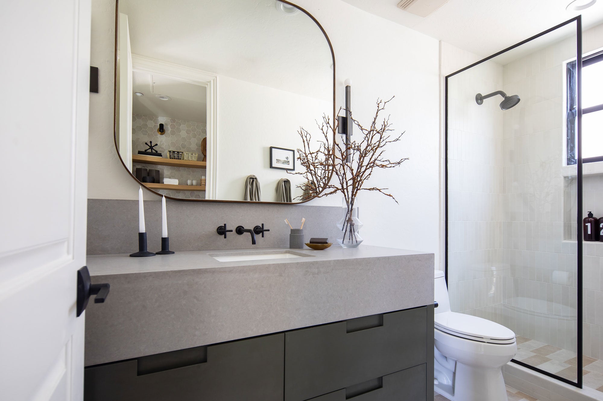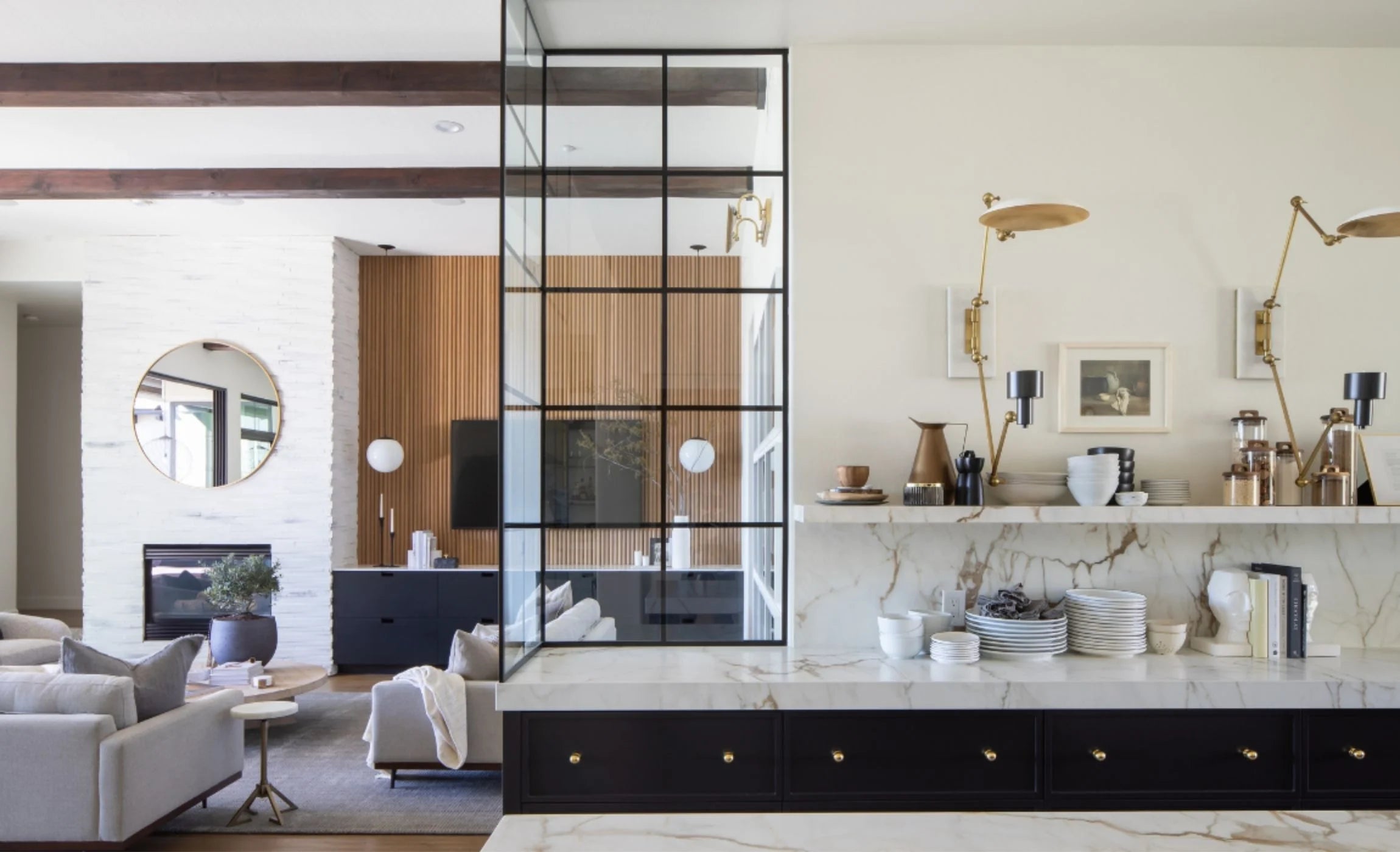 The appropriately named #CoolShitProj (it'll be easy to see why!!), was a renovation and interiors project located in Scottsdale, AZ. Using a bold iteration of our trademarked aesthetic, Organic Desert Living, we completely transformed the previously dated home into a modern, sophisticated sanctuary this family of four would be able to enjoy, and entertain in, for years to come. We incorporated a lot of COOL SHIT into the design, including the arched hood, double islands and doggie station in the kitchen, the custom bunk beds in the guest house, and a formal dining room complete with stunning custom shelving and built in banquette seating.