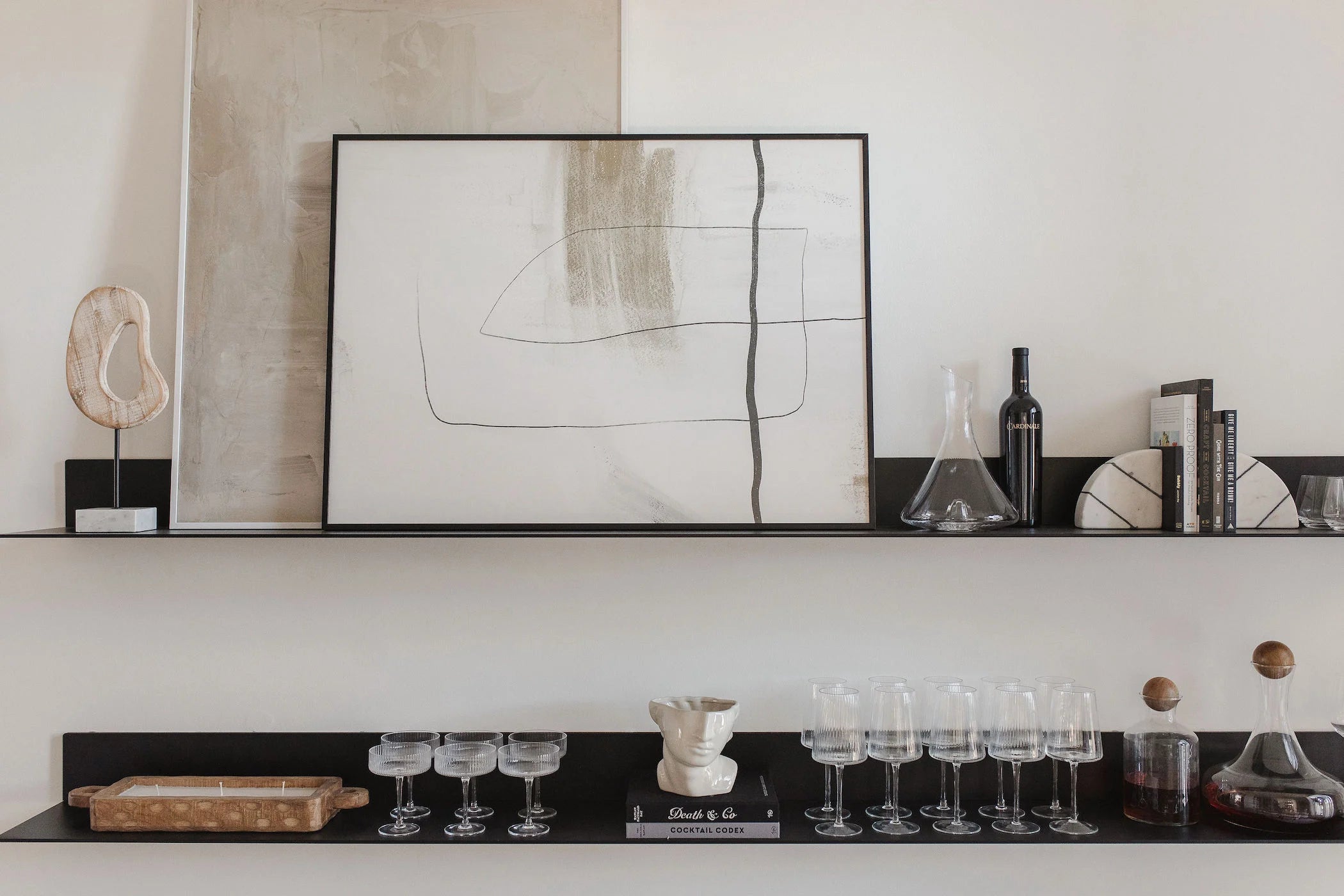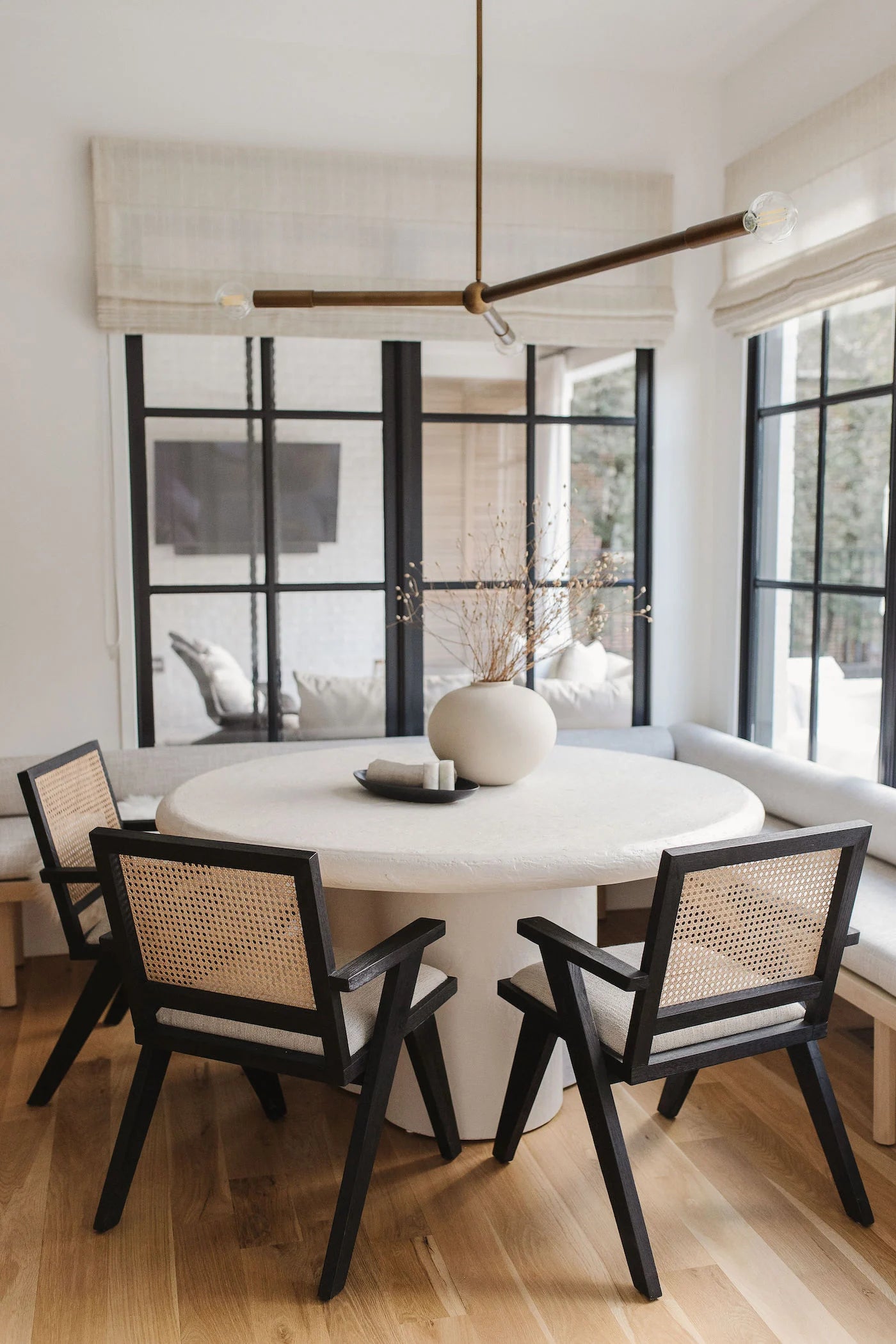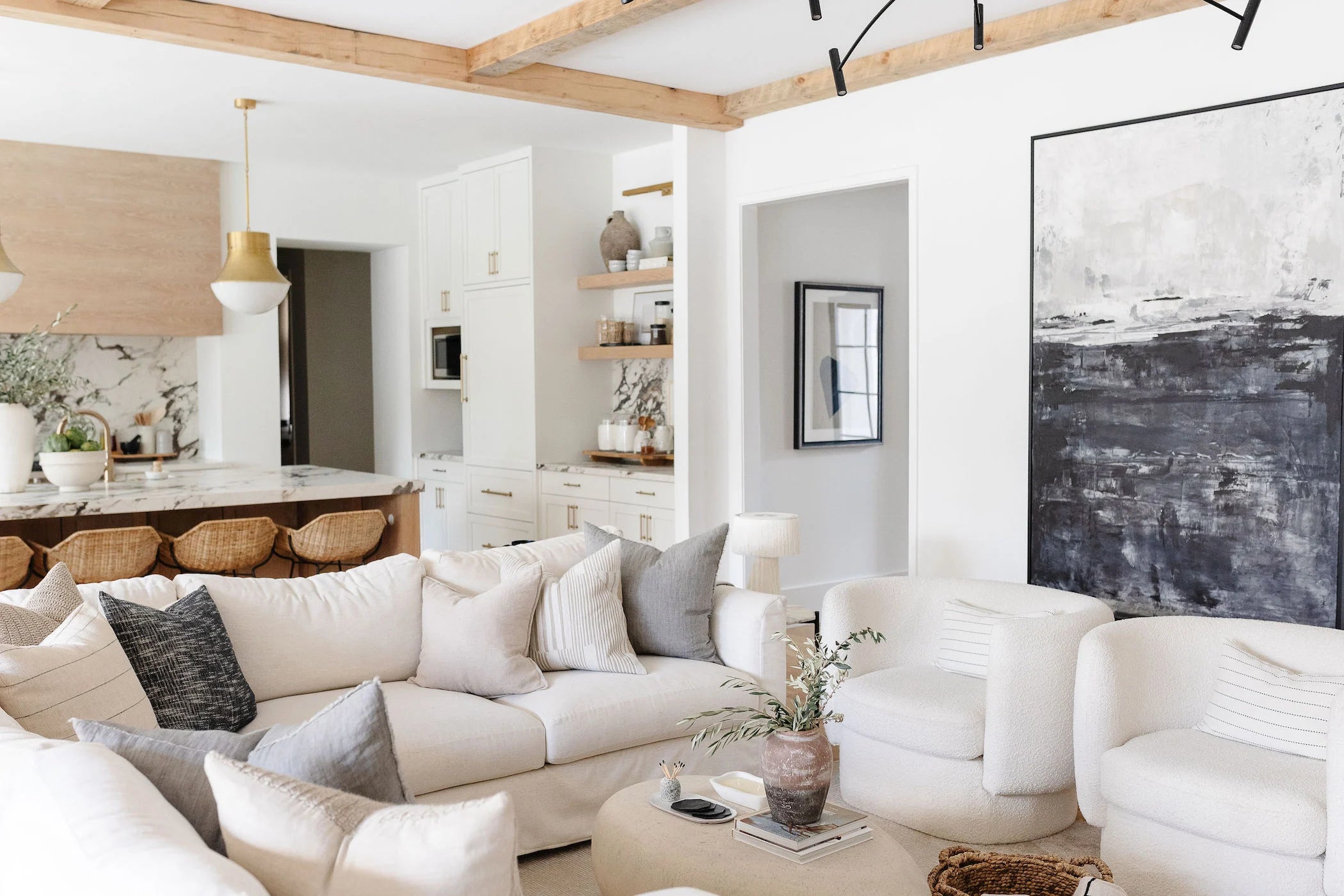 Inspired by the Design influence of Wabi Sabi and the Santa Monica Proper Hotel, this 6,000 sqft, three-story new build is a neutral lover's dream! Located in the suburbs of Atlanta, Georgia this Southern home is the perfect abode for this family of three. While our clients selected the hardscape finishes, our team, led by RJ Bialkowski, completed this project and brought our client's vision to life with lighting and furnishings! Our client wanted neutral and modern styling, yet still wanted to take risks with various bold Design elements. The basement is the perfect example of this; we chose to paint it black floor to ceiling and add texture with a Roman Clay finish for a moody vibe. Each space throughout this home is outfitted with oversized lighting, furniture in various materials and tones, and styling that is layered for a unique, yet timeless aesthetic.