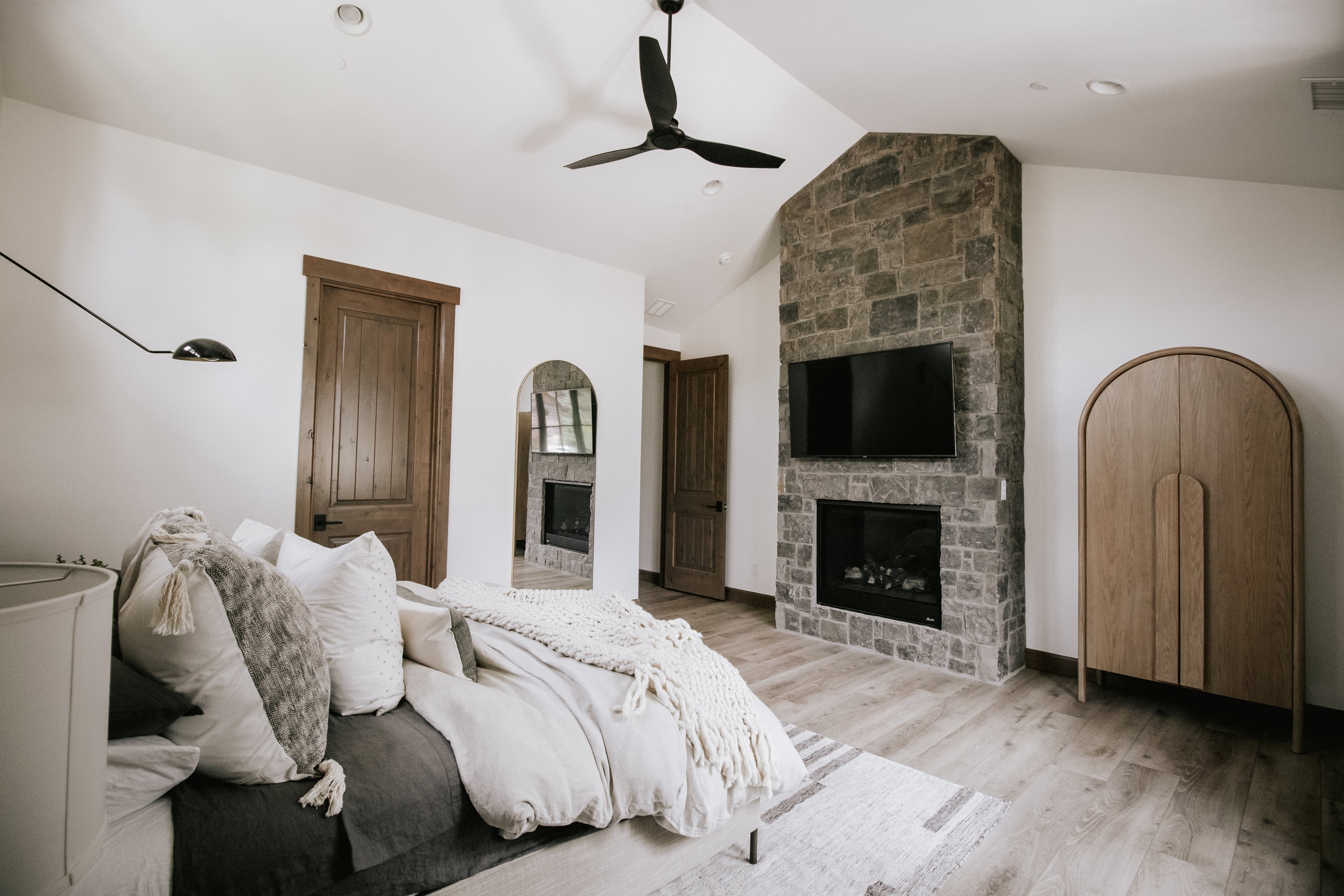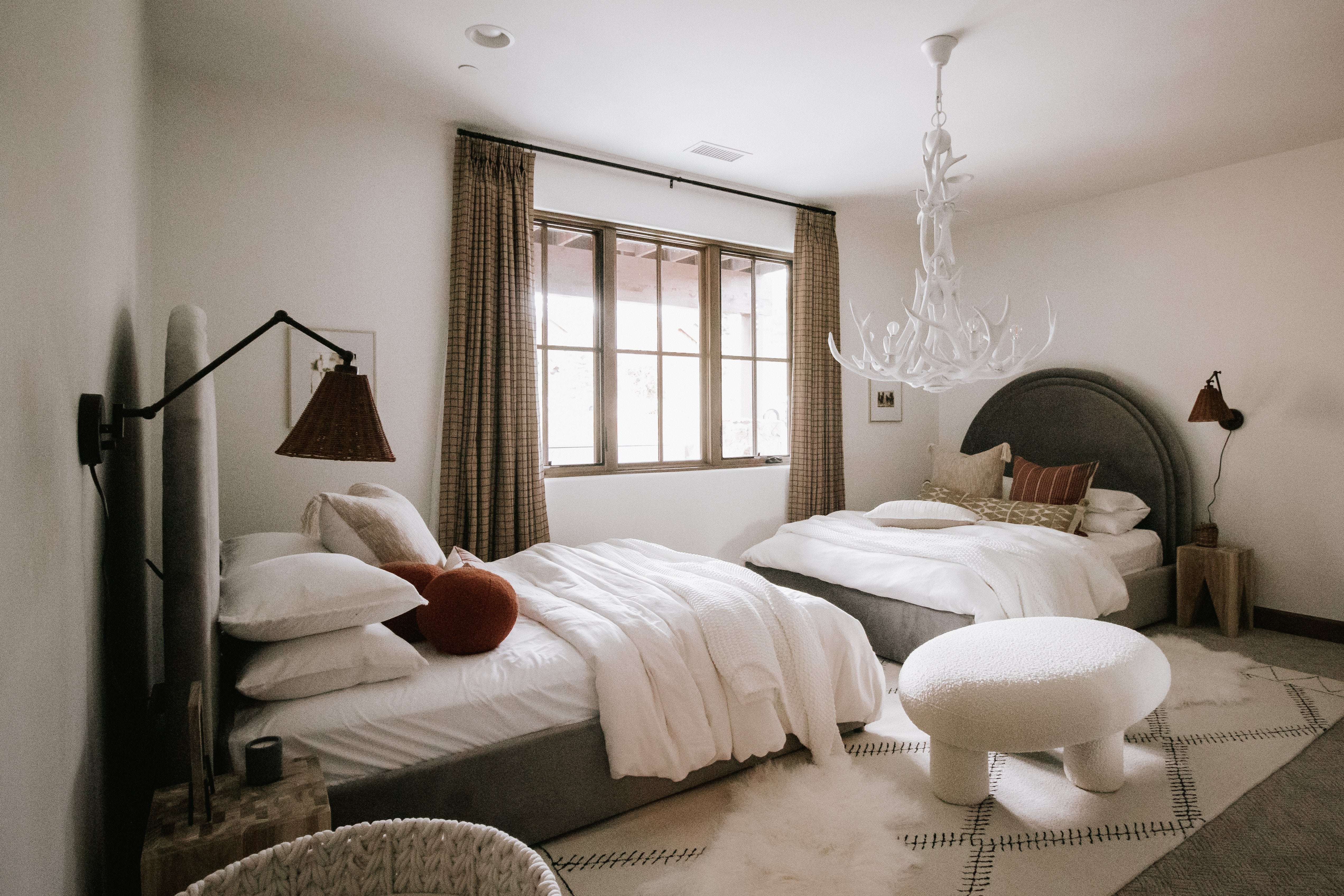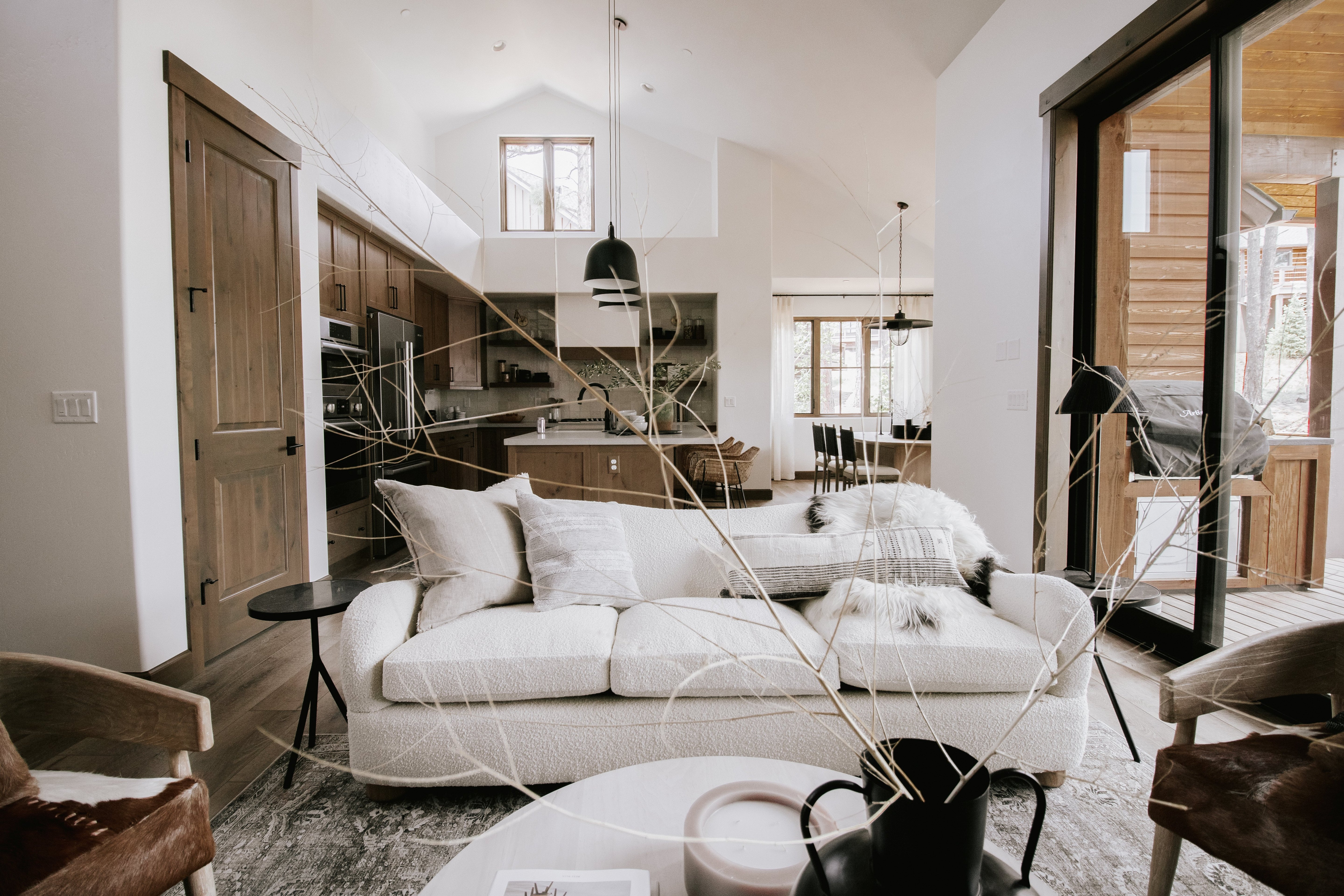 If we had to dream of an Organic Desert Living cabin, this would be IT! This build design + full interiors project is located in the snowy Northern Arizona city of Flagstaff, yes it snows in Arizona! This family wanted a highly functional home where they could entertain friends and family, while making sure to have spaces for teens. The downstairs has ample seating and is suited for hosting, while the upstairs is elevated and sophisticated. There was no detail left untouched in this project, and we hope we get invited for a (snowy) dinner party this winter!