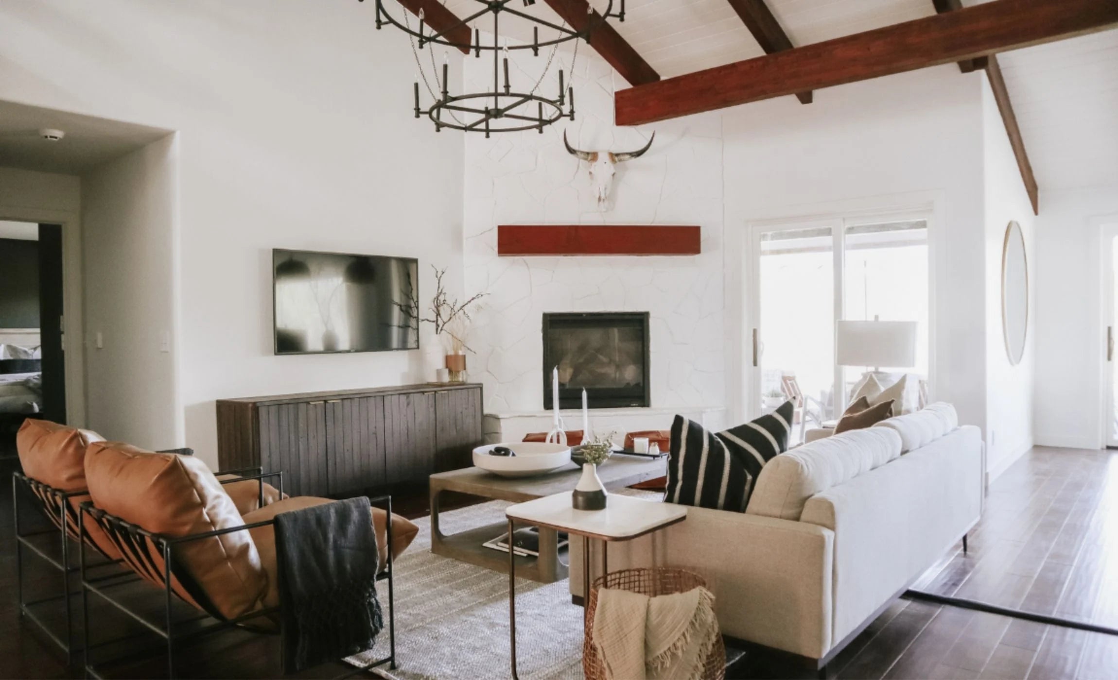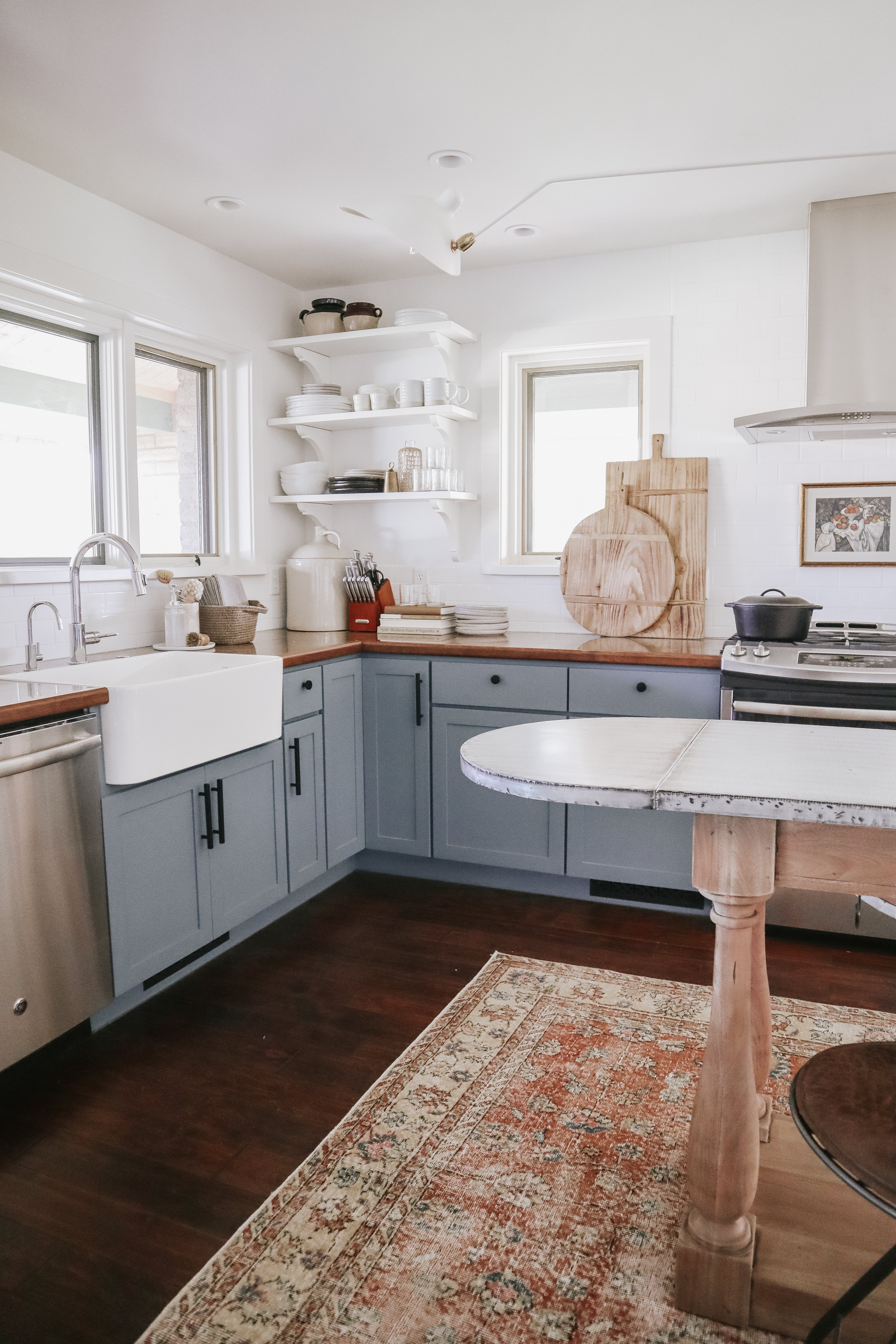 Our Design Team fully embraced the country vibes in this Northern Arizona home to create a rustic and earthy abode for our clients. By only painting the walls, the muted blue cabinets and wood finishes were able to stand on their own and truly make you feel like you were living in your favorite country movie. Adding new furniture and light fixtures gave this home our signature Organic Desert Living® touch! By perfecting incorporating vintage and new, it created a cozy vibe that made us never want to leave!