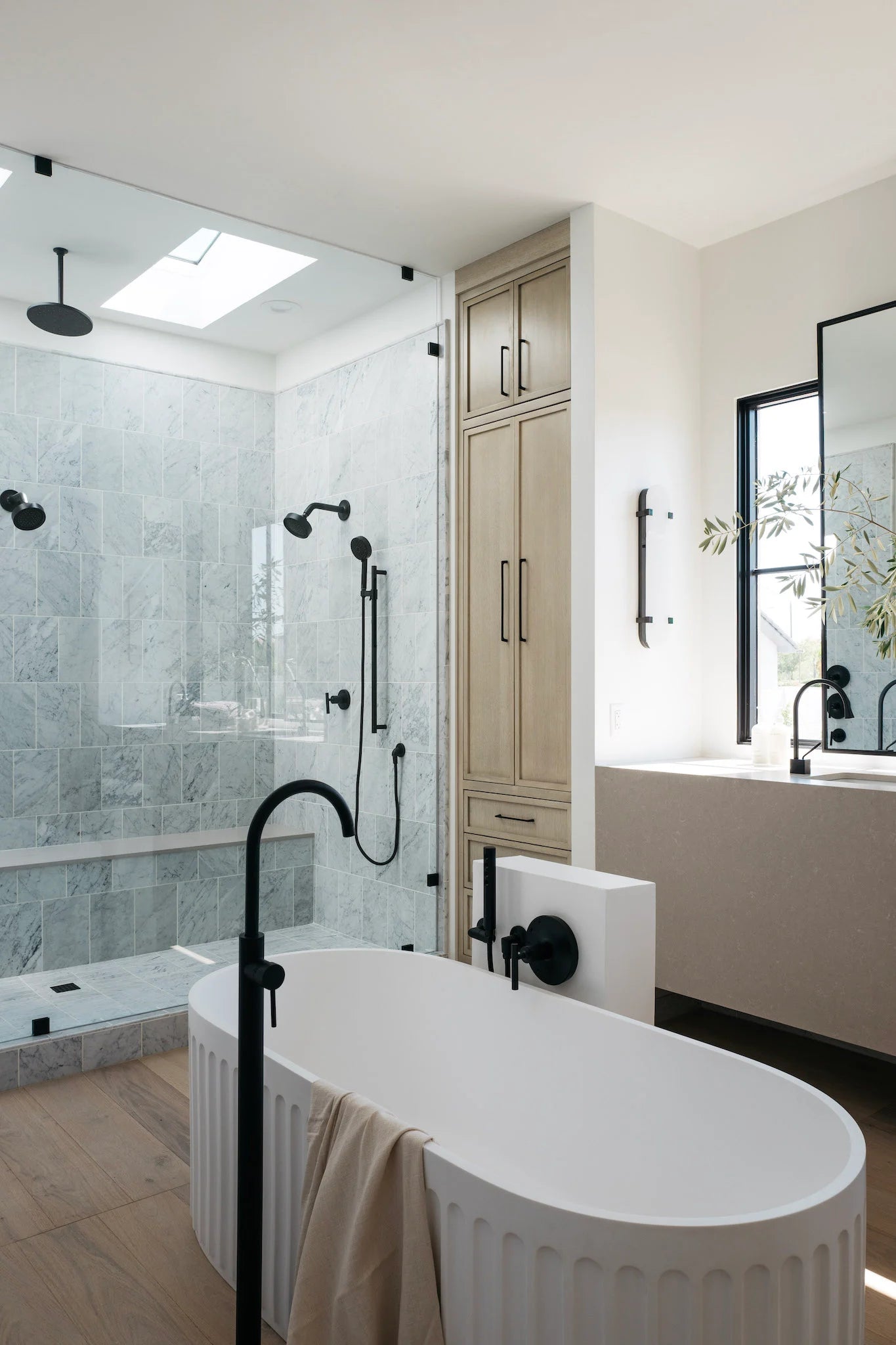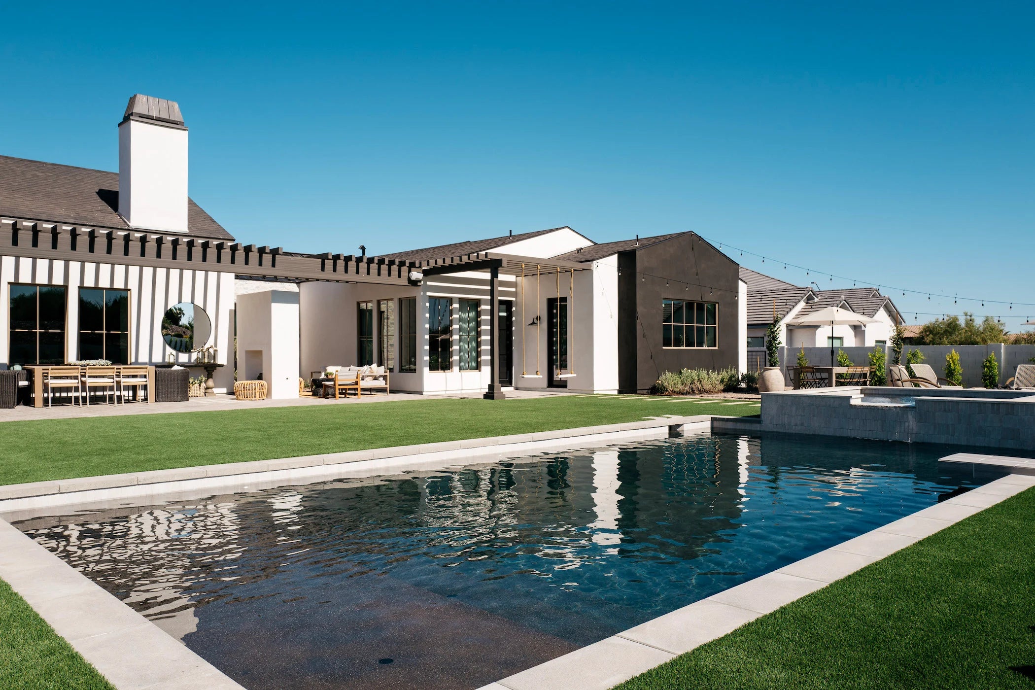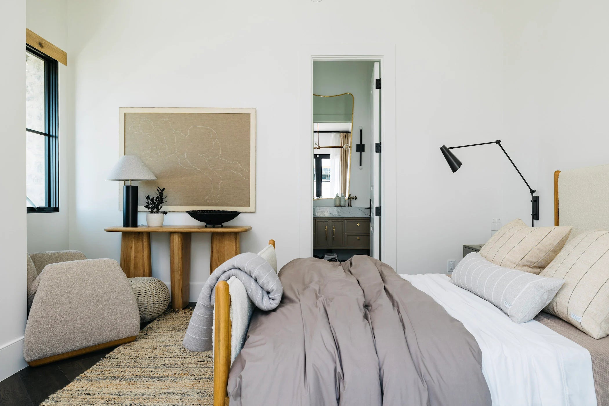 Principal Designer: Kristen Forgione // Builder: Craft Homes // Photography and Videography: Nick Sorensen and Jake Manning // Window Package: Sierra Pacific Windows // Lighting: Hudson Valley Lighting Group // Primary Closets + Desk Built-Ins: Classy Closets // Flooring: Urban Floor // Pavers: Acker-Stone // Countertops: Vadara // Cabinetry: Rysso Peters // Stone Provider: Solstice Stone and Facings of America // Marble Backsplash and Powder Room Sink Fabrication: Creative Stone Designs LLC // Door Hardware: Emtek // Garage Doors: Southwest Garage Doors // Smart Home System: Brilliant Tech // Painter: Brinton Painting // Landscape Design: Yardzen // Local Landscape Contractor: Sherwood Outdoors