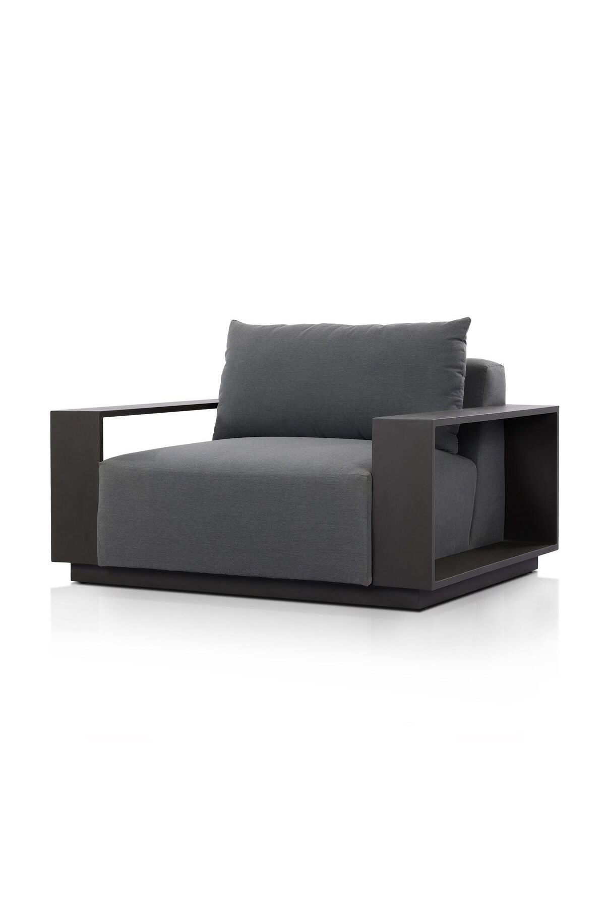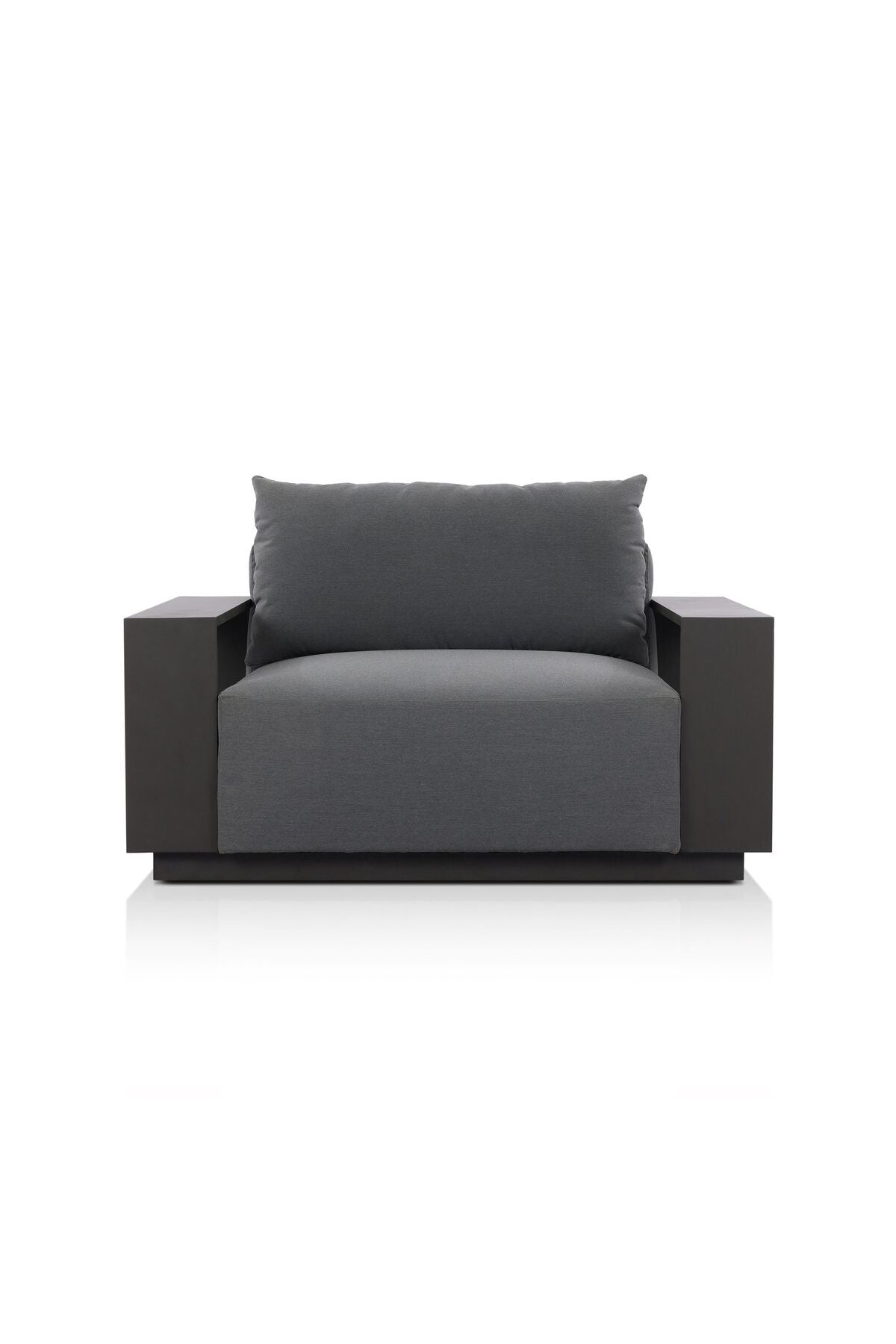 The Branford Outdoor Metal Chair is grand scale sophistication. This wide format outdoor chair features heavy metal framing and upholstery with an inviting sit. Cover or store indoors during inclement weather and when not in use.