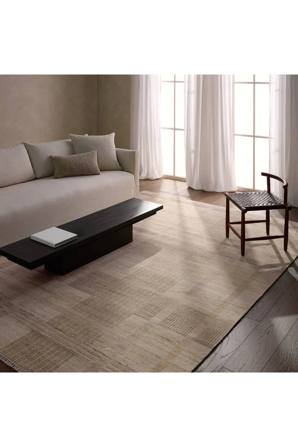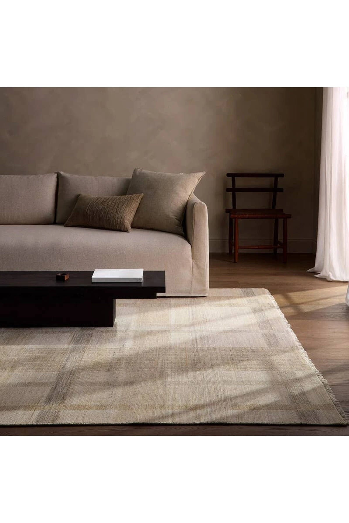 Meet the Centenary Rug. Giving homage to the long lifespan of this handmade masterpiece, the Centenary Rug provides heirloom quality for generations to come. With a spectrum of taupe modern plaid stripes, this rug is 100% wool and made for optimum durability.