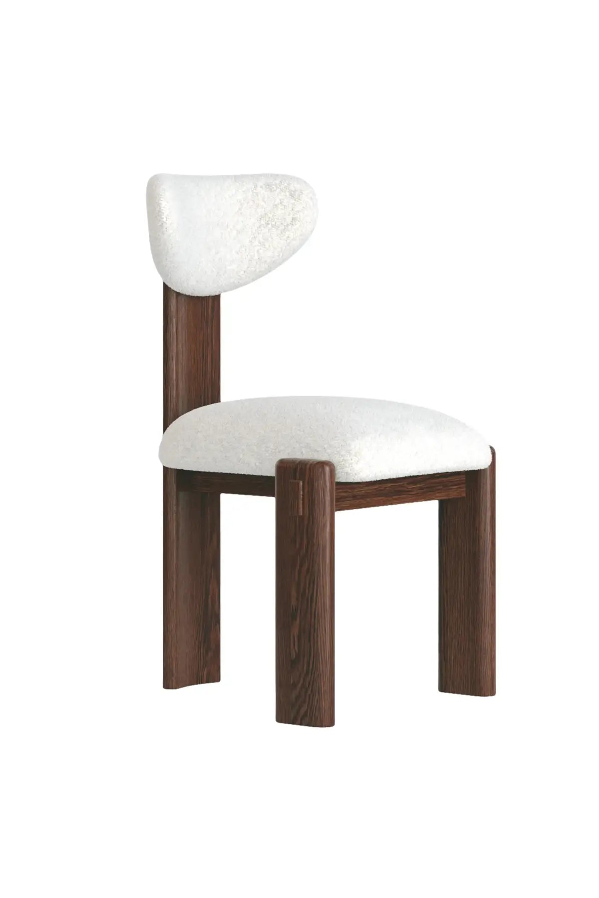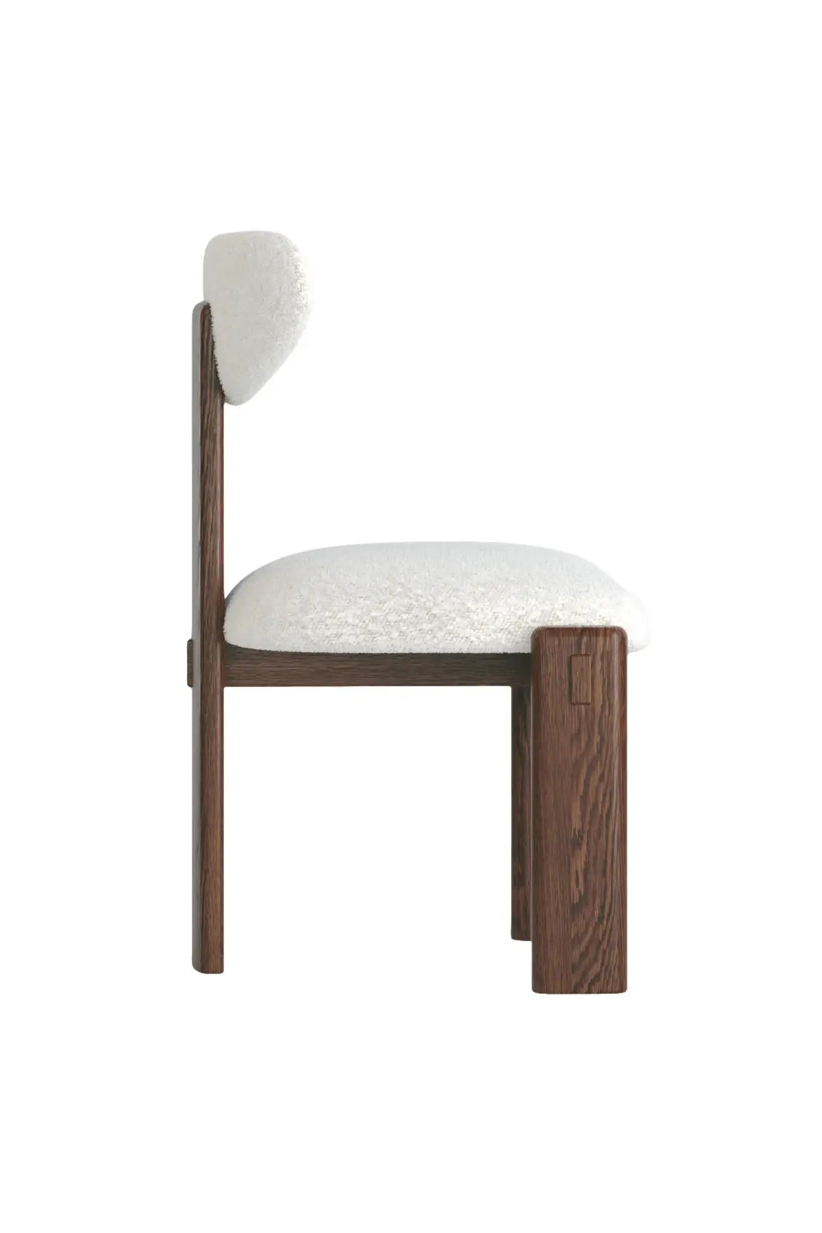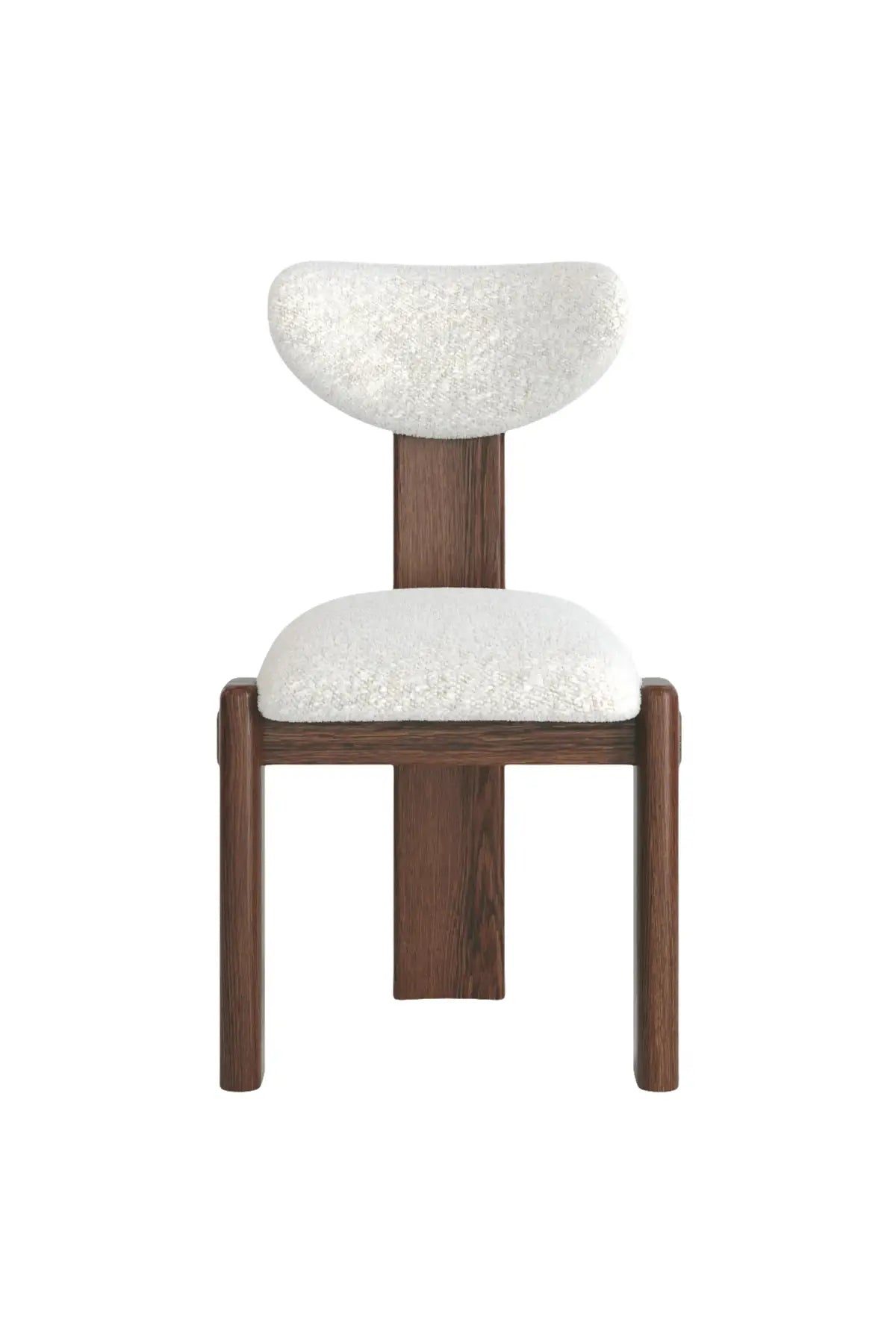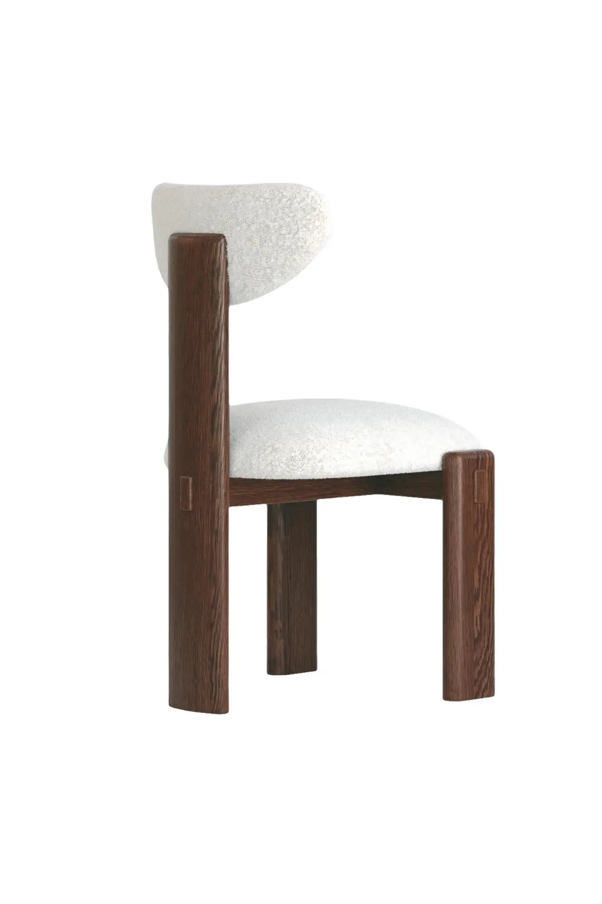 The Elio Dining Chair stands out with its sculptural oak wood frame and curved backrest. Paired with a neutral upholstered seat, it combines style and comfort for modern dining or accent seating.