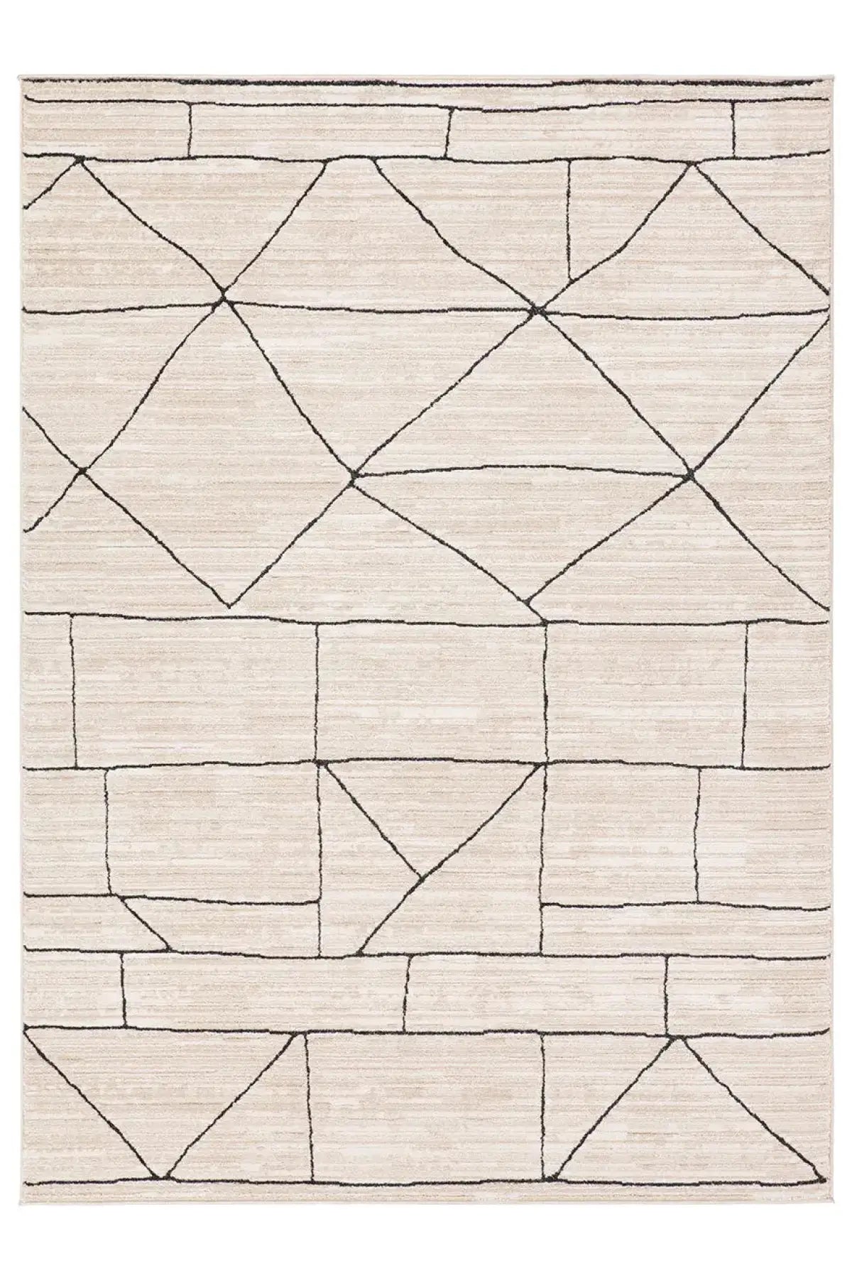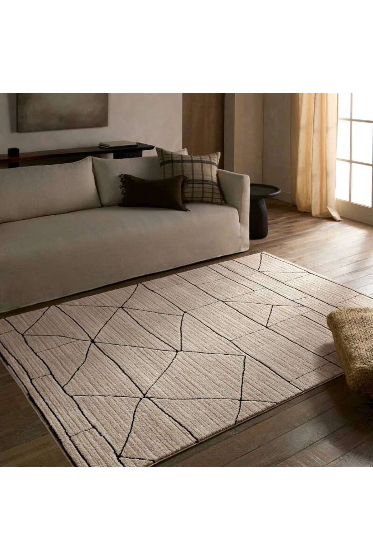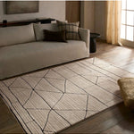 Meet the Eva Rug. Modern design meets high-quality construction with the Eva. A modern geometric design with tonal beige hues offers a simple color mix that adapts to any aesthetic and matches with any mood. Polyester is power loomed with variegated yarn to look like wool without the price tag. Samples are modeled at our North Scottsdale/Phoenix location.