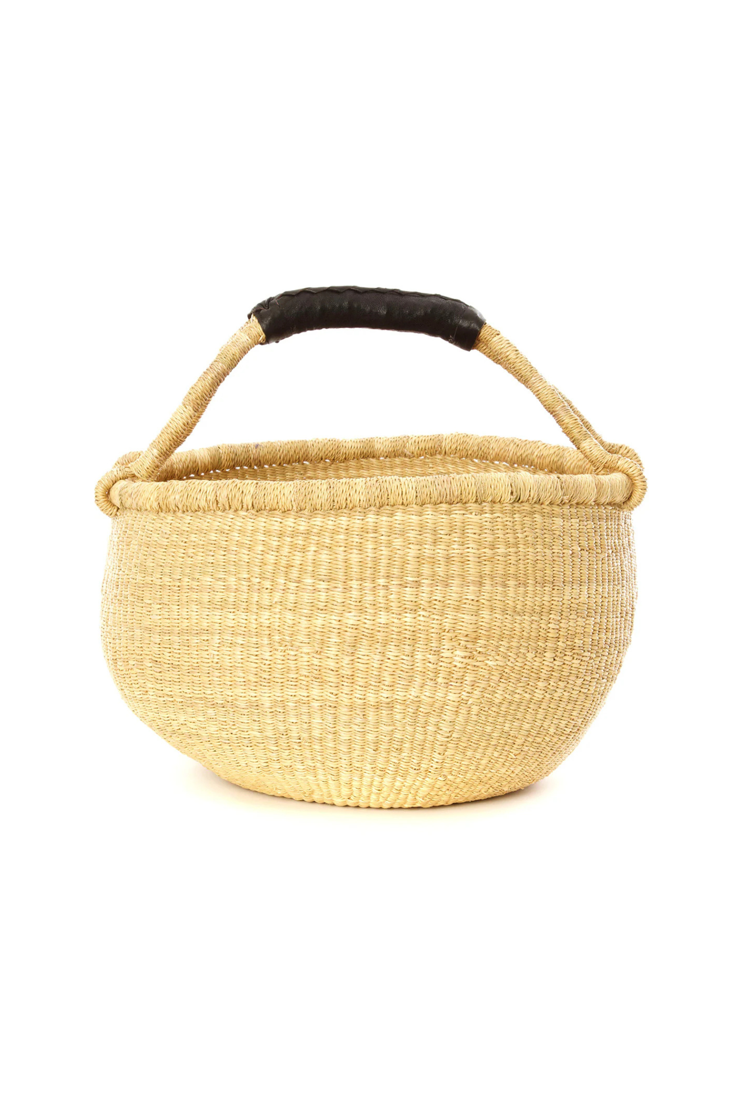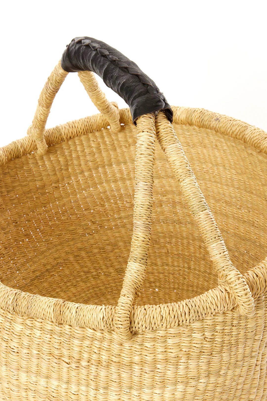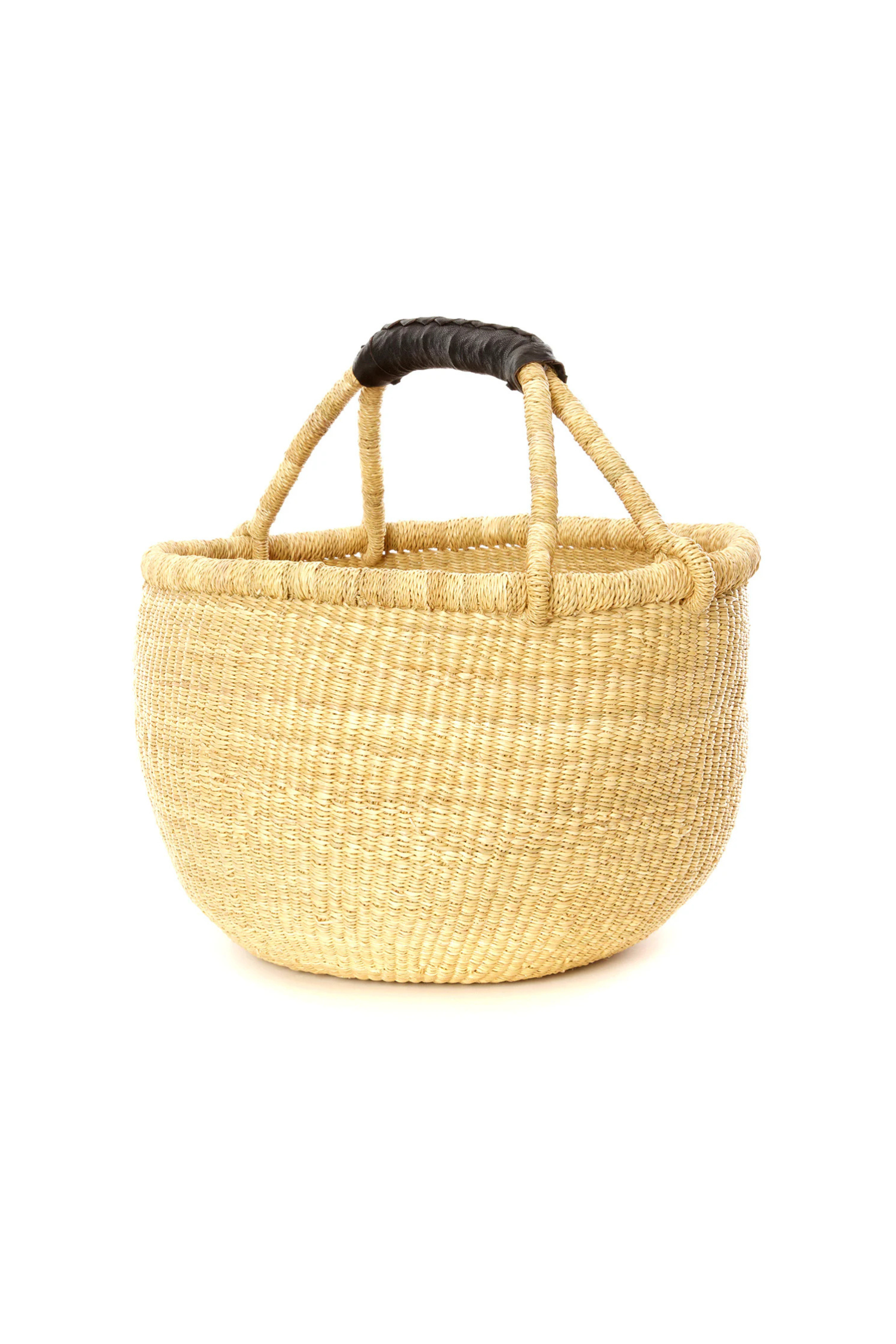 Artisans in the Bolgatanga region of Ghana weave these beautiful and durable baskets from thick, sturdy elephant grass. The Farmer's Market Shopper Basket, a popular choice among shoppers, errand runners, and picnic planners worldwide, combines functionality with timeless beauty. Bolga baskets are built to withstand regular use while remaining stylish and long-lasting.