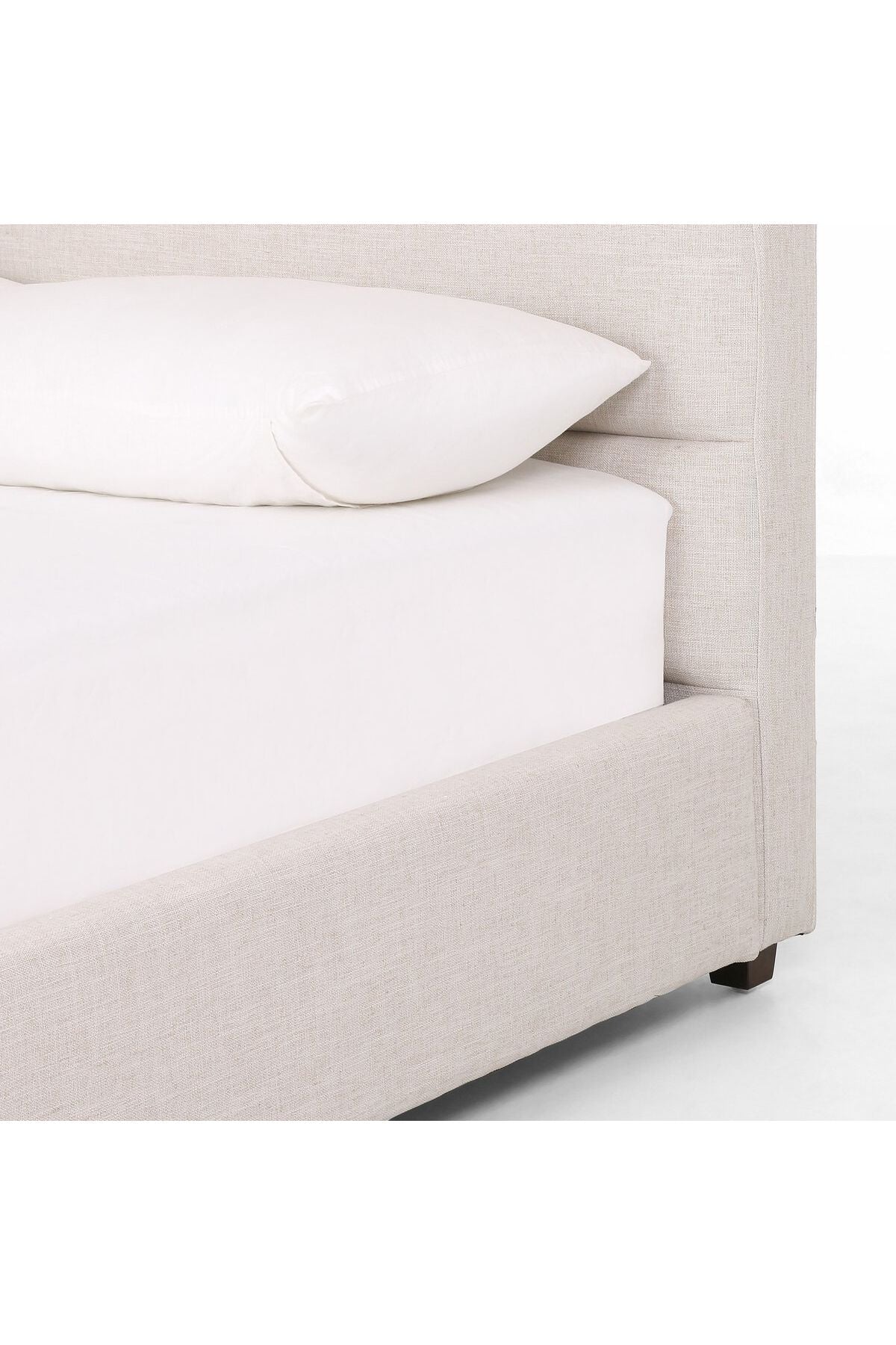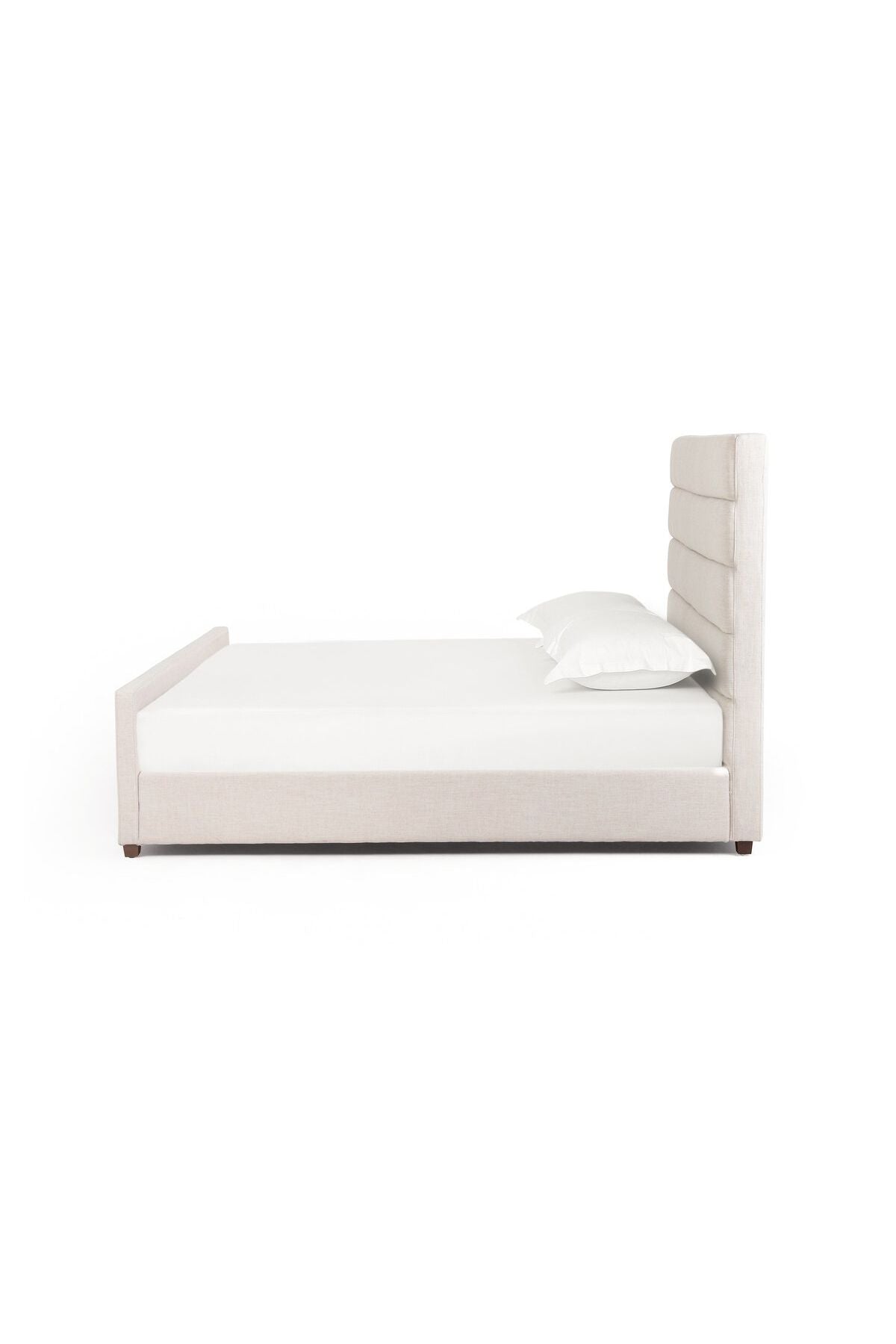 Meet the Daphne Bed. Horizontal channeling lends a linear, textured look to luxurious performance-grade upholstery in a neutral ivory. Velvety, high-style headboard crafts an elegant air. Slats included.