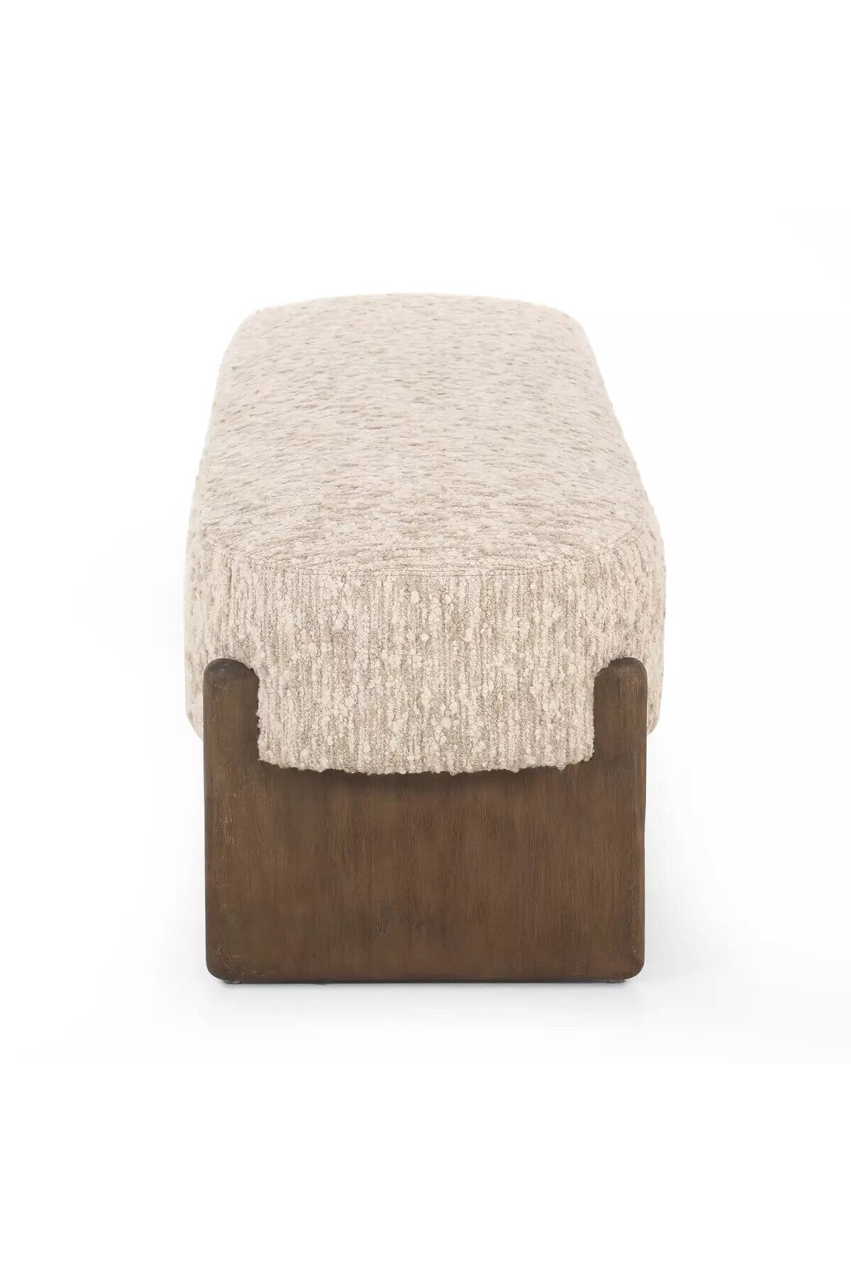 Style the Kirby Accent Bench just about anywhere. A cradle base of wire-brushed parawood supports heavily textured upholstered seating. Style this modern accent bench just about anywhere. A cradle base of wire-brushed parawood supports heavily textured upholstered seating.