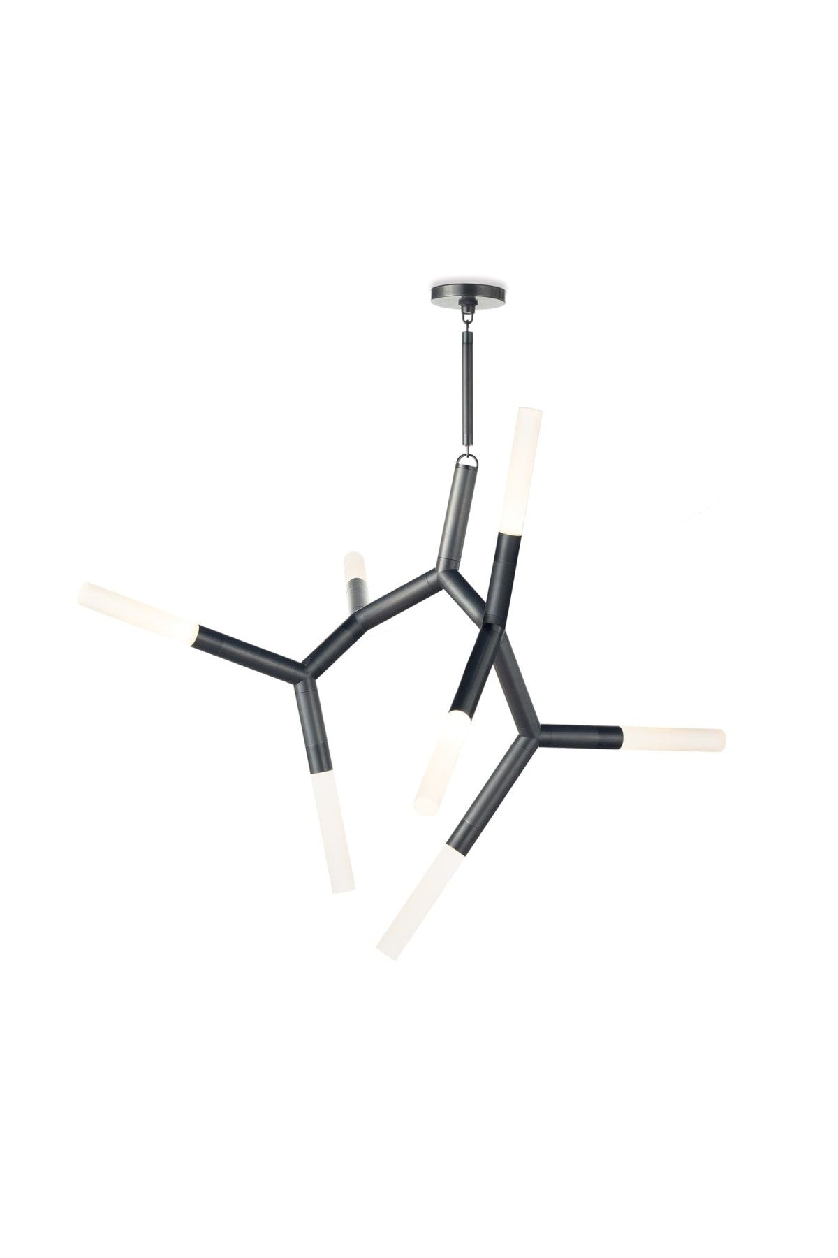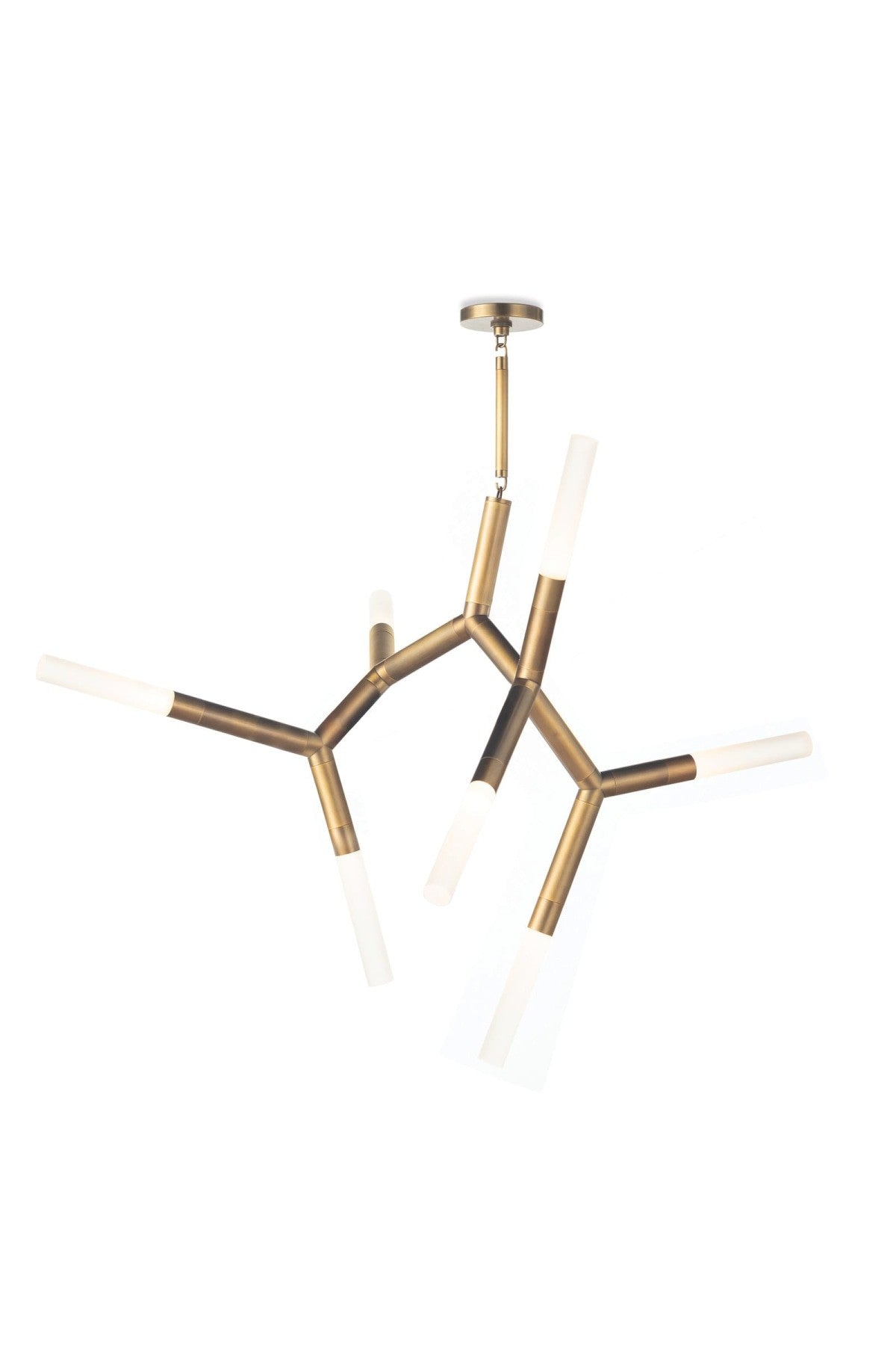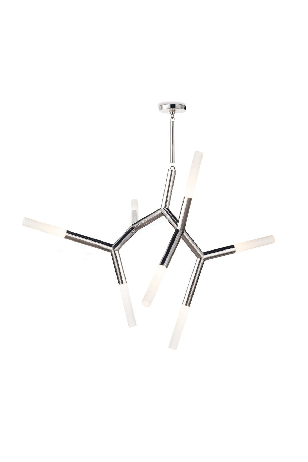 Meet the Regina Andrew Traveler Chandelier. Our Traveler Chandelier is the epitome of modern dynamism with its multiple, branching end points finished in custom frosted acrylic bulb covers. Expertly engineered to hang at a slight angle, place this sculptural wonder over a table, in an office or entryway for a modern lighting statement piece. Bulbs included.