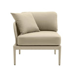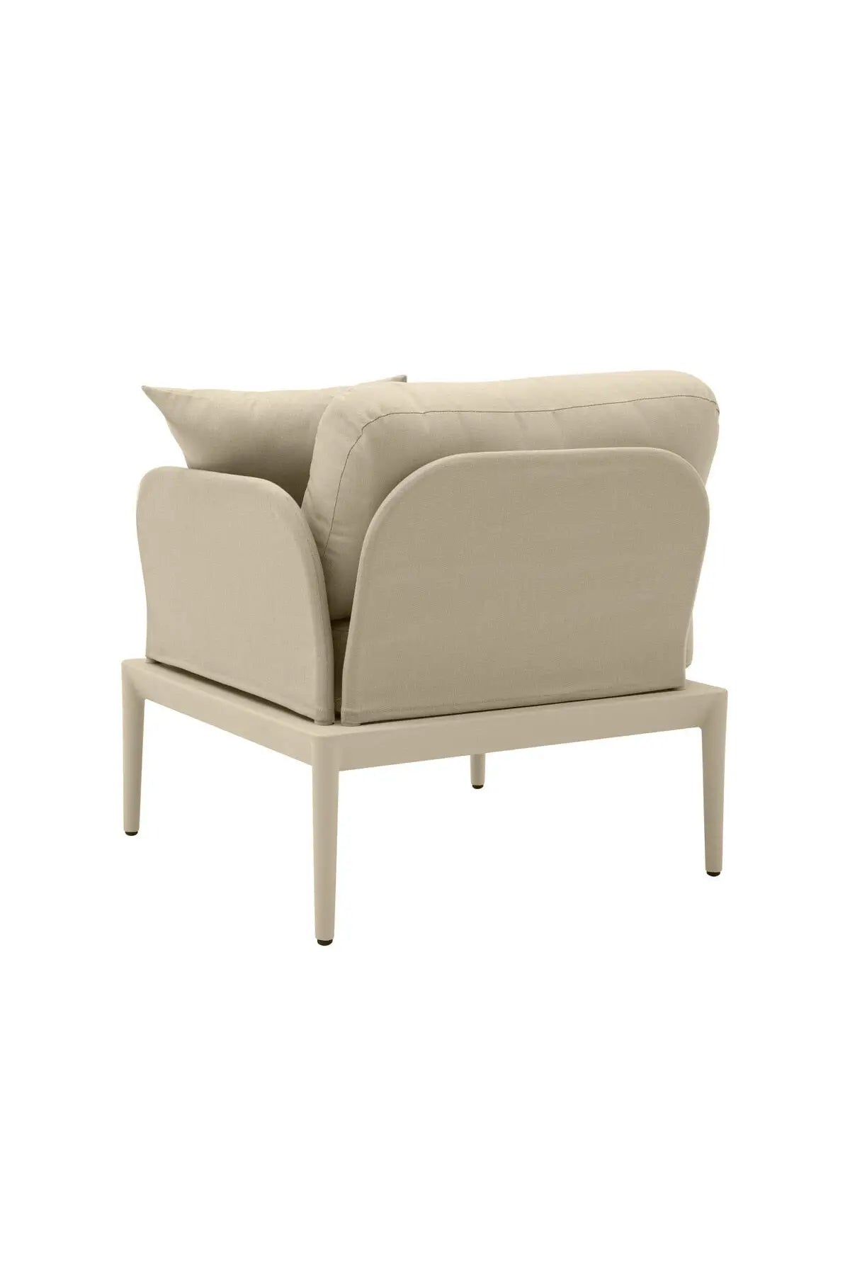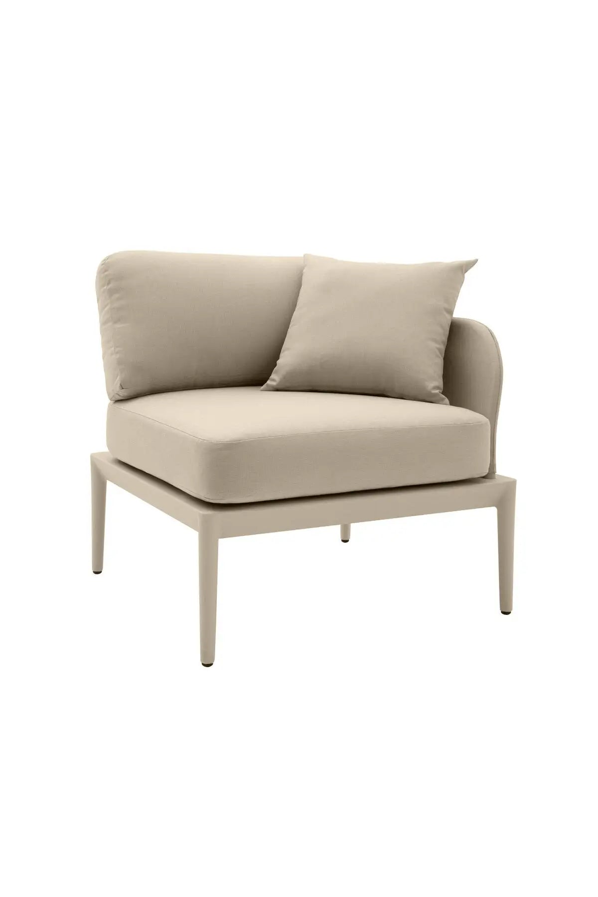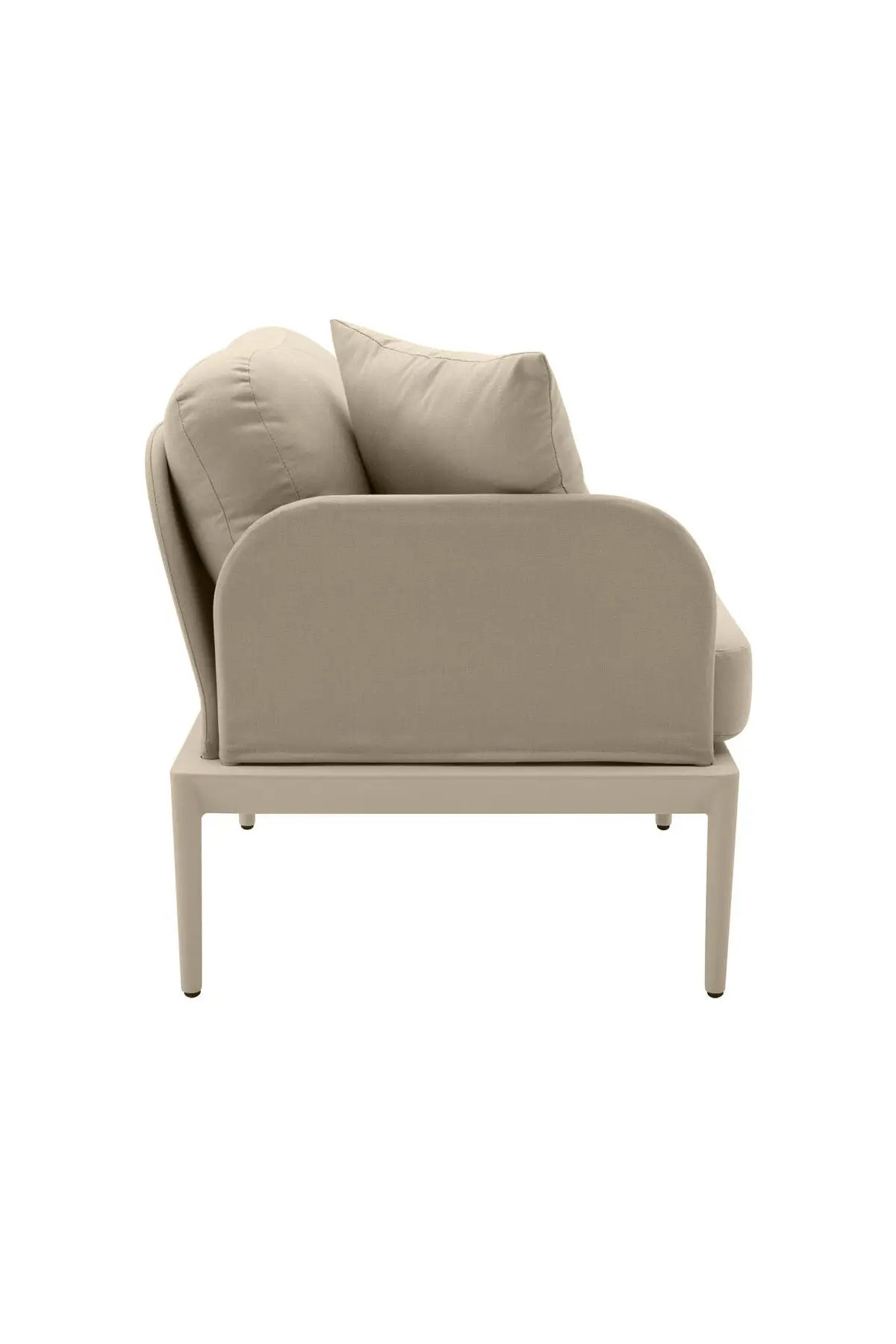 Lounge in luxury with the Kapri Outdoor Modular Sectional. Crafted from rust-resistant aluminum, this collection ensures longevity and durability. With outdoor-grade fabric and metal finishing, and a unique slipcover design for armrests and backrests, Kapri brings both comfort and contemporary style to your outdoor retreat.