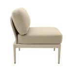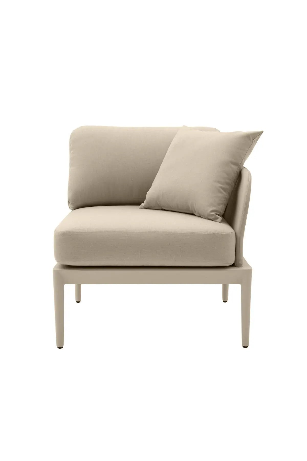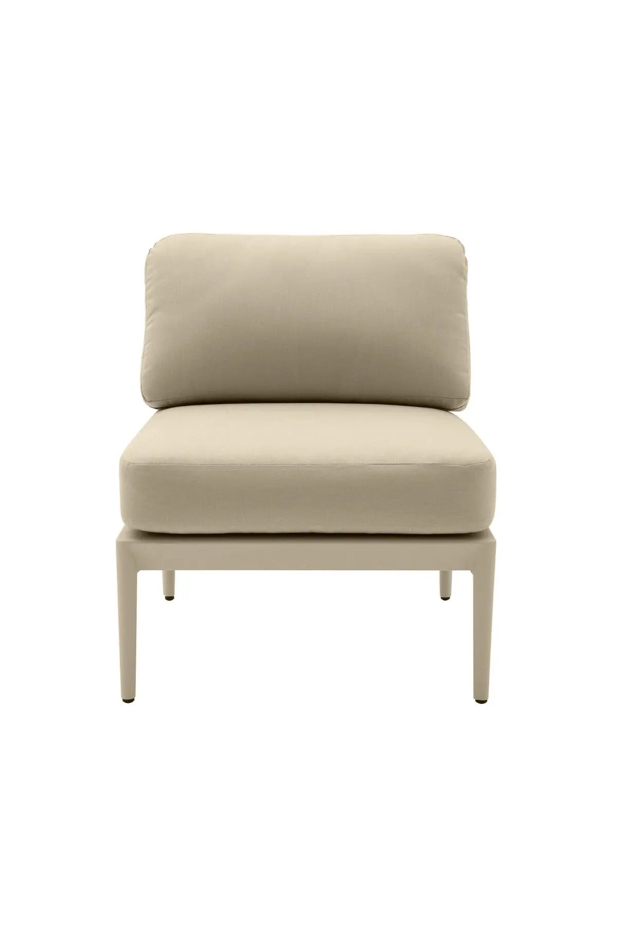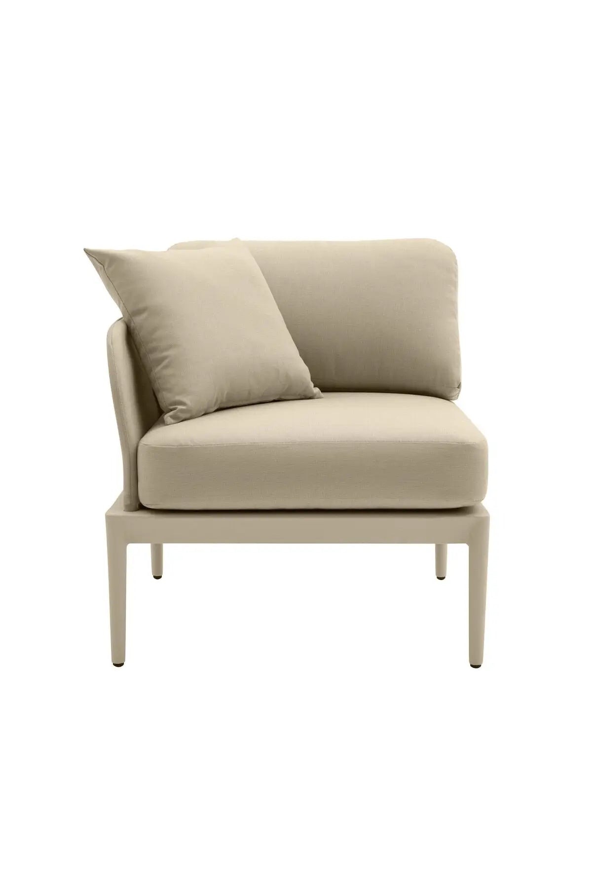 Lounge in luxury with the Kapri Outdoor Modular Sectional. Crafted from rust-resistant aluminum, this collection ensures longevity and durability. With outdoor-grade fabric and metal finishing, and a unique slipcover design for armrests and backrests, Kapri brings both comfort and contemporary style to your outdoor retreat.