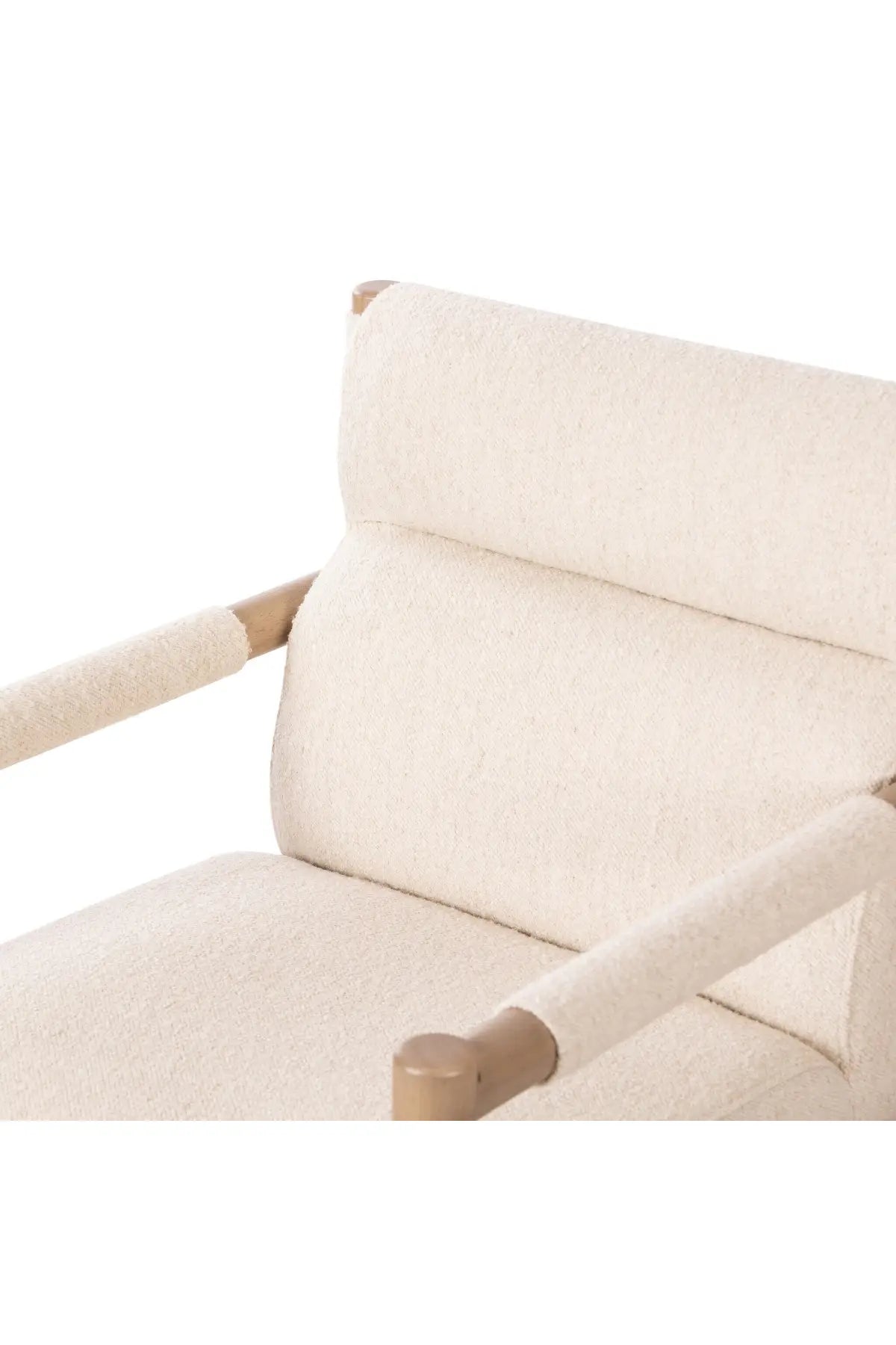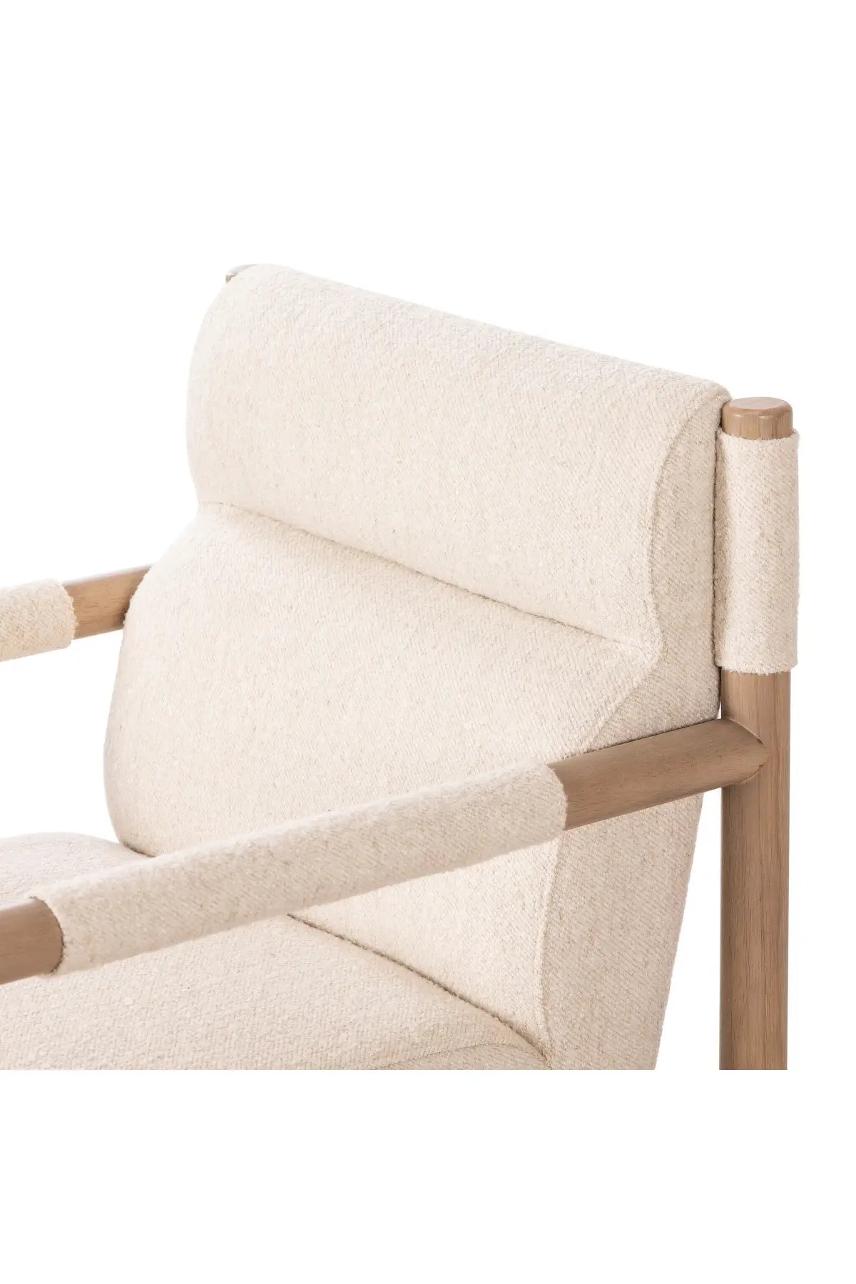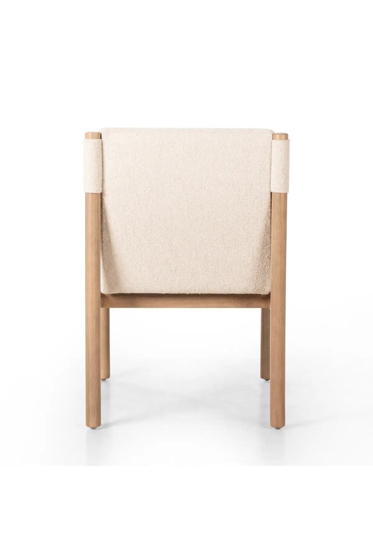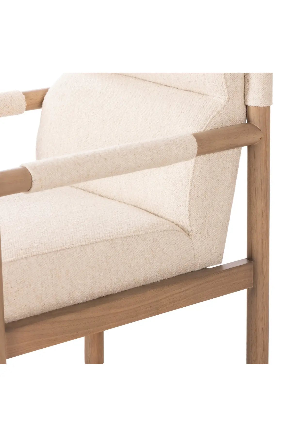 Meet the Kiano Dining Armchair. Oatmeal-colored high-performance fabric features wide channeling for comfort, with natural-finished parawood legs for a clean, monochromatic look.