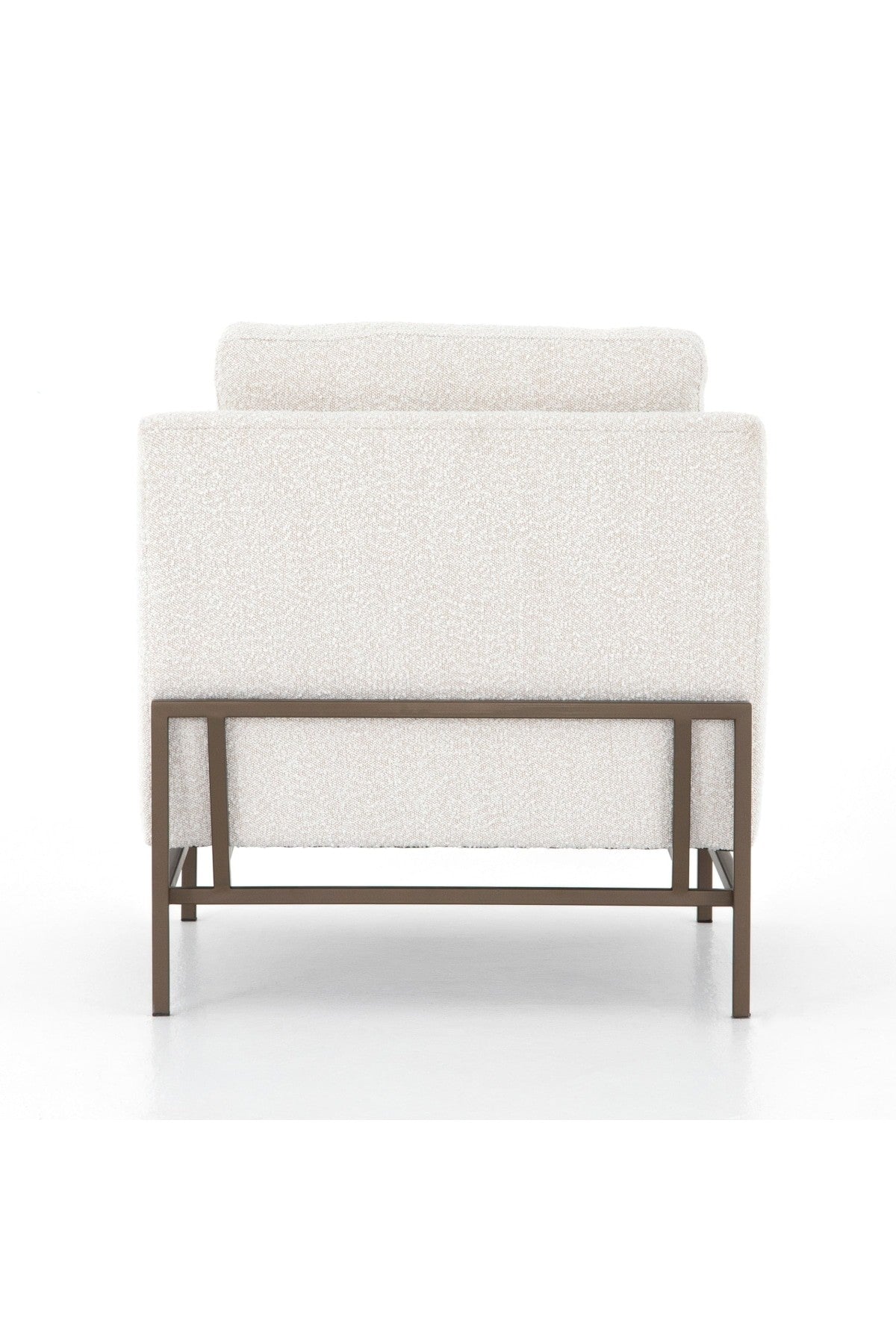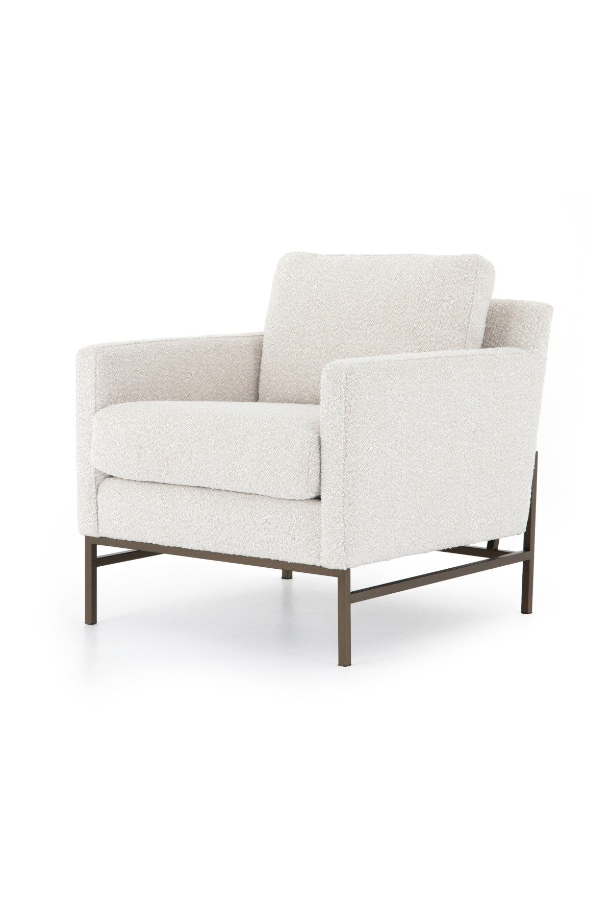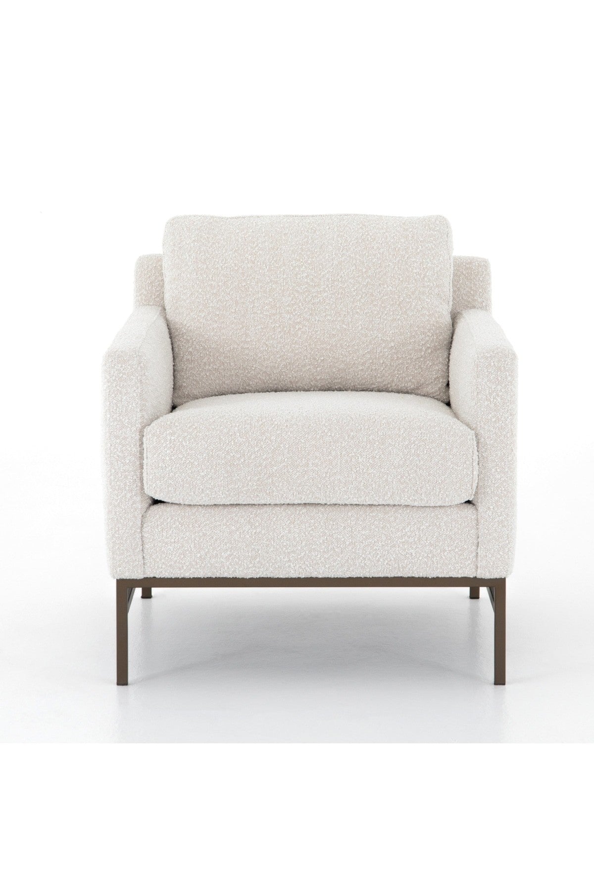 The Vanna Chair is plush and modern-minded. Atop an airy, bronze-finished iron base, thick, boucle-like upholstery features clean, angular track arms and comfy cushioning, for the best of both worlds. Performance fabrics are specially created to withstand spills, stains, high traffic and wear, ensuring long-term comfort and unmatched durability.