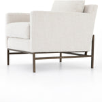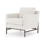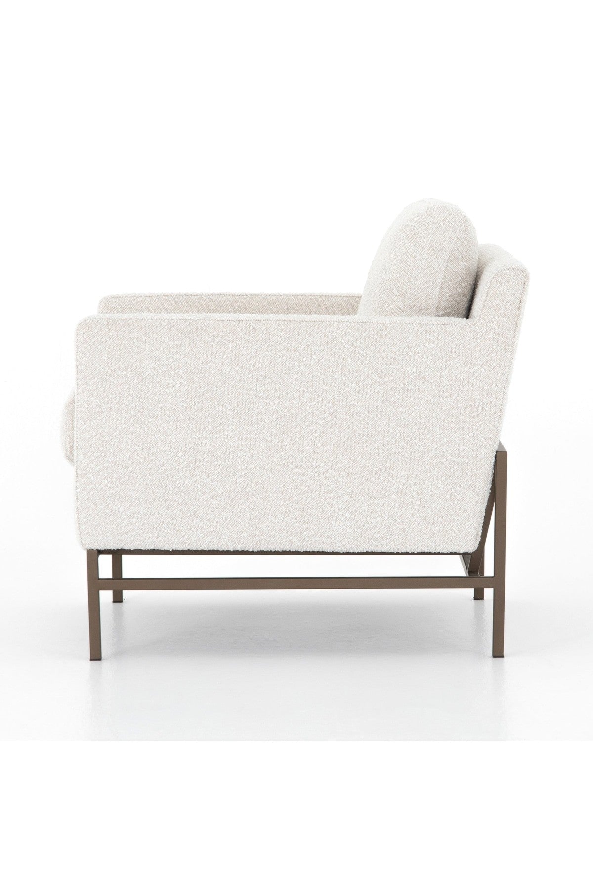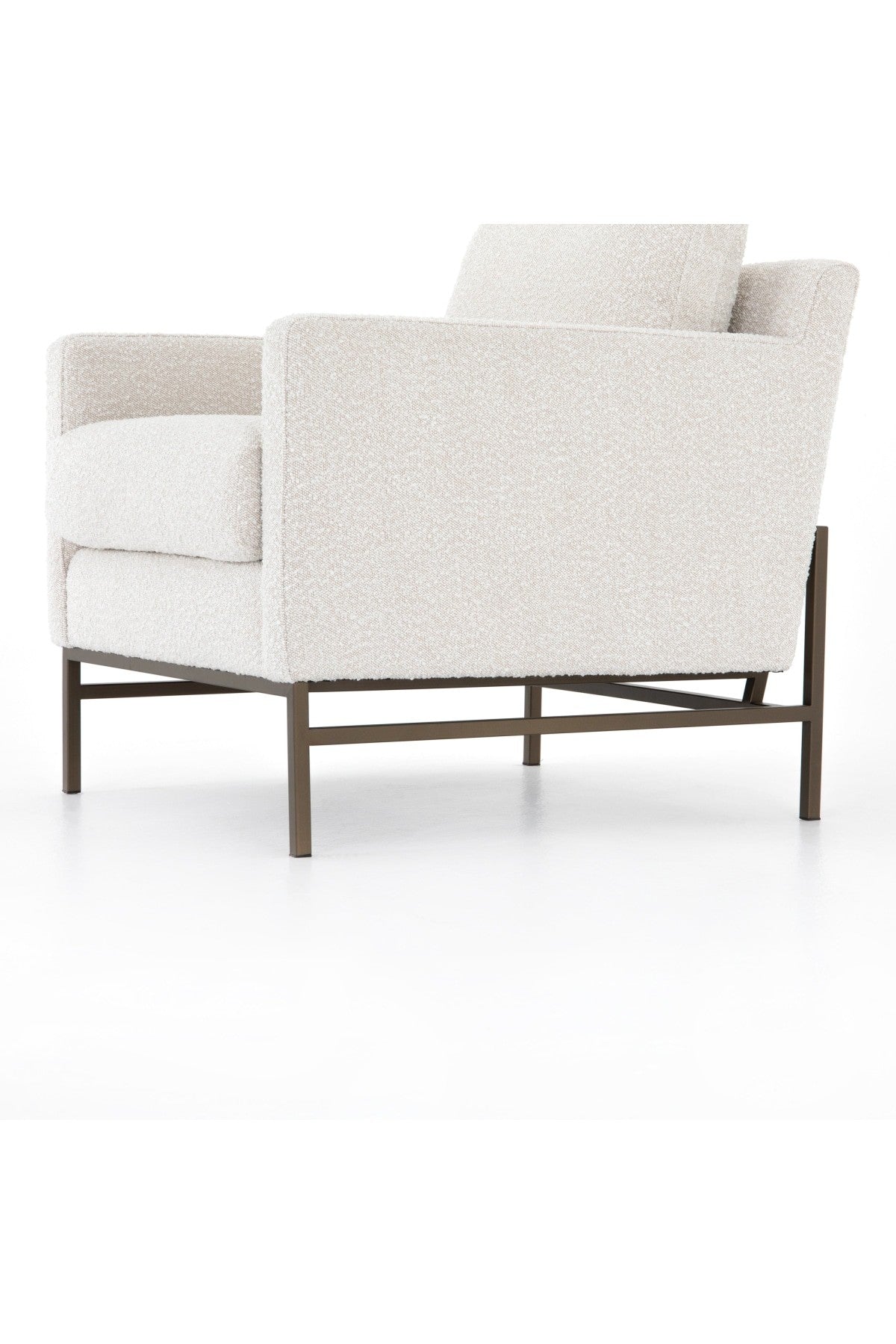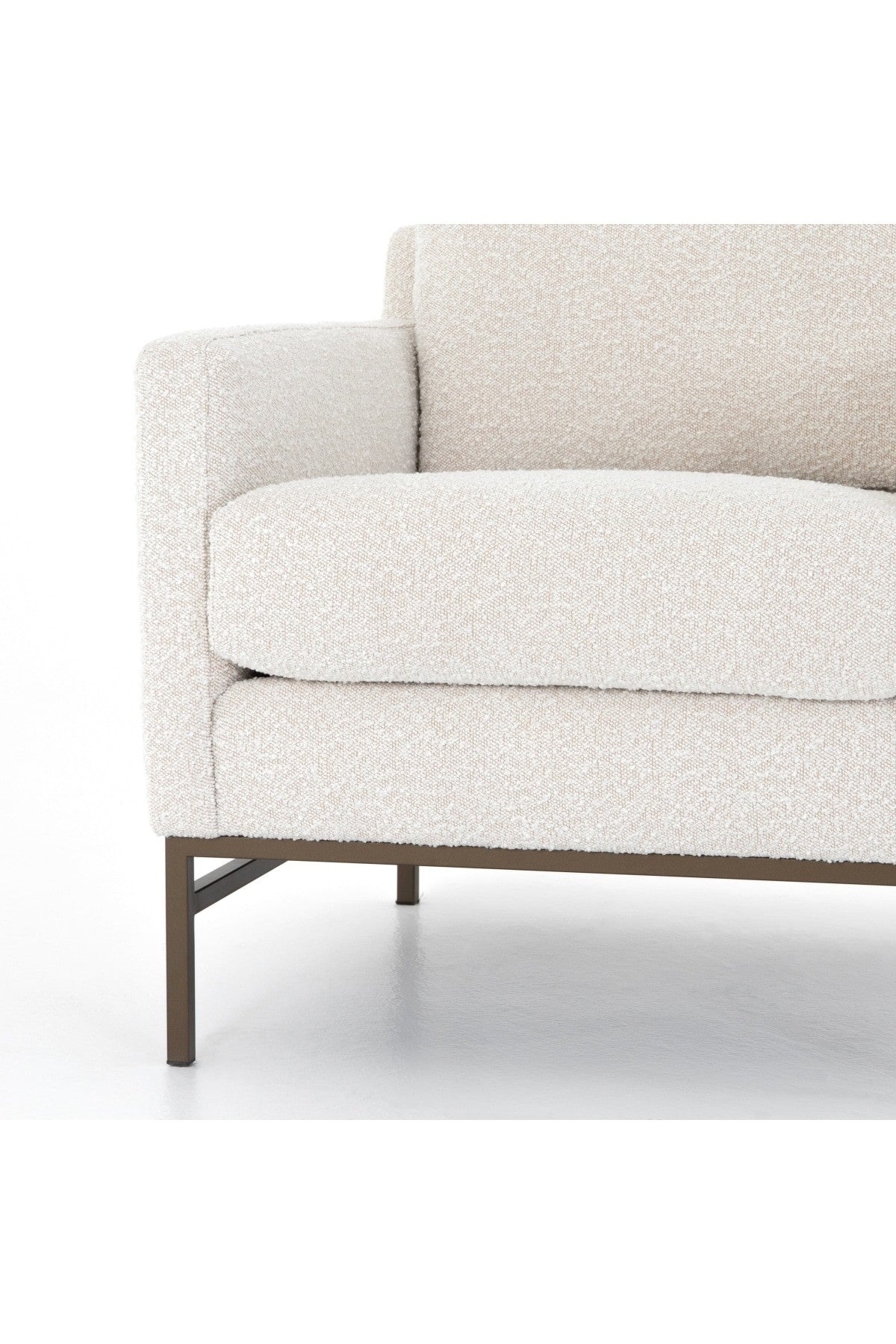The Vanna Chair is plush and modern-minded. Atop an airy, bronze-finished iron base, thick, boucle-like upholstery features clean, angular track arms and comfy cushioning, for the best of both worlds. Performance fabrics are specially created to withstand spills, stains, high traffic and wear, ensuring long-term comfort and unmatched durability.
