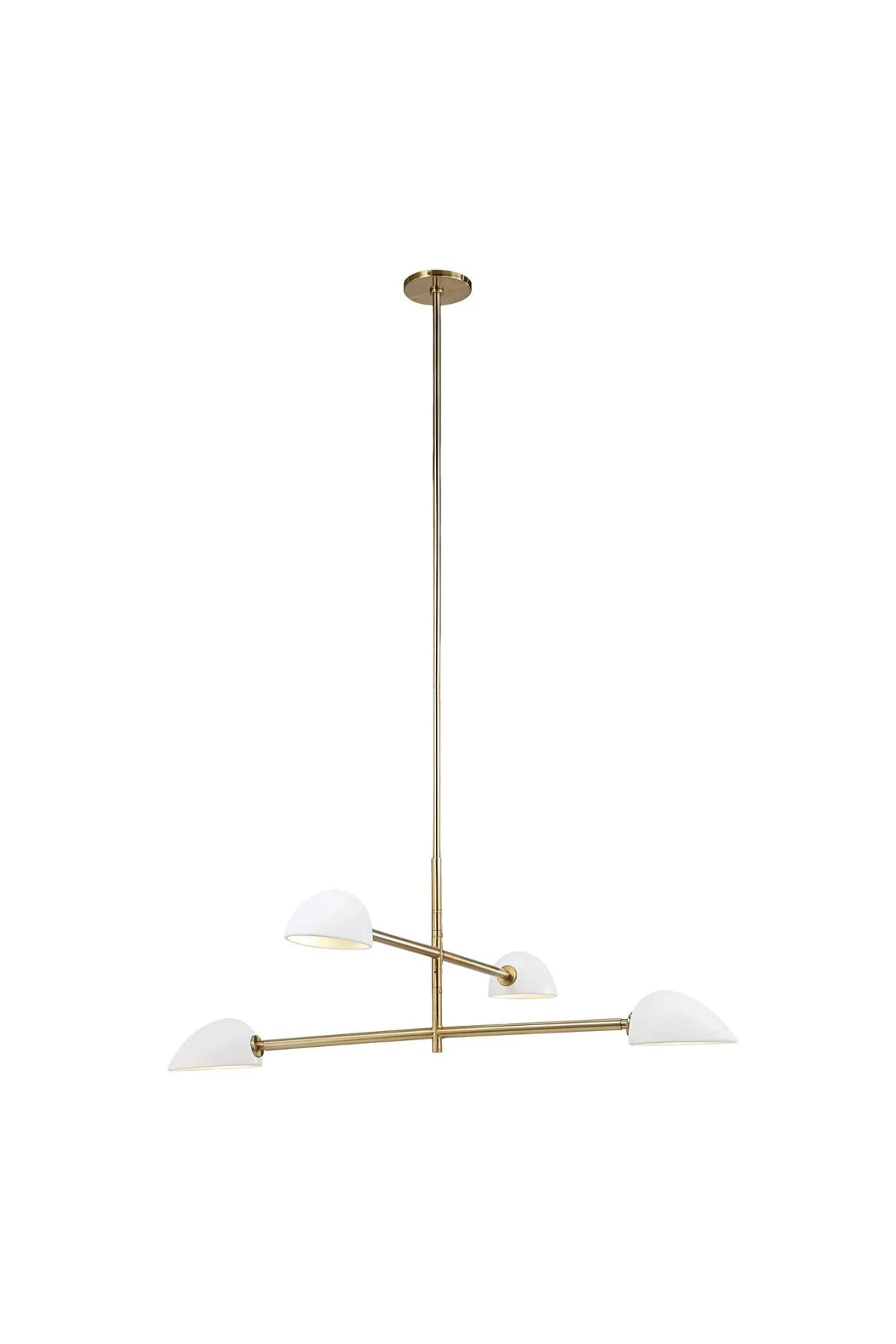 Meet the Tulla Chandelier. Transform your living space with the Tulla 40" Wide 4-Light Chandelier. Expertly crafted from high-quality iron, this chandelier features a sleek glazed matte off- white canopy finish that adds elegance to any room. It's sleek and elegant design is crafted with high-quality materials that exude luxury and sophistication. The chandelier boasts four lights that illuminate any space evenly, creating a warm and inviting atmosphere. The hardwired installation ensures reliable, integrated performance, and it connects seamlessly with standard G9 sockets. With a 35W capacity, this chandelier offers optimal performance while staying within power limits.