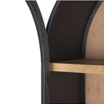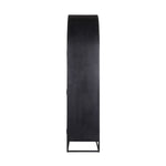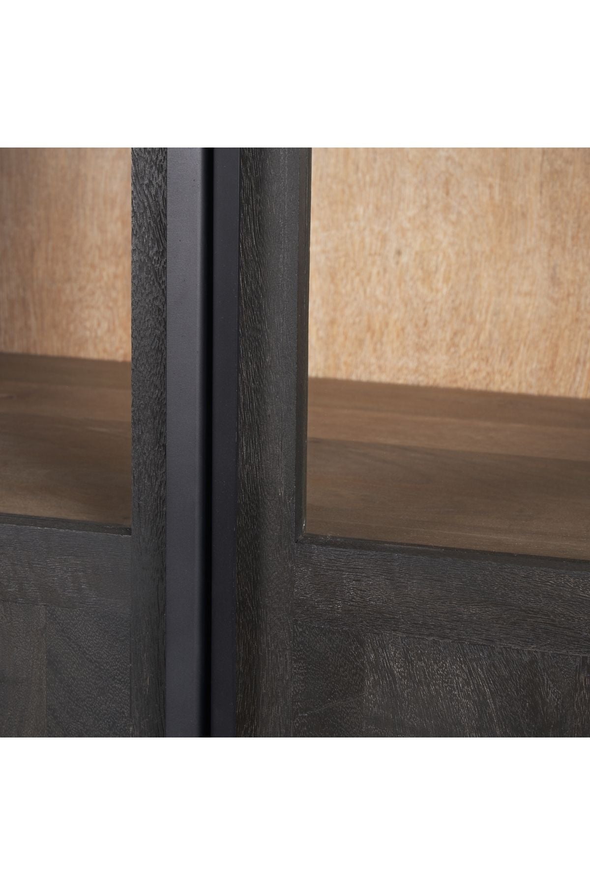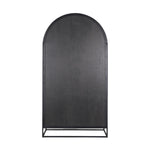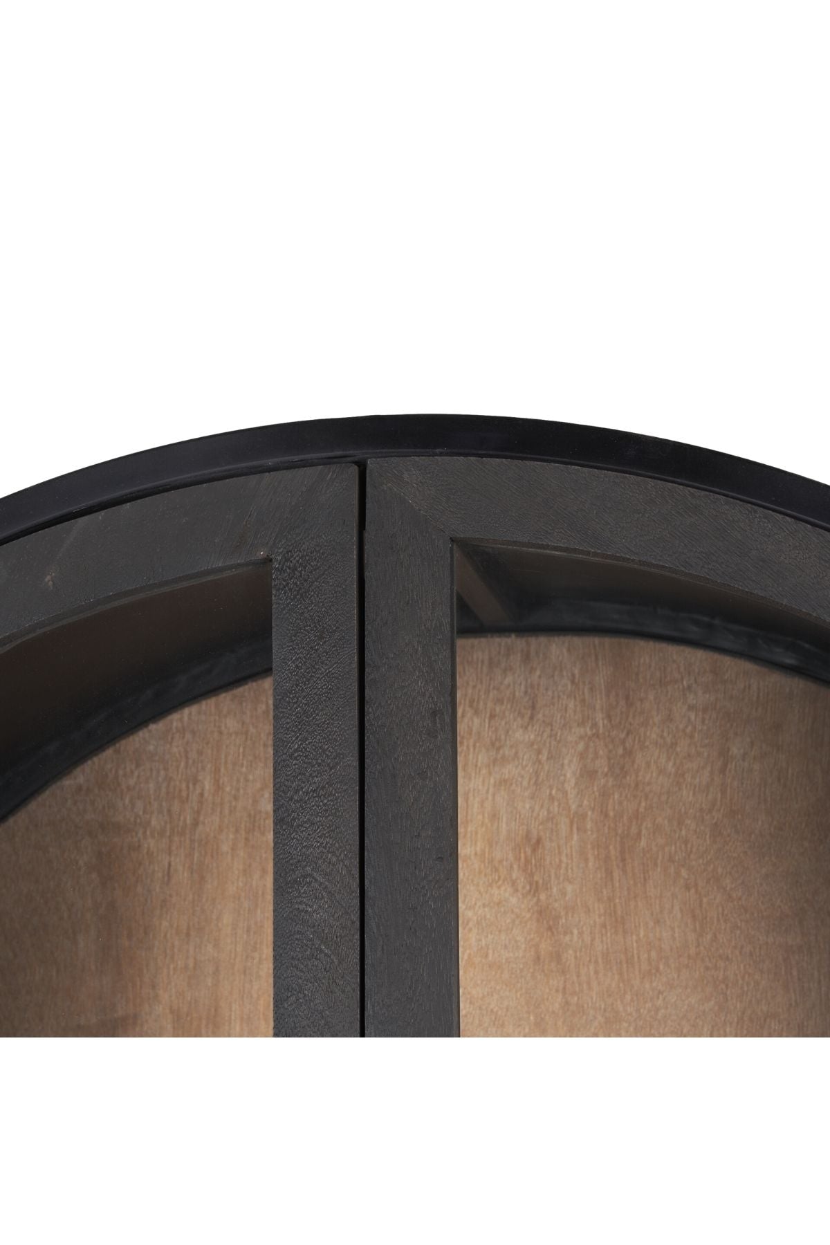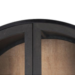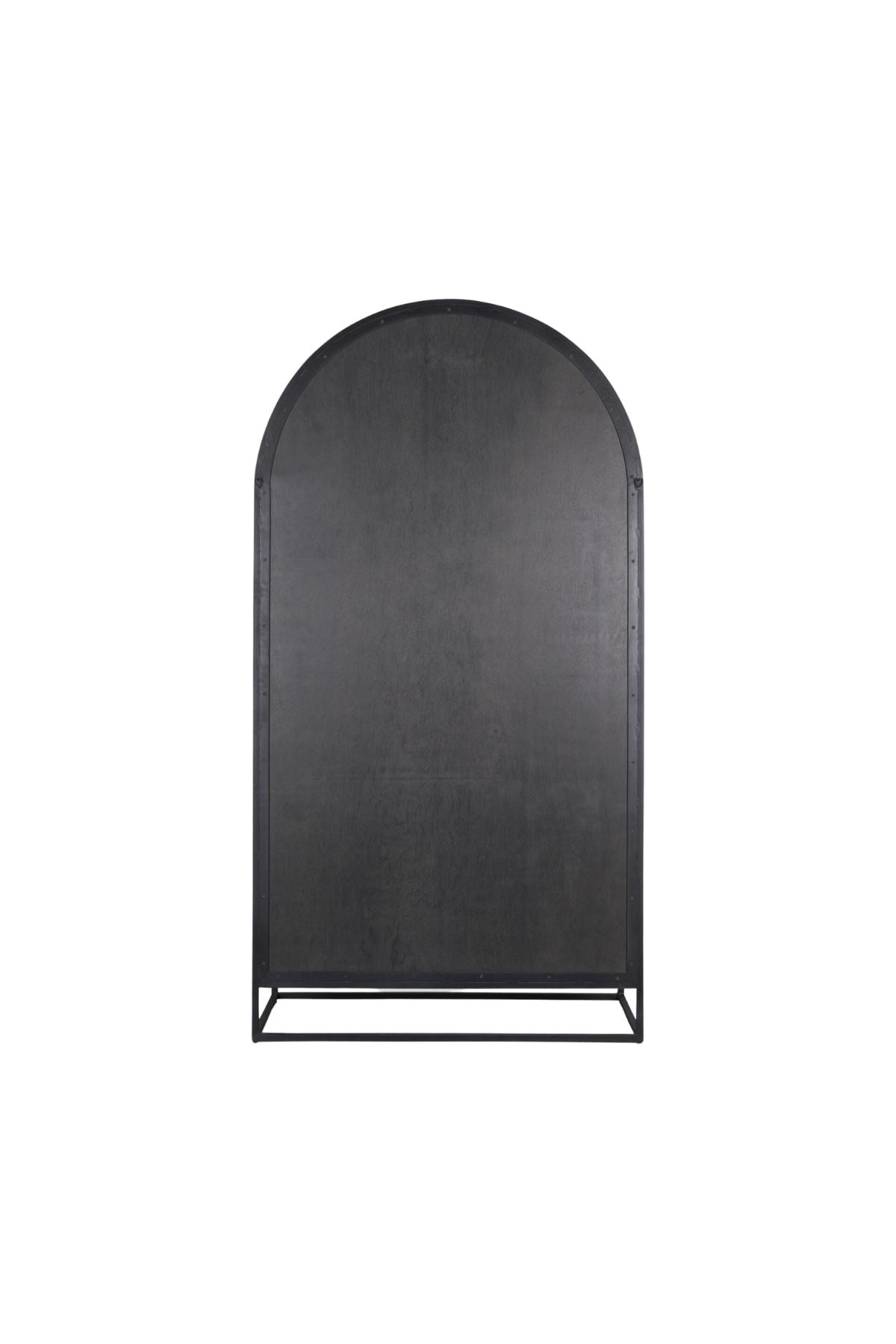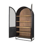 Meet the Sloan Curio Cabinet. This cabinet features a two-toned stunning arched silhouette that is constructed from sturdy black iron, and is fronted by dark, solid mango wood and glass doors.