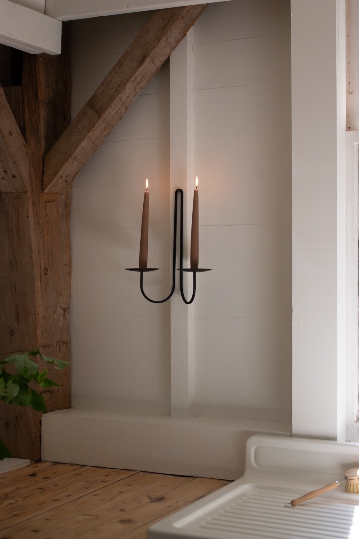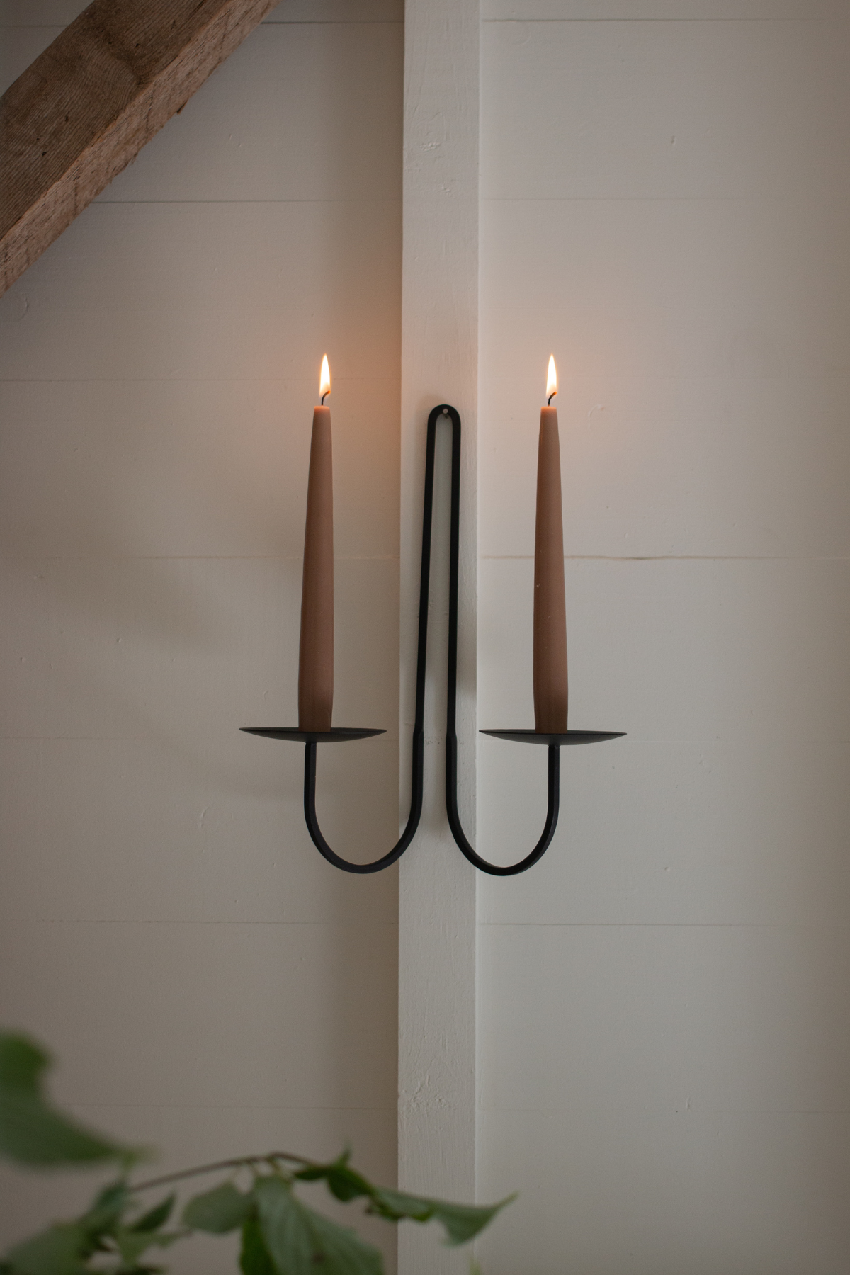 Beautiful is an understatement with our Elm Double Sconce! A minimal addition you'll want to add to your home this season! Black iron adds an instant timeless feel. Pair with your favorite tapers for a more moody vibe. Each sconce is handmade, so no two are exactly the same!