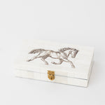 We are loving the Roam Horse Box! Etched horse detail paired with bone material, this will add texture + a unique element to your space. We recommend styling this atop a bookshelf or entry table, but you can't go wrong wherever you choose to place. No two pieces are the same + will vary in size, shape + color.