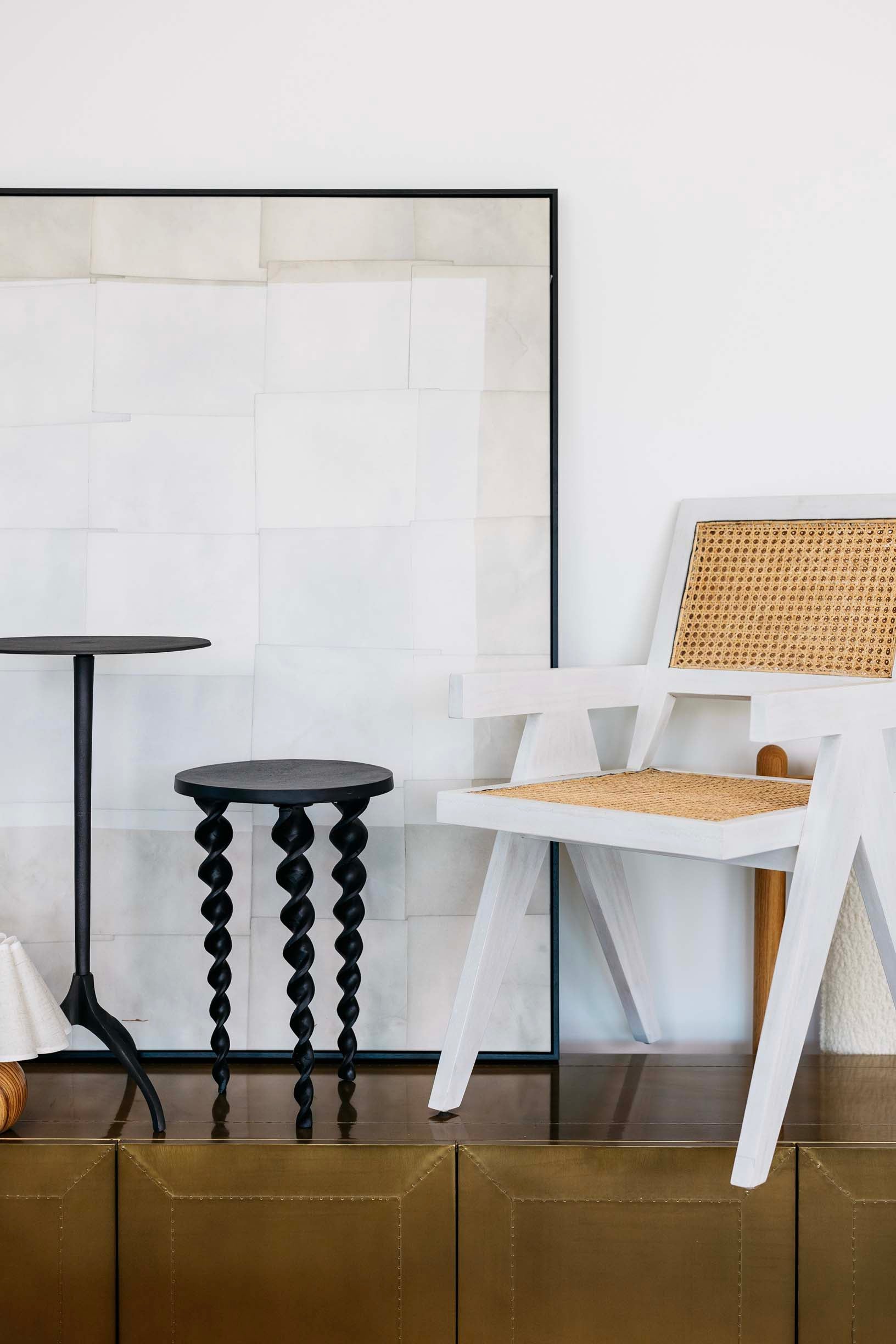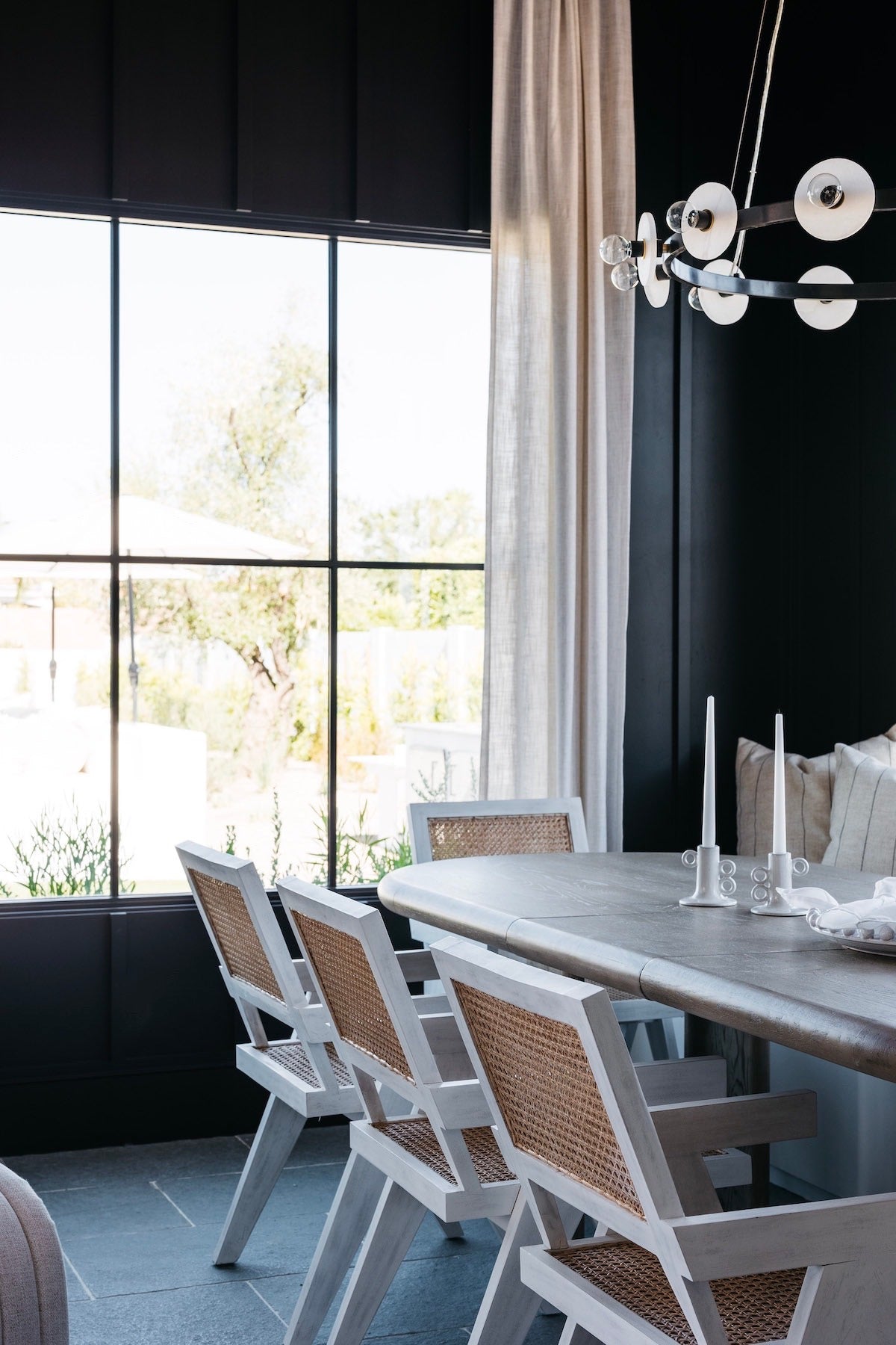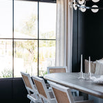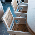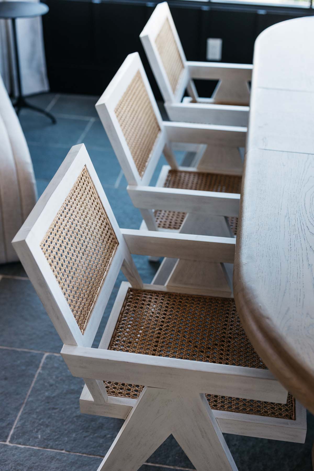 Meet the Jude Chair. This blocky, modern design washed in a white finish shows a subtle reveal of the wood beneath, with natural caning seat and back inserts. A refreshing addition to traditional and coastal themes.