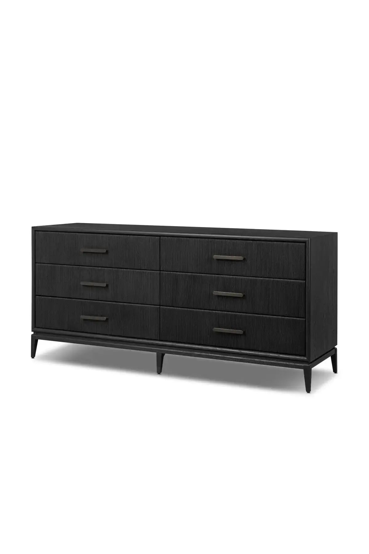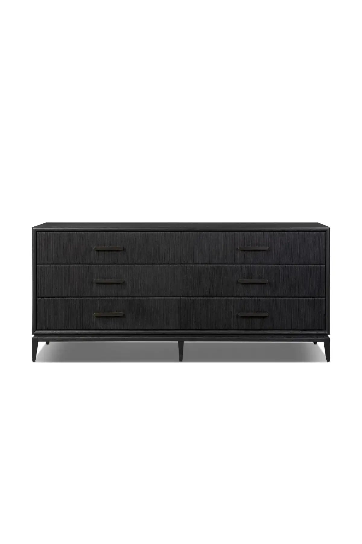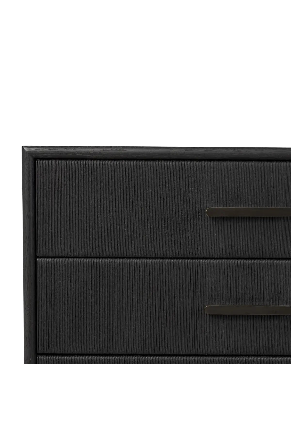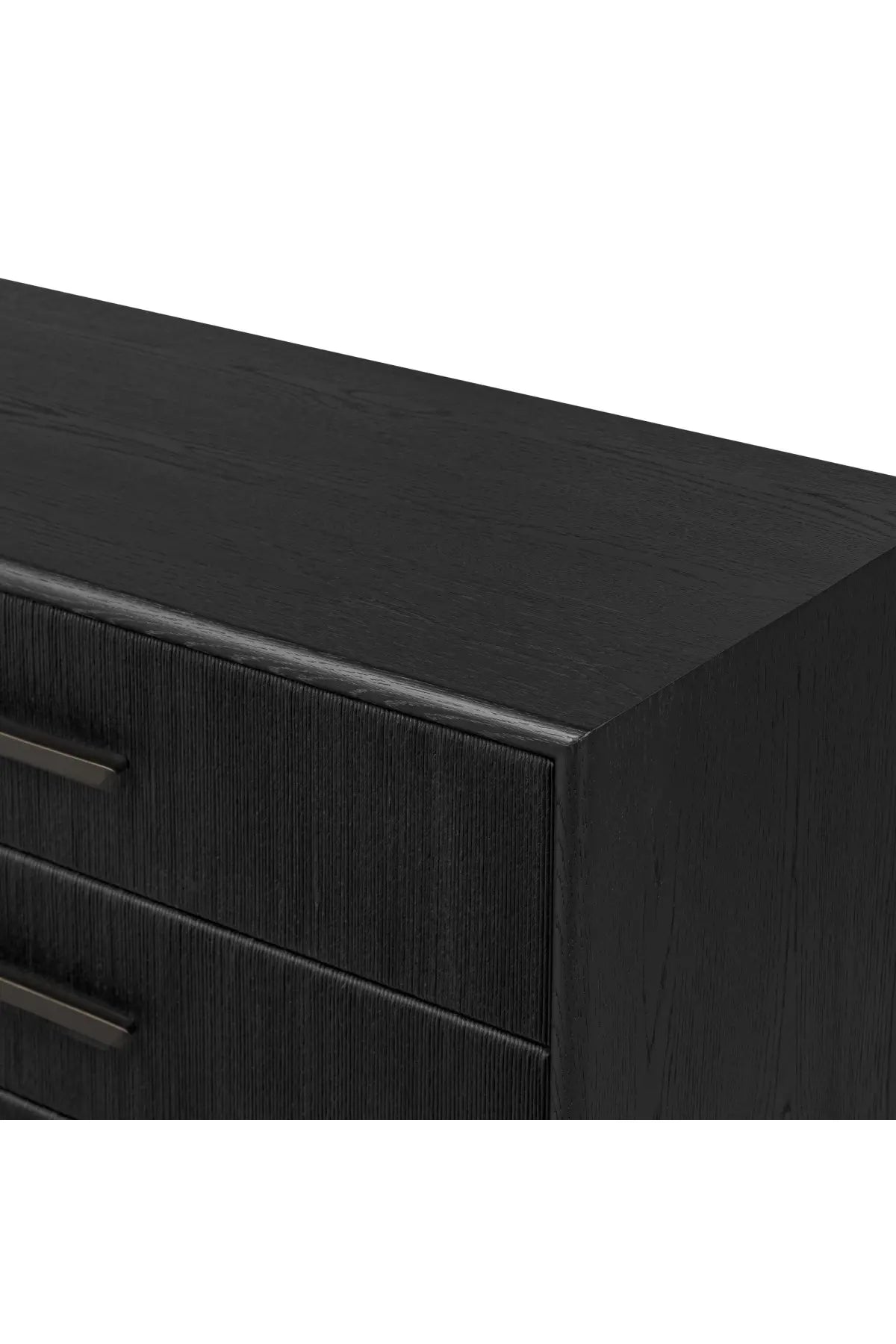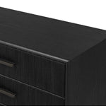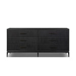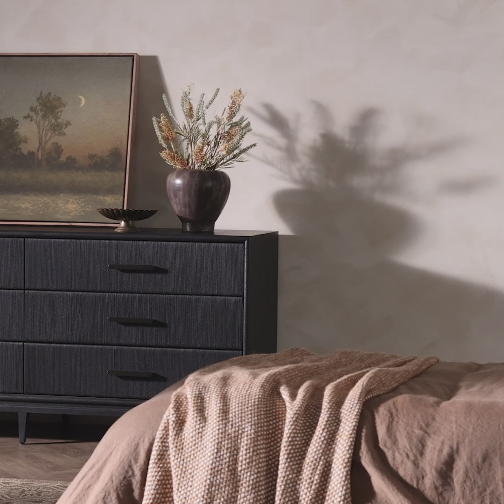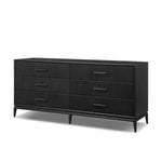 Meet the Rosenell 6 Drawer Dresser. Elevate your bedroom styling with a storage-driven dresser of black-finished oak. A smooth top pairs with six spacious drawers covered with woven paper cord. The result: a dark, Scandinavian-inspired look that will work into your collection beautifully.