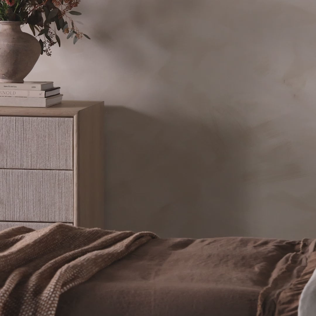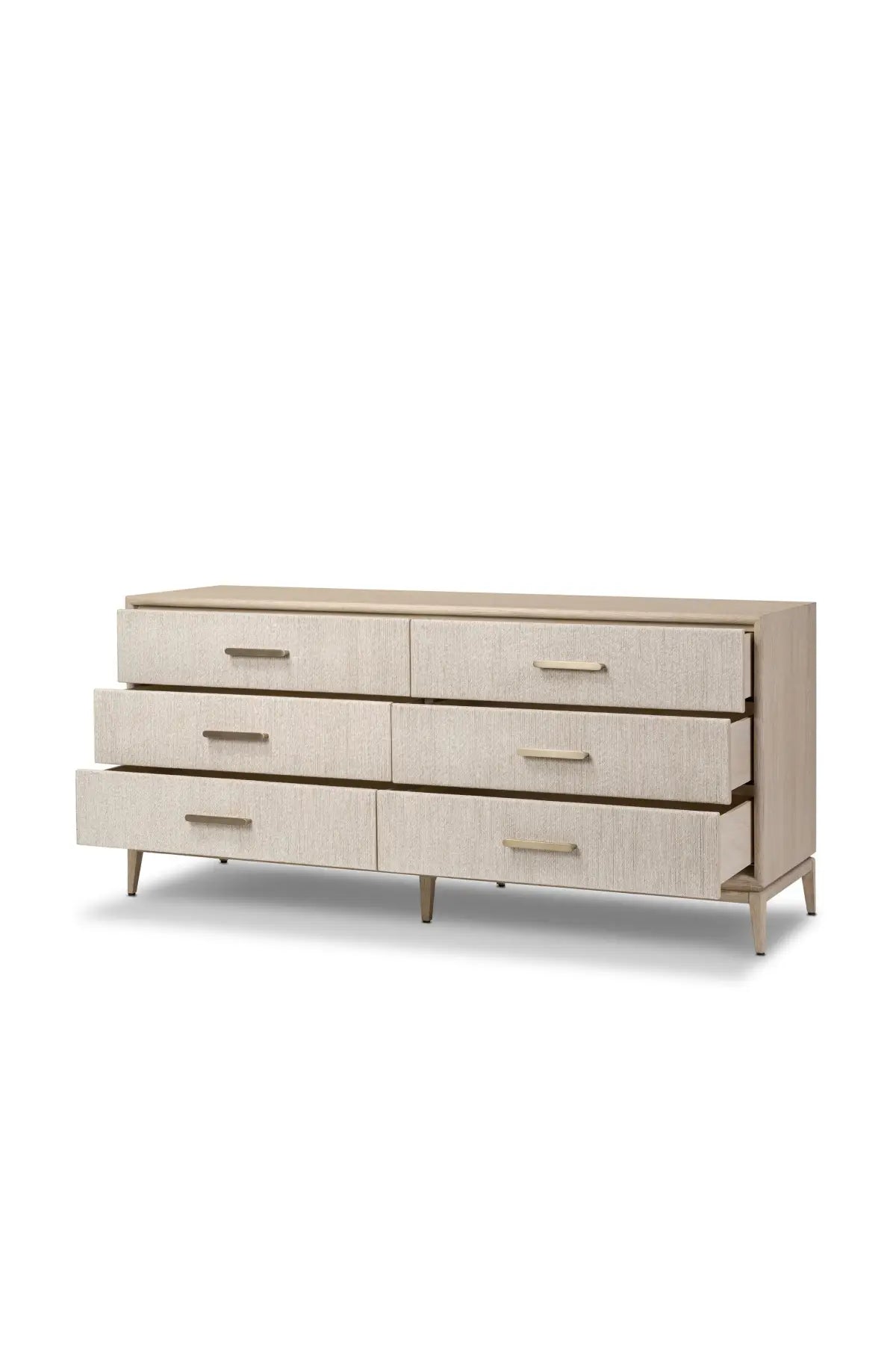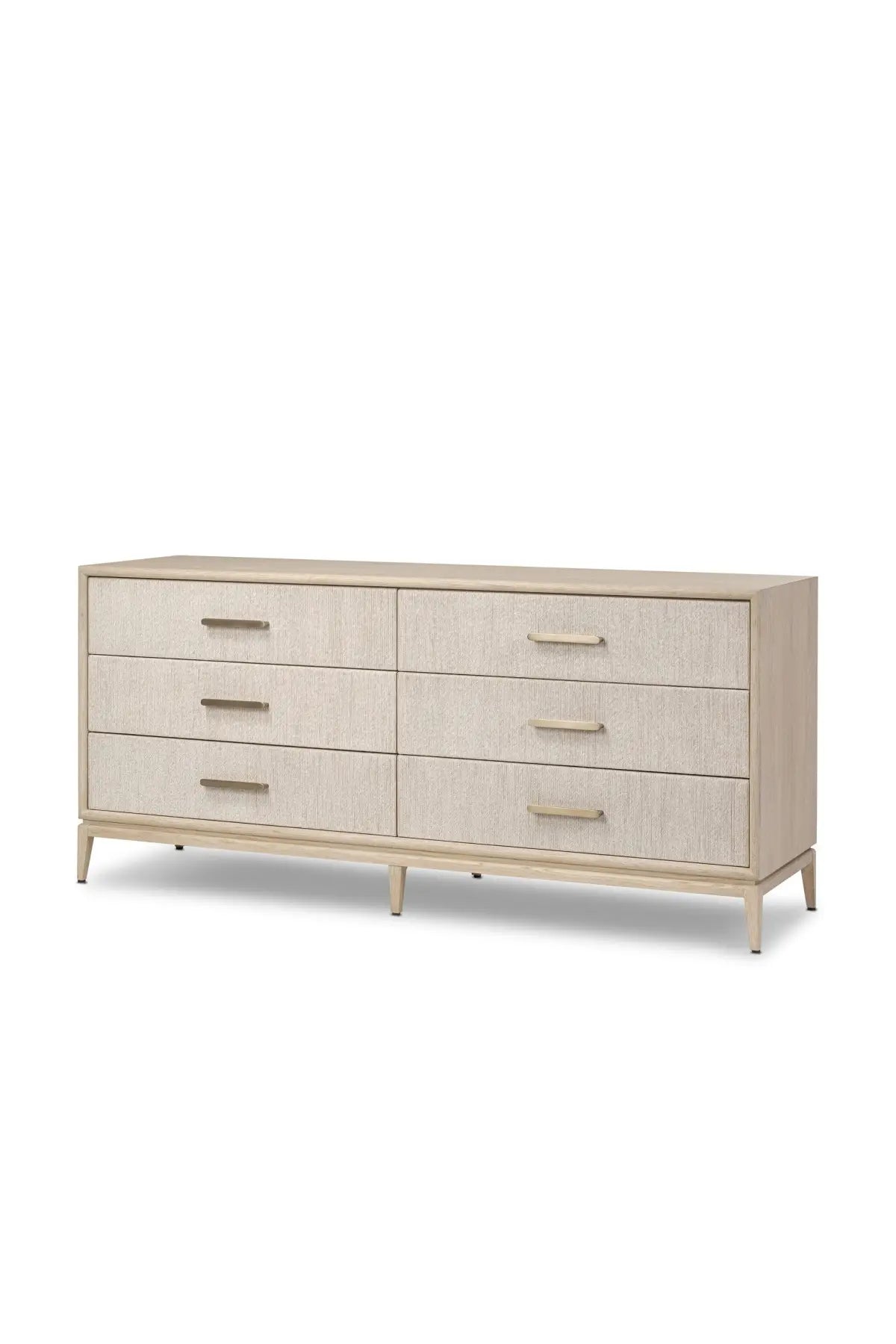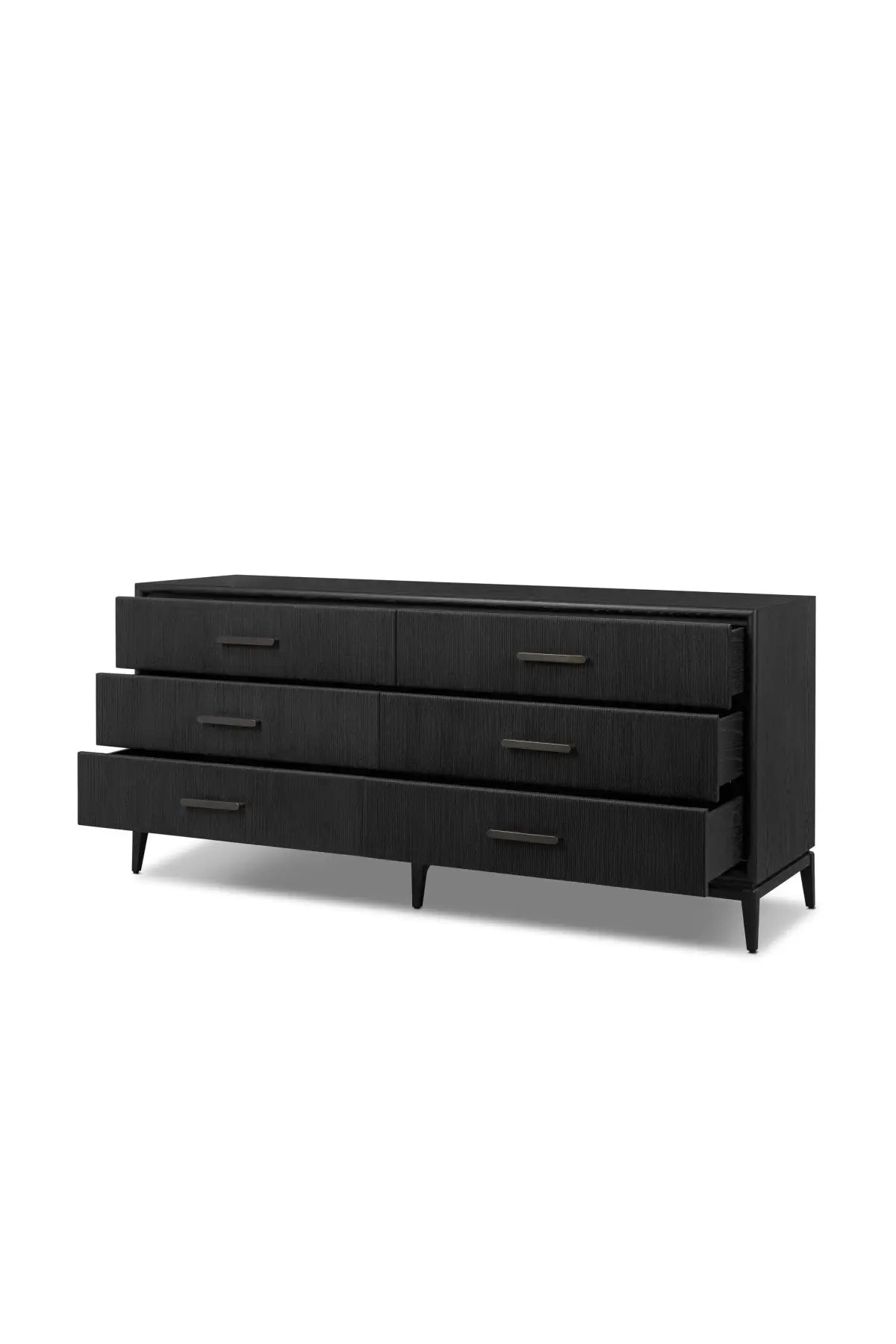 Meet the Rosenell 6 Drawer Dresser. Elevate your bedroom styling with a storage-driven dresser of black-finished oak. A smooth top pairs with six spacious drawers covered with woven paper cord. The result: a dark, Scandinavian-inspired look that will work into your collection beautifully.