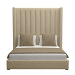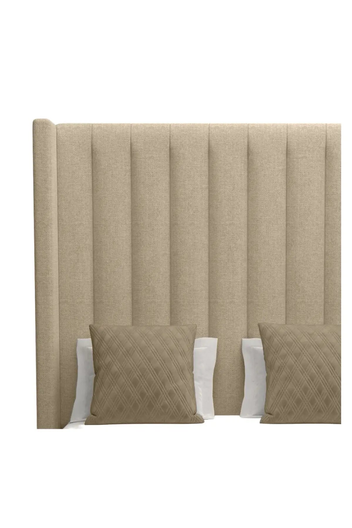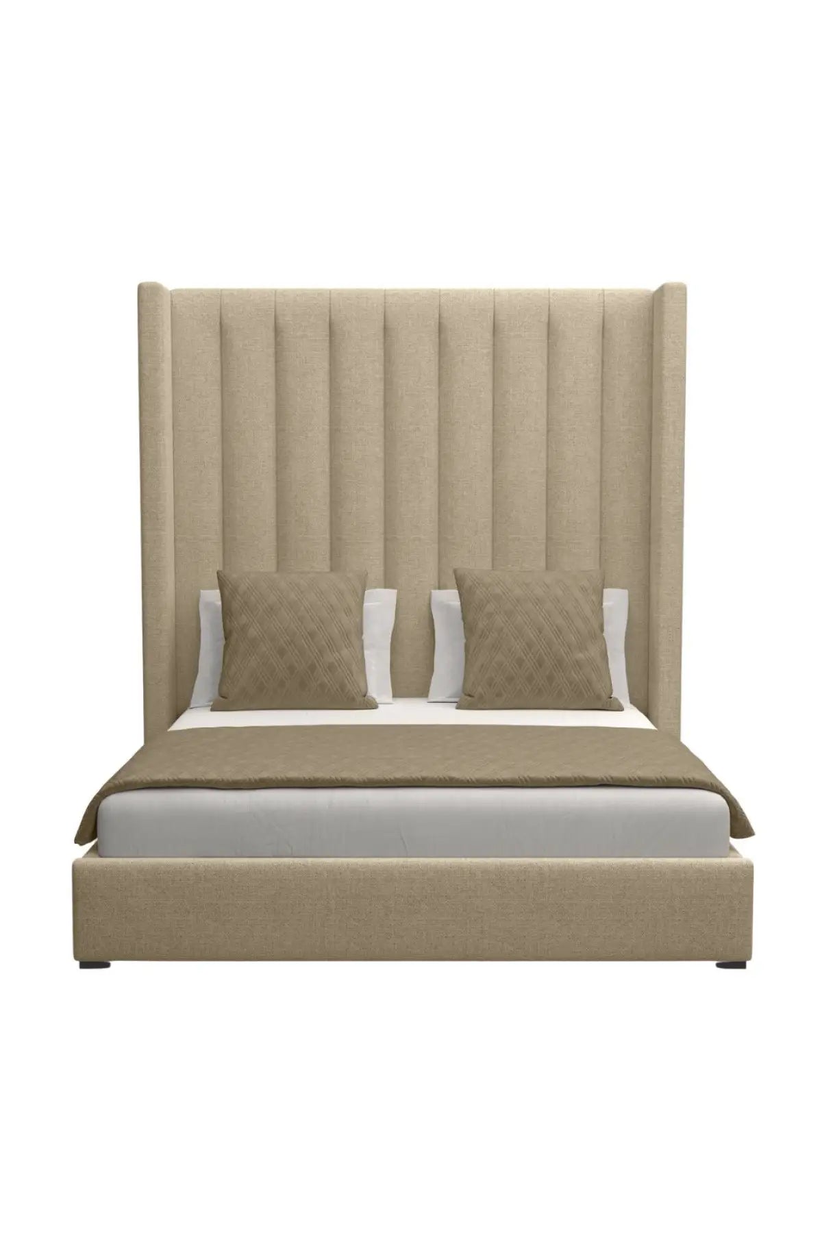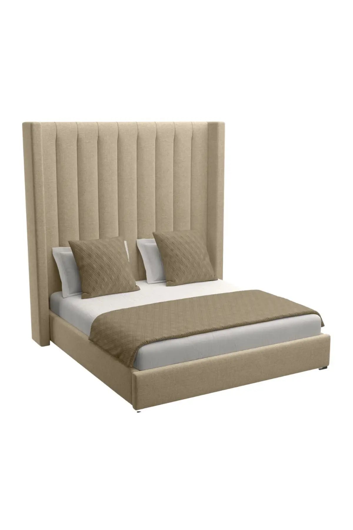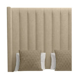 Meet the Aylet 87" Vertical Channel Shelter Bed - Performance Flax. Transform your bedroom with this bed, featuring a solid wood frame and soft fabric upholstery. The warm flax color exudes natural elegance, adding a touch of serene sophistication to your space. Designed for lasting comfort and durability, this bed blends timeless charm with modern functionality. Box spring required.