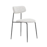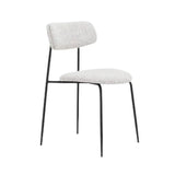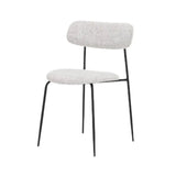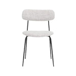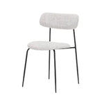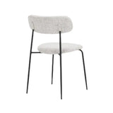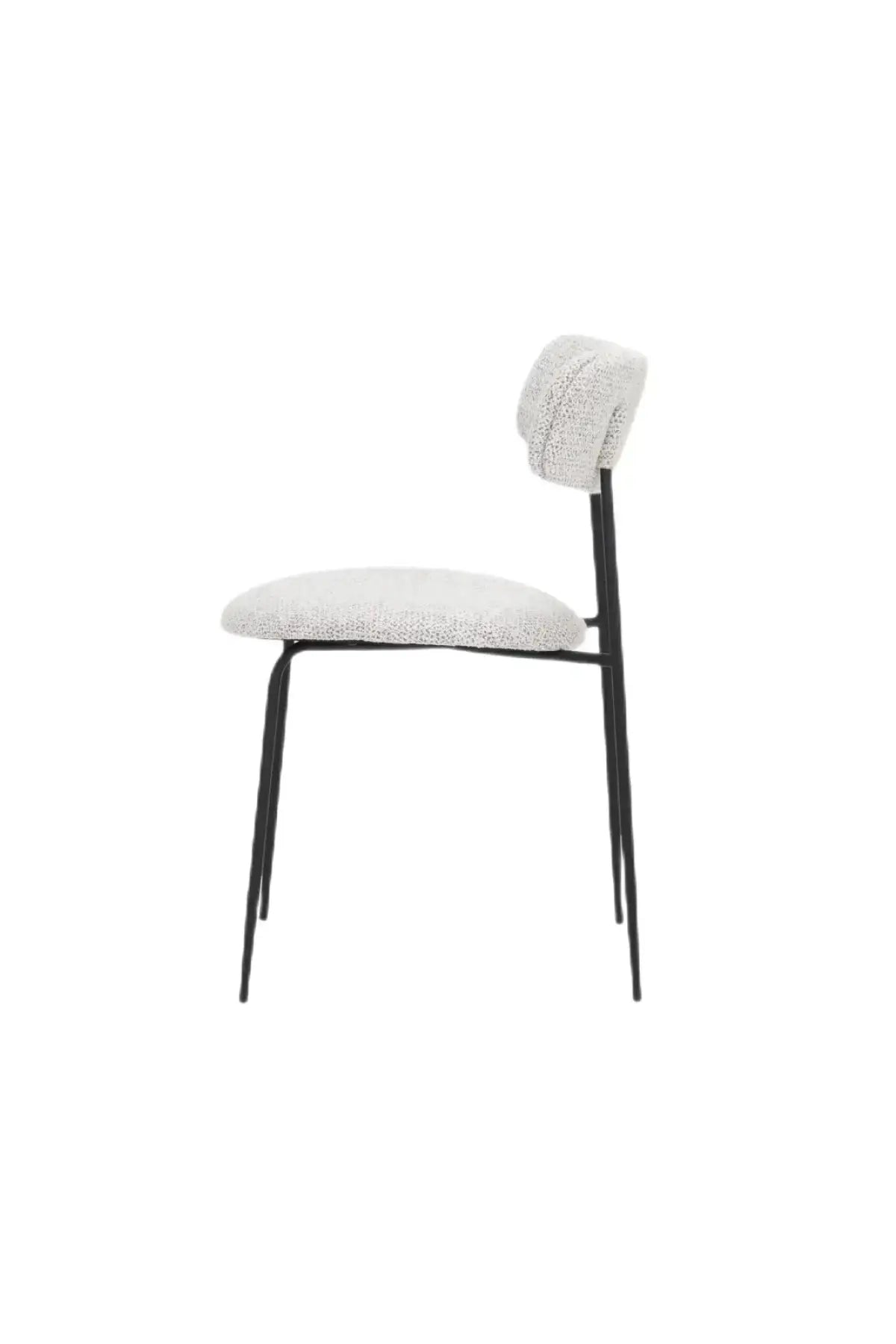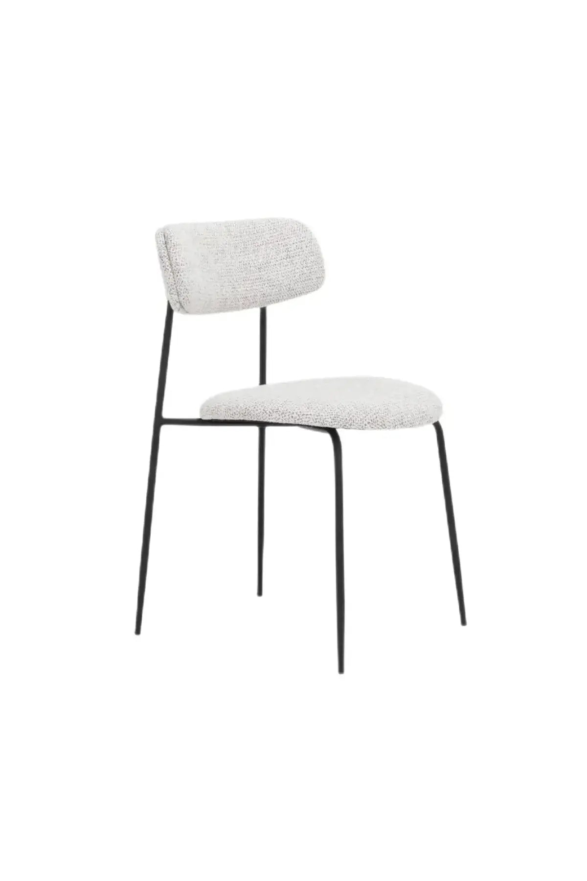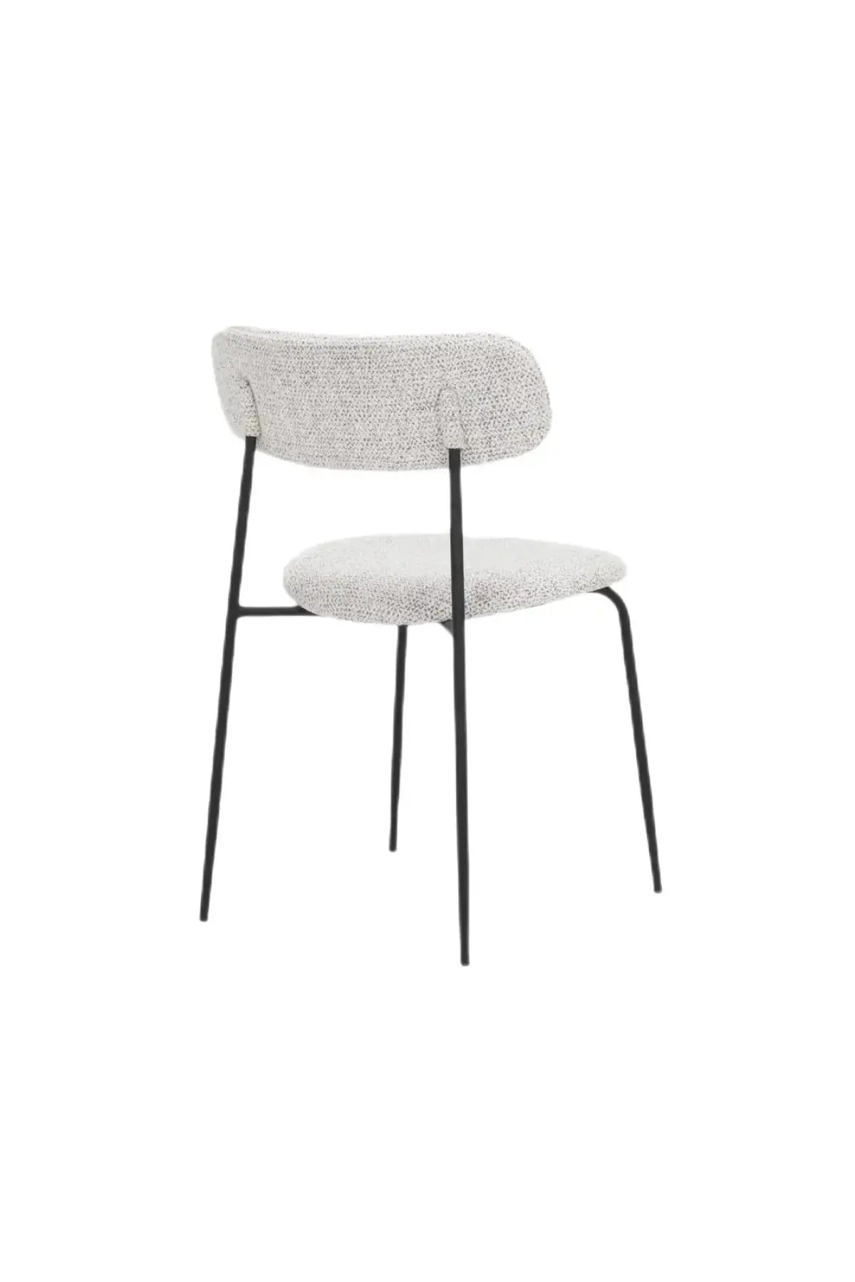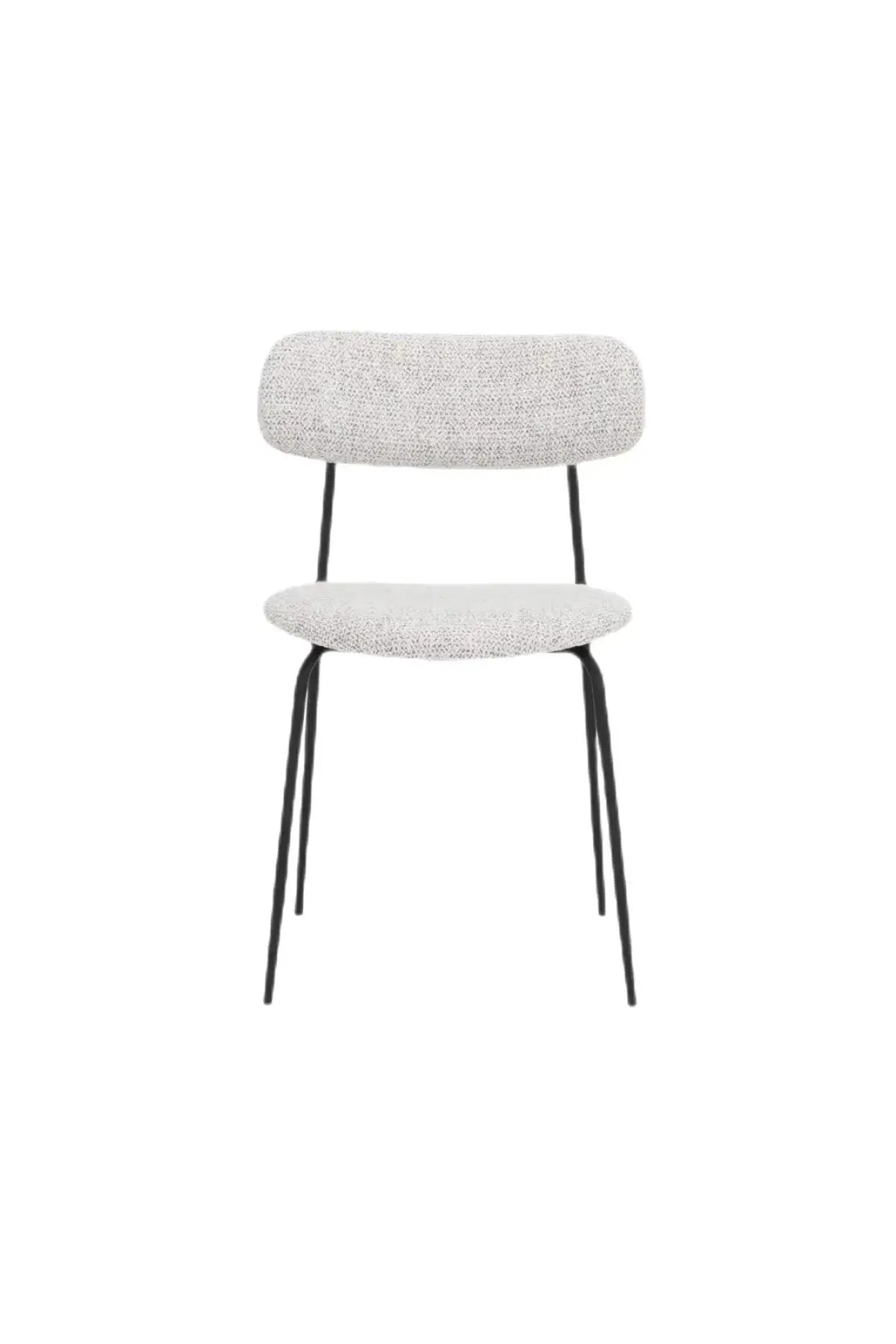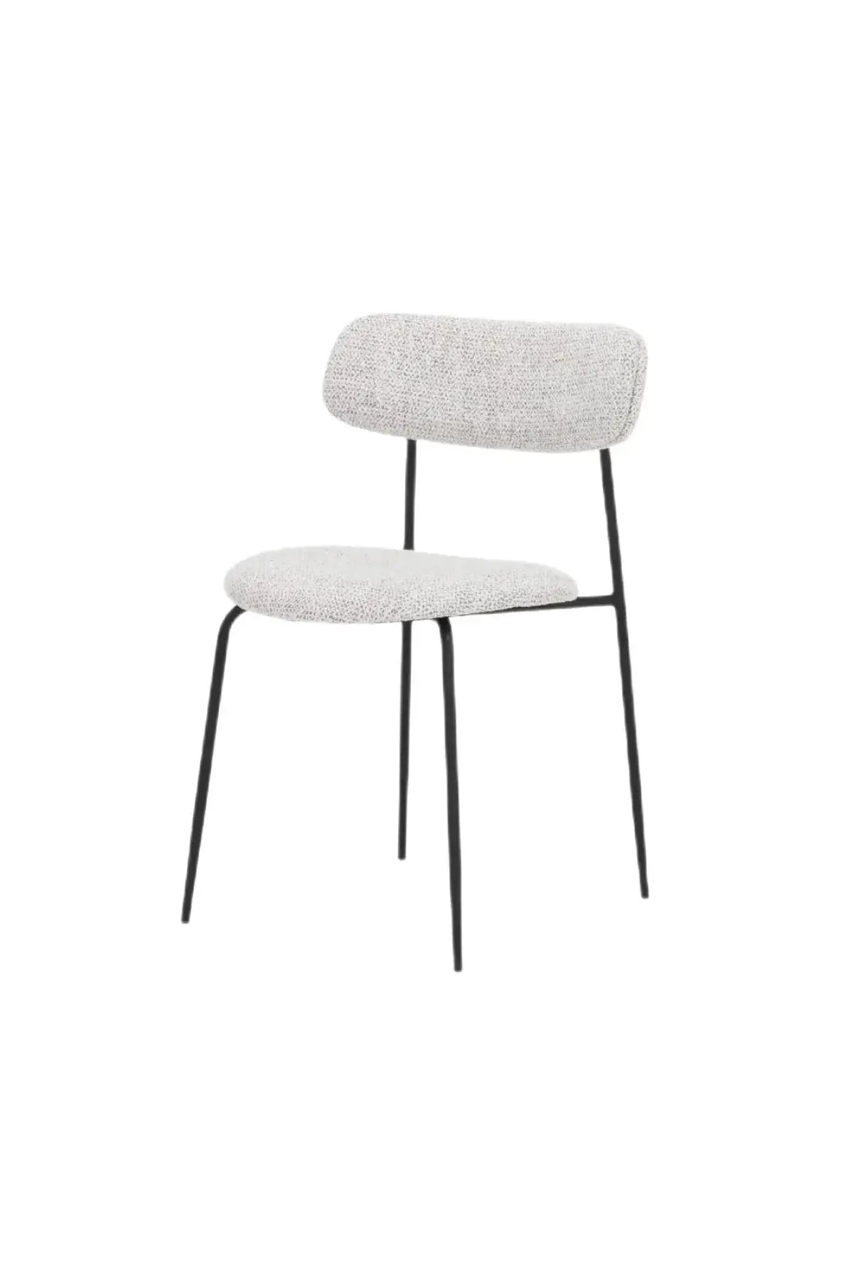 Meet the Casey Dining Chair. This dining chair exudes sophistication with its high-quality craftsmanship and sleek, slim tapered legs and frame. Upholstered in thick woven fabric in a striking white and gray texture, this chair offers durability and timeless elegance.
