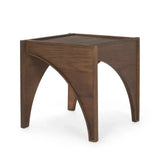 The Laraya End Table features sturdy solid oak legs and a durable oak veneer tabletop. Its dark brown finish adds a sleek, modern touch to any room.