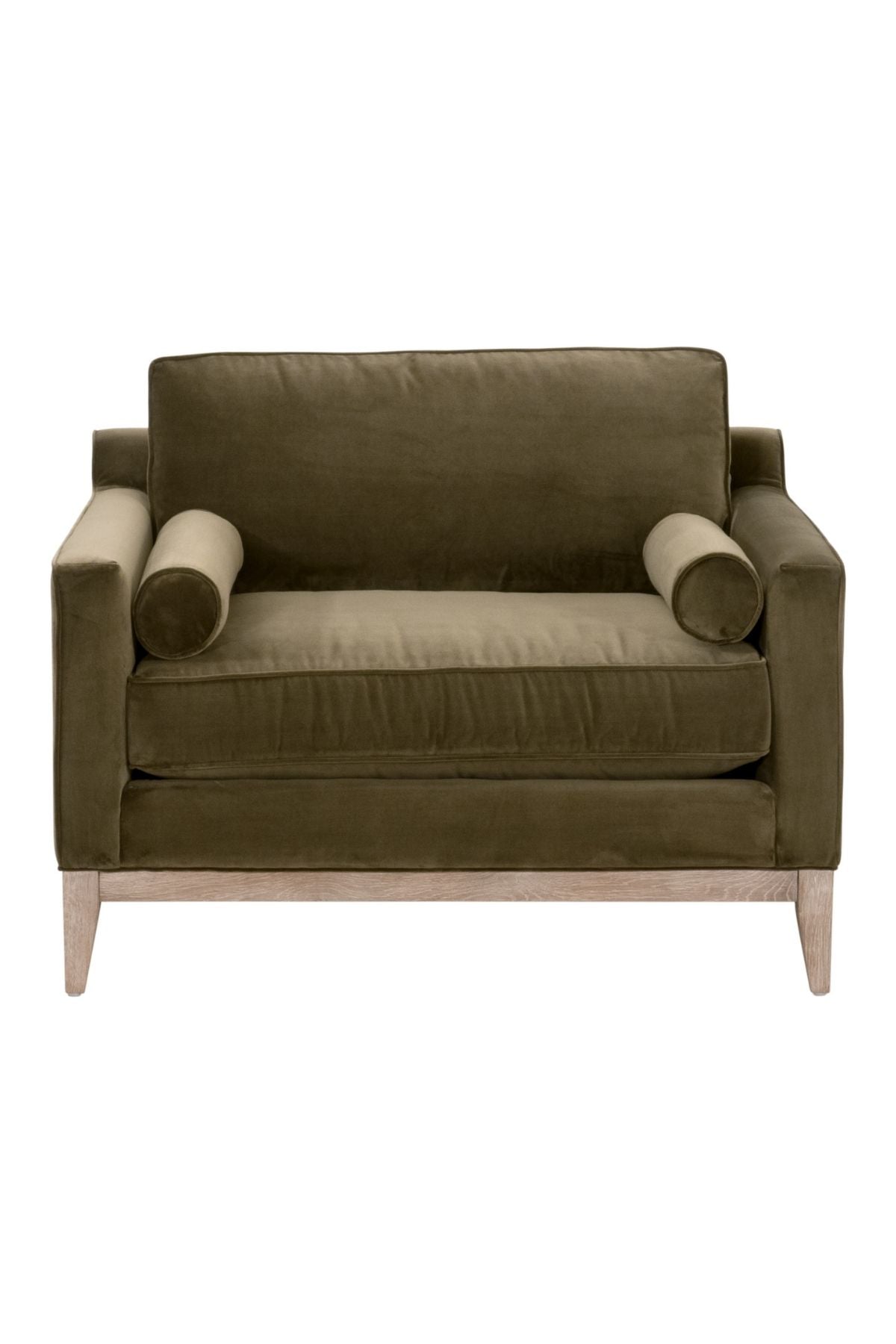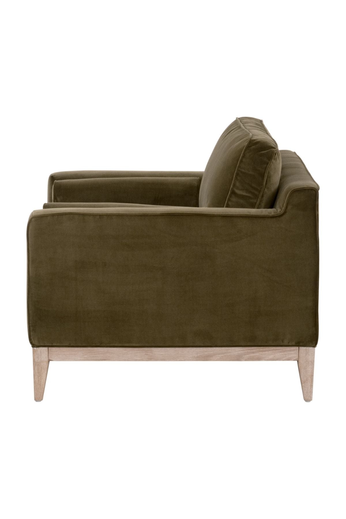 The plush and velvety texture of the Parker Accent Chair makes it very alluring and pleasing to the eye. Features a reversible seat and back cushions filled with a polyester and down blend that are ideal to curl up on. The velvet upholstery is a gorgeous olive green that is rich in color and made of polyester.