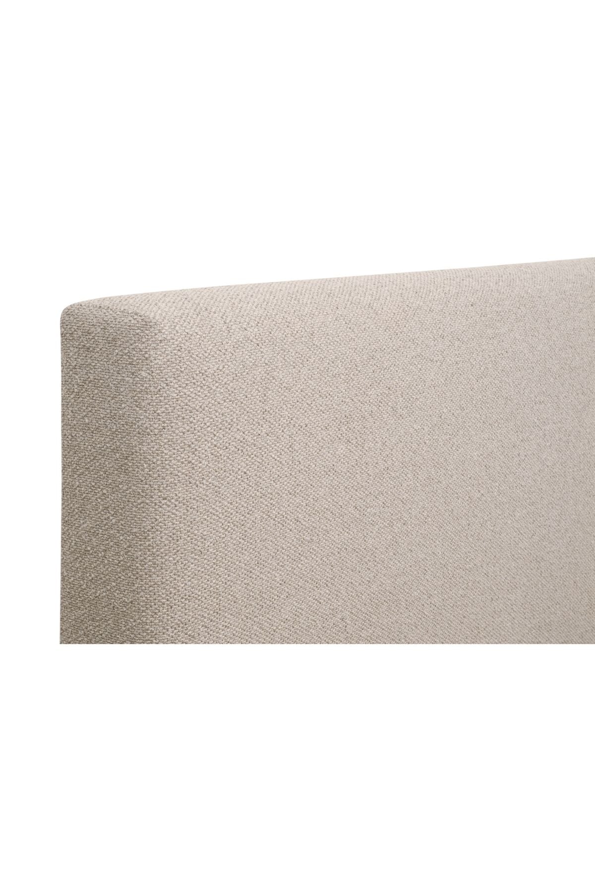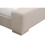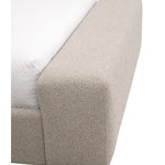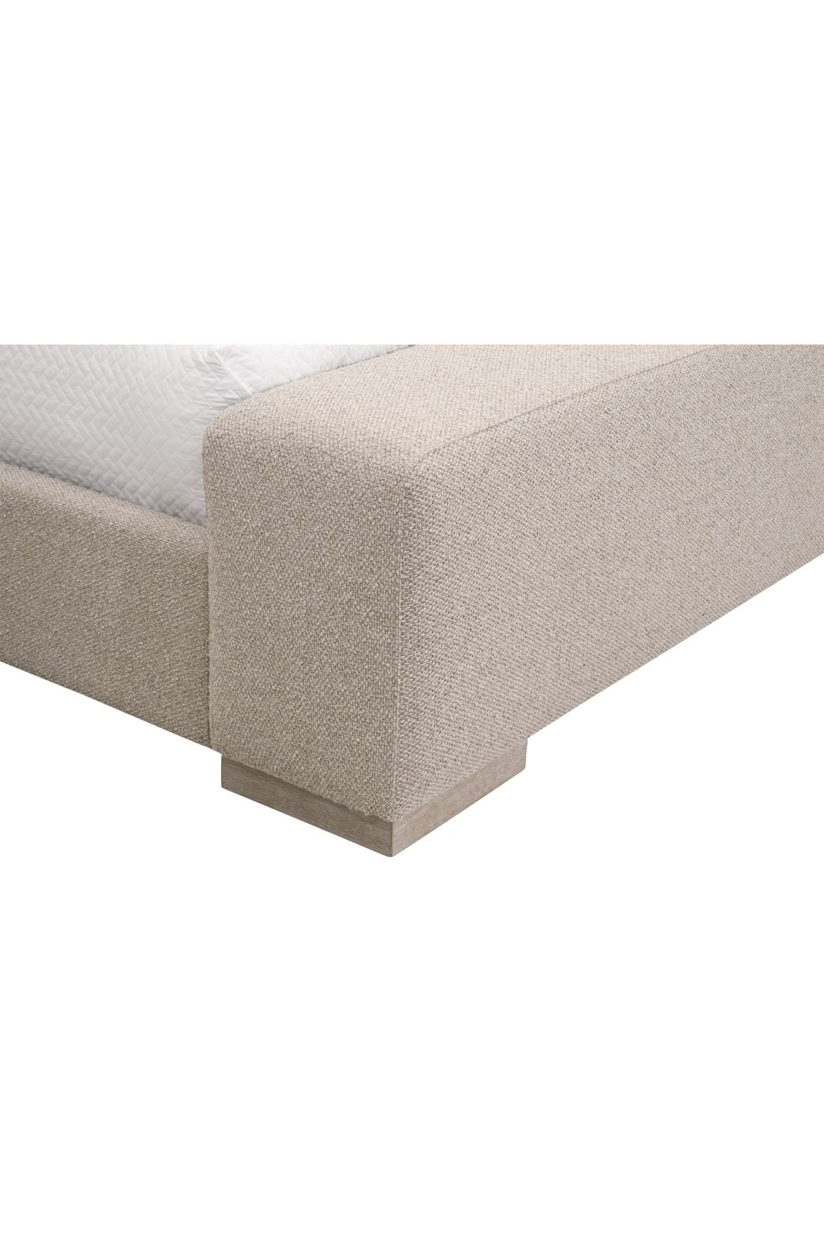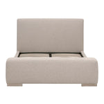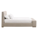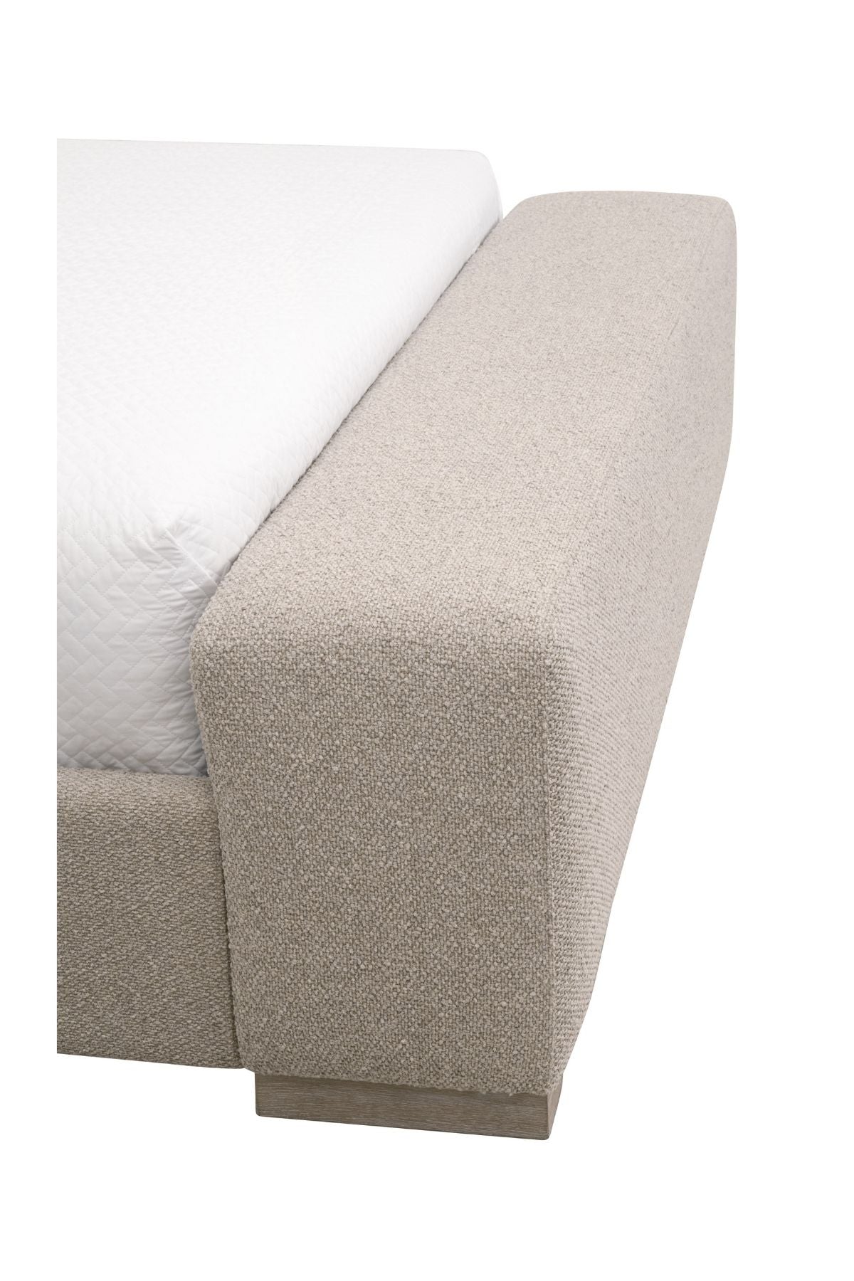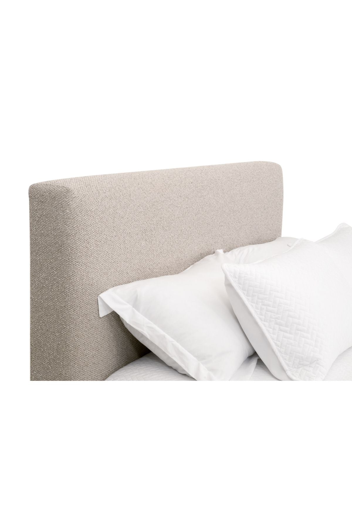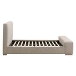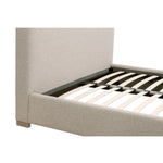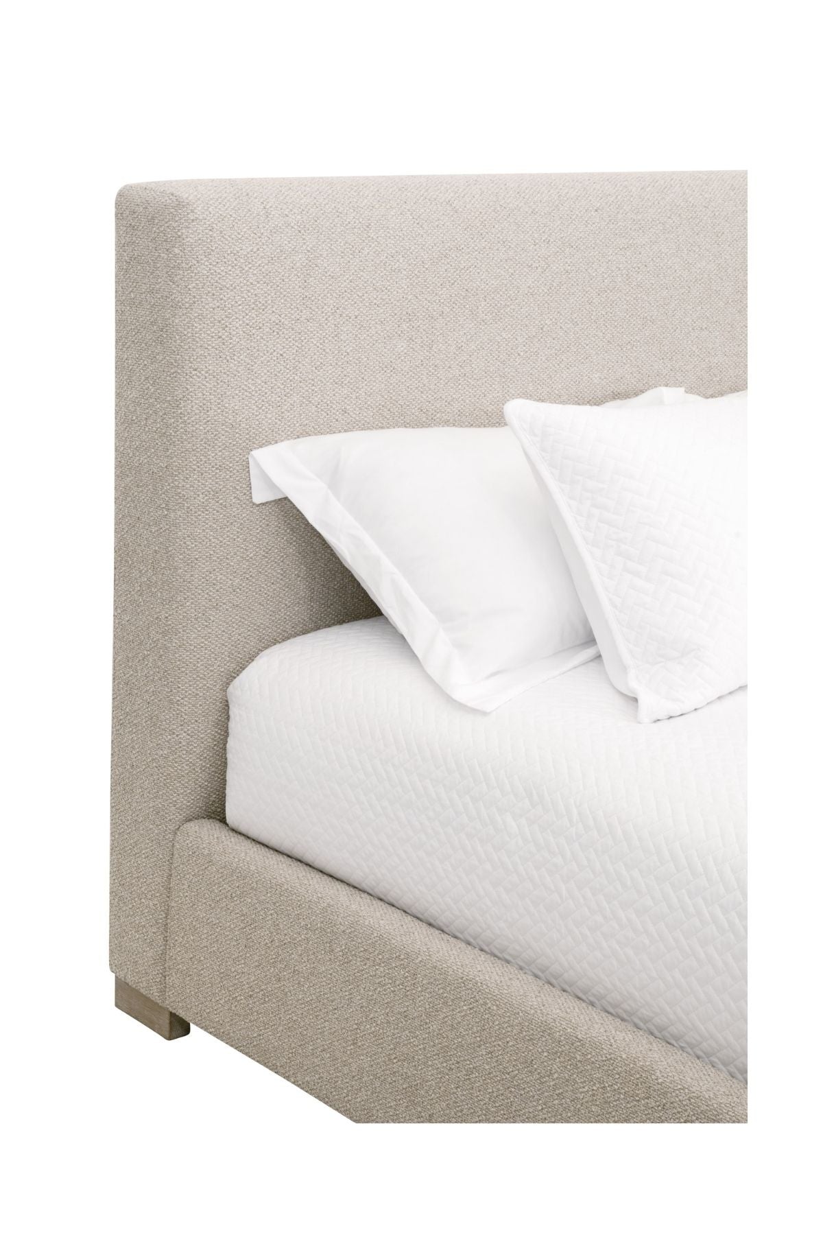 The Warren Bed exudes modern elegance with its clean lines and fully upholstered frame in a soft, natural gray fabric. Its low-profile design is complemented by a plush, padded headboard, offering both style and comfort. Slats included.
