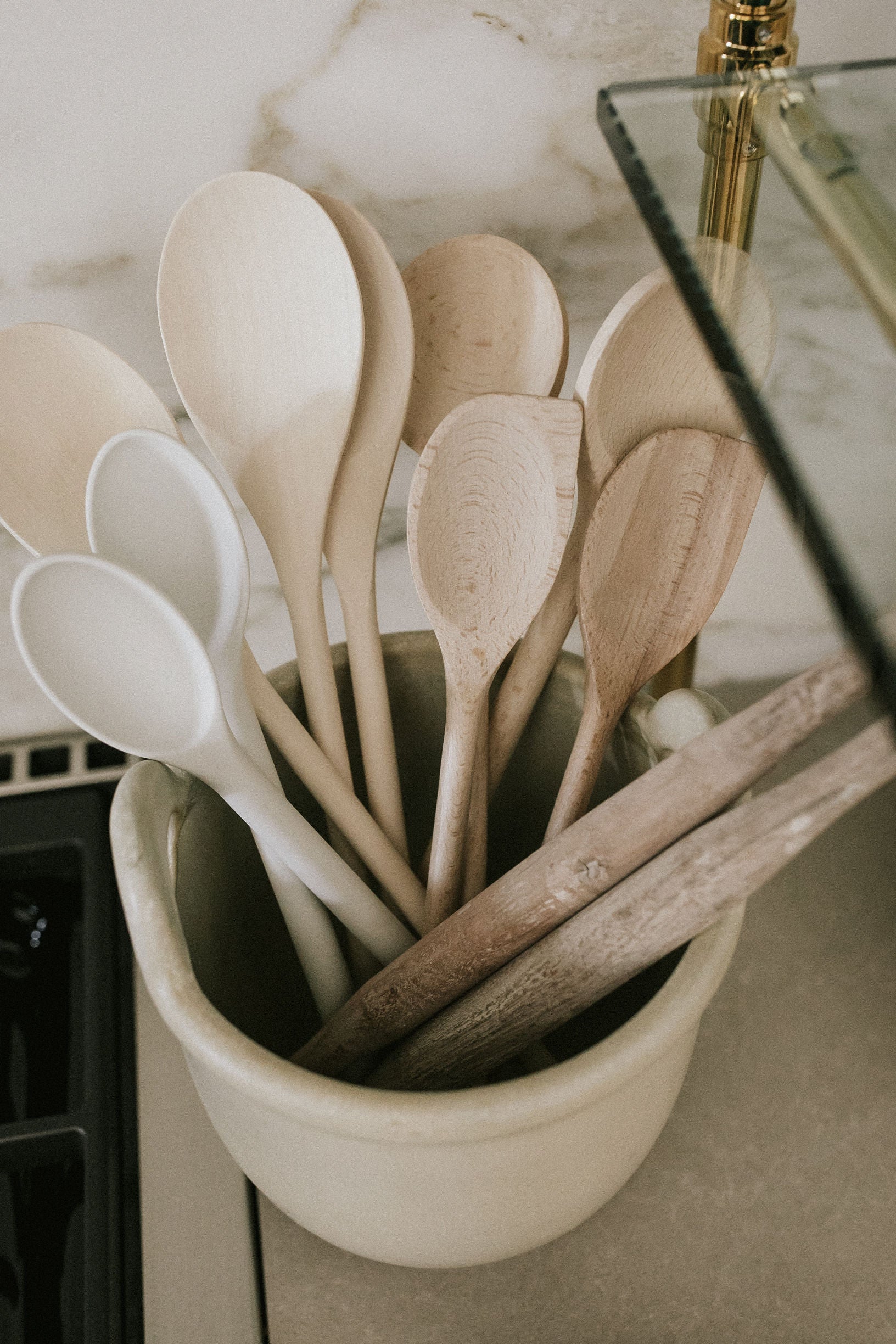 A true kitchen staple! The Jessie 14" Wooden Spoon is great for use with non-stick cookware + pretty enough to display in your fav utensil holder.