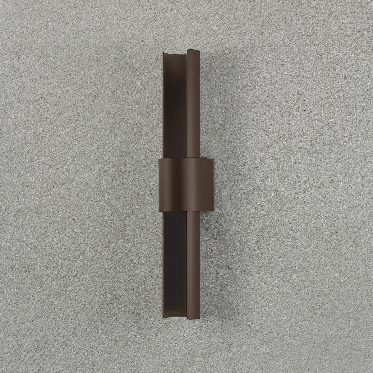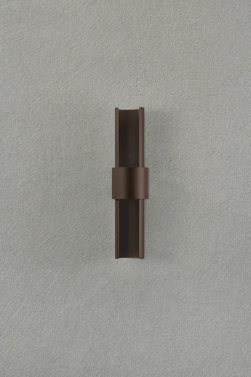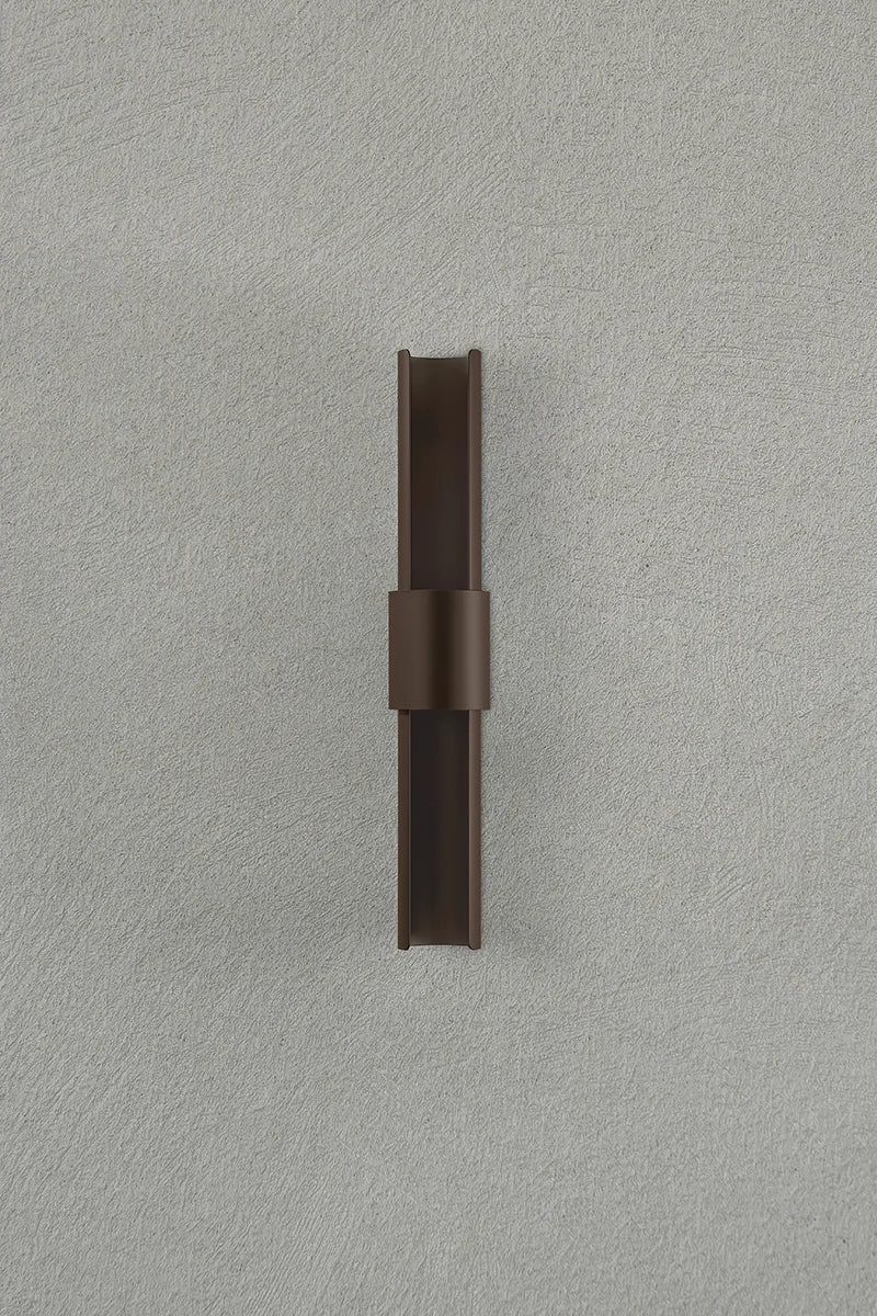 Meet the Ossian Outdoor Sconce. An industrial-modern sconce with graphic appeal, Ossian combines smooth curves and an allover Bronze materiality to create an edgy exterior staple. Its tubular shape creates a unique C-shaped channel that is intersected by a wide belt at the center, concealing the light source. As the channel fills with light, this graphic sconce casts an ambient glow around an outside area.