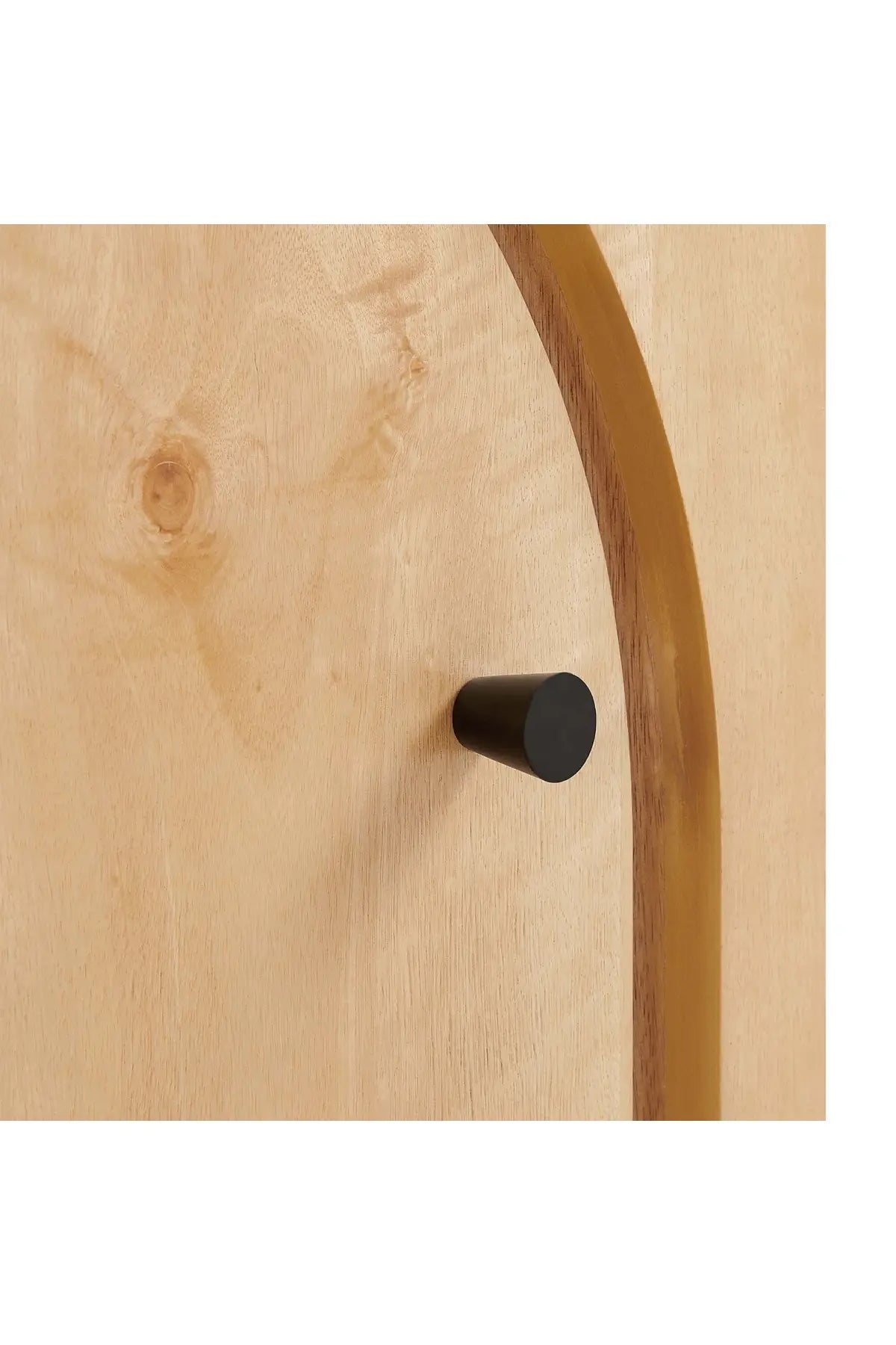 Meet the Appia Arched Door Nightstand - Oak, blending modern design with timeless functionality. Crafted from durable MDF with a mango wood veneer, this nightstand features a mid-century wood grain that adds organic warmth to any bedroom. Its arched door opens to reveal a spacious cabinet for convenient storage. Versatile and stylish, this one-door nightstand also works as a modern accent table or side table in the living room or lounge area.