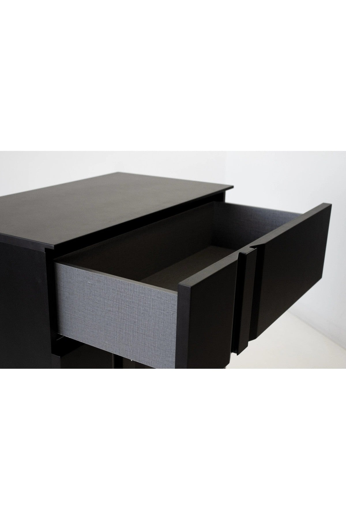 The Carbon Nightstand: Where design is in the details. Its all black matte look brings the latest in fashion finishes into the bedroom with soft close drawer features and a minimal drawer detail that doubles as a pull. Available as both a right-facing and left-facing option.