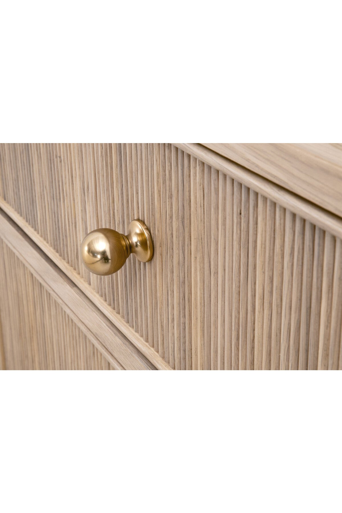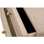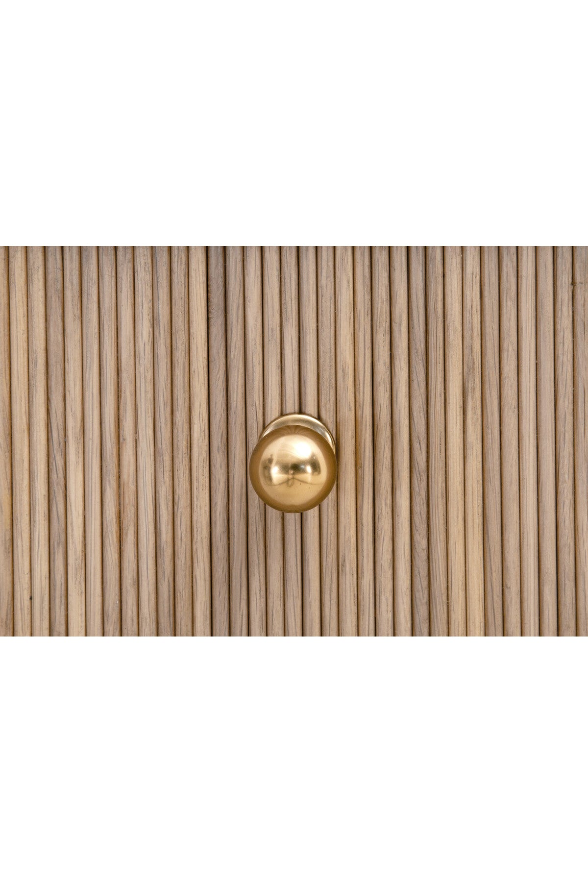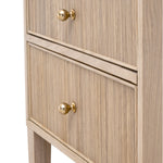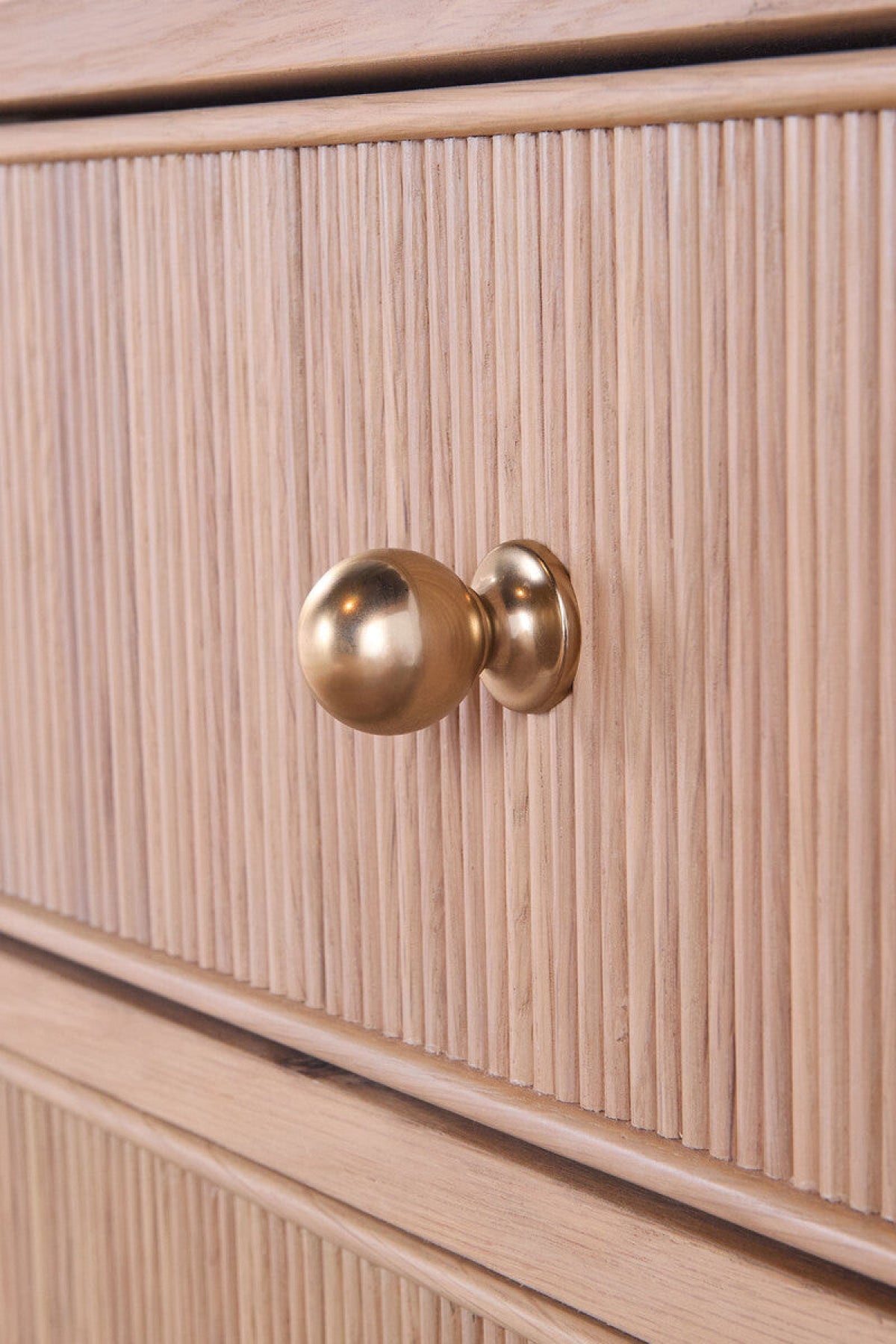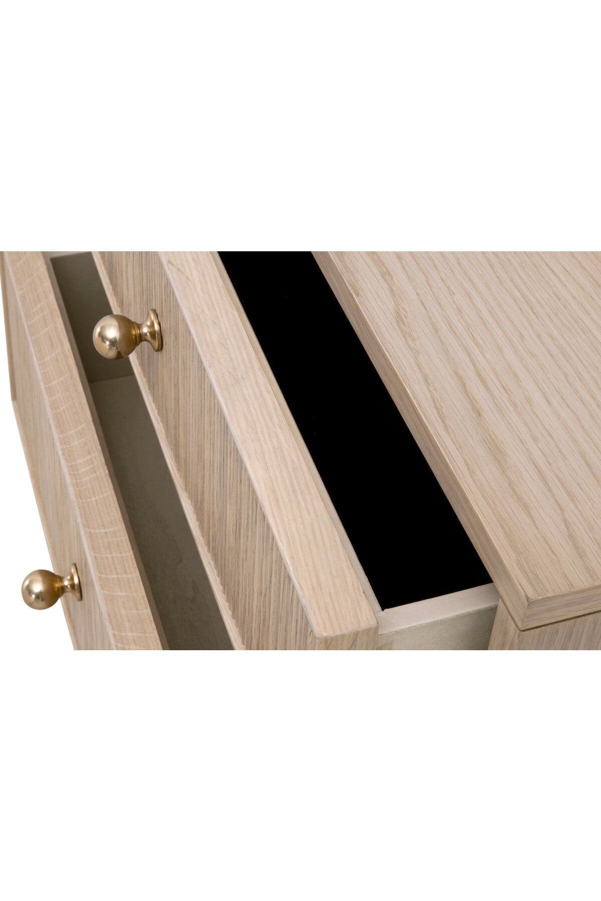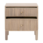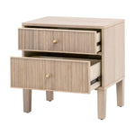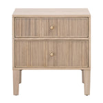 Enhance your bedroom with the Highland Nightstand, featuring a fluted wood drawer front, solid iron drawer knobs, and a felt-lined top drawer for added luxury. The dual 3/4 undermounted, soft-close metal drawer glides and dovetail joinery ensure durability, while the KD leg construction adds a touch of expert craftsmanship.