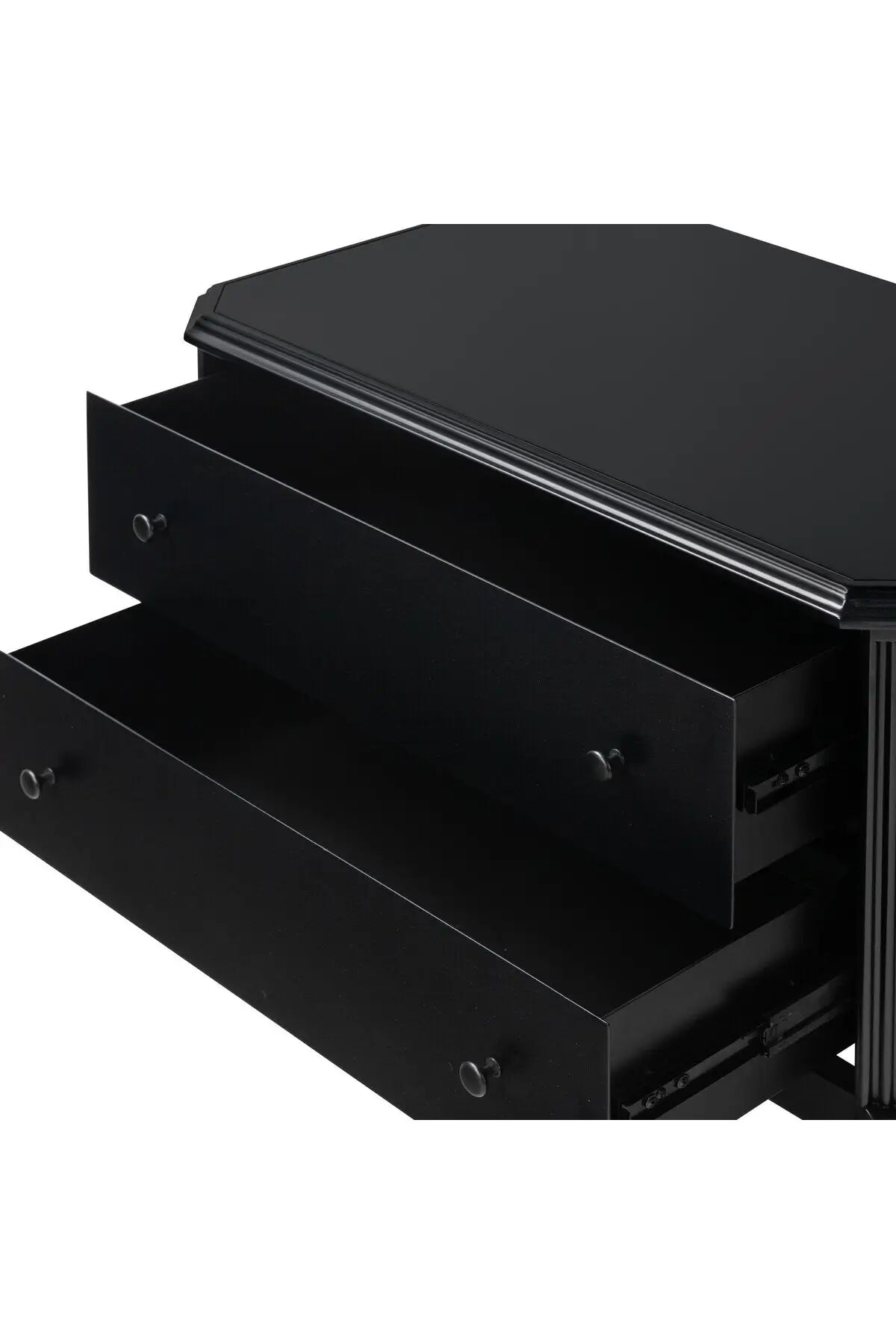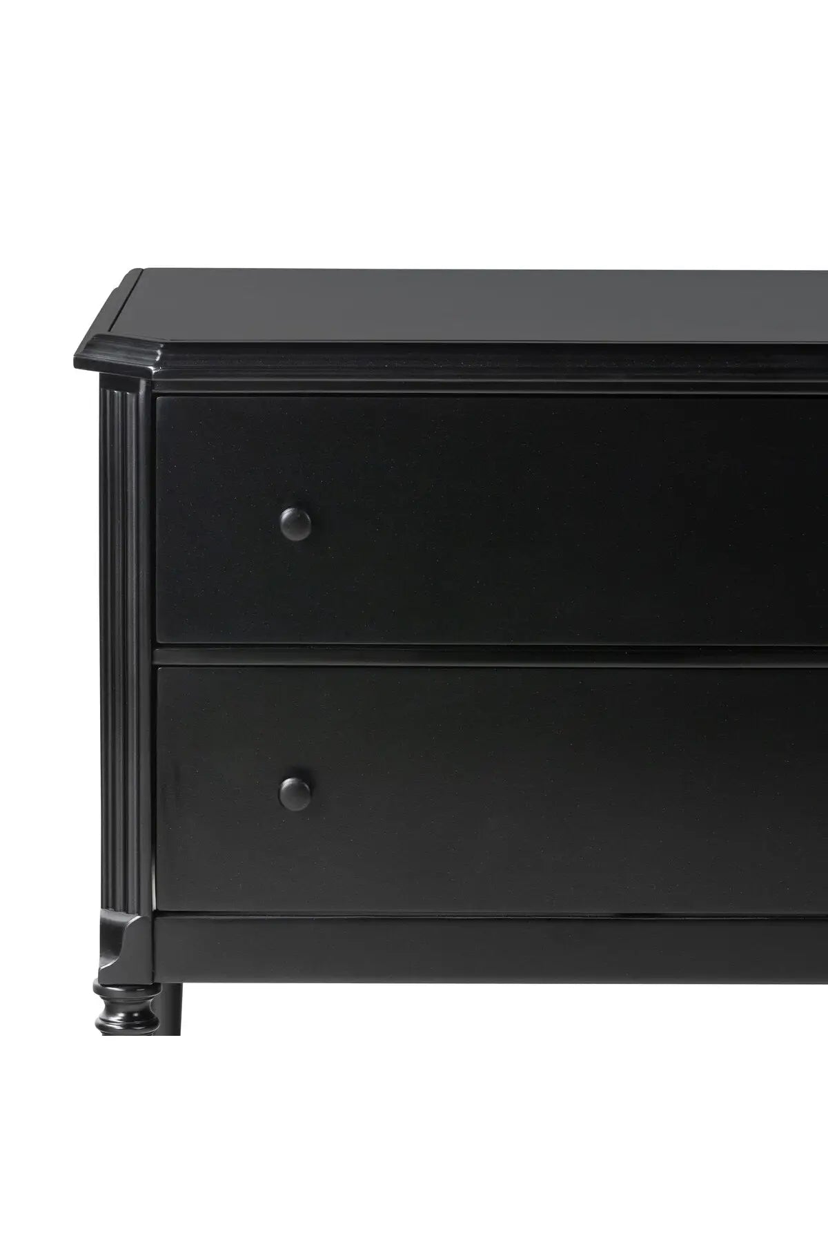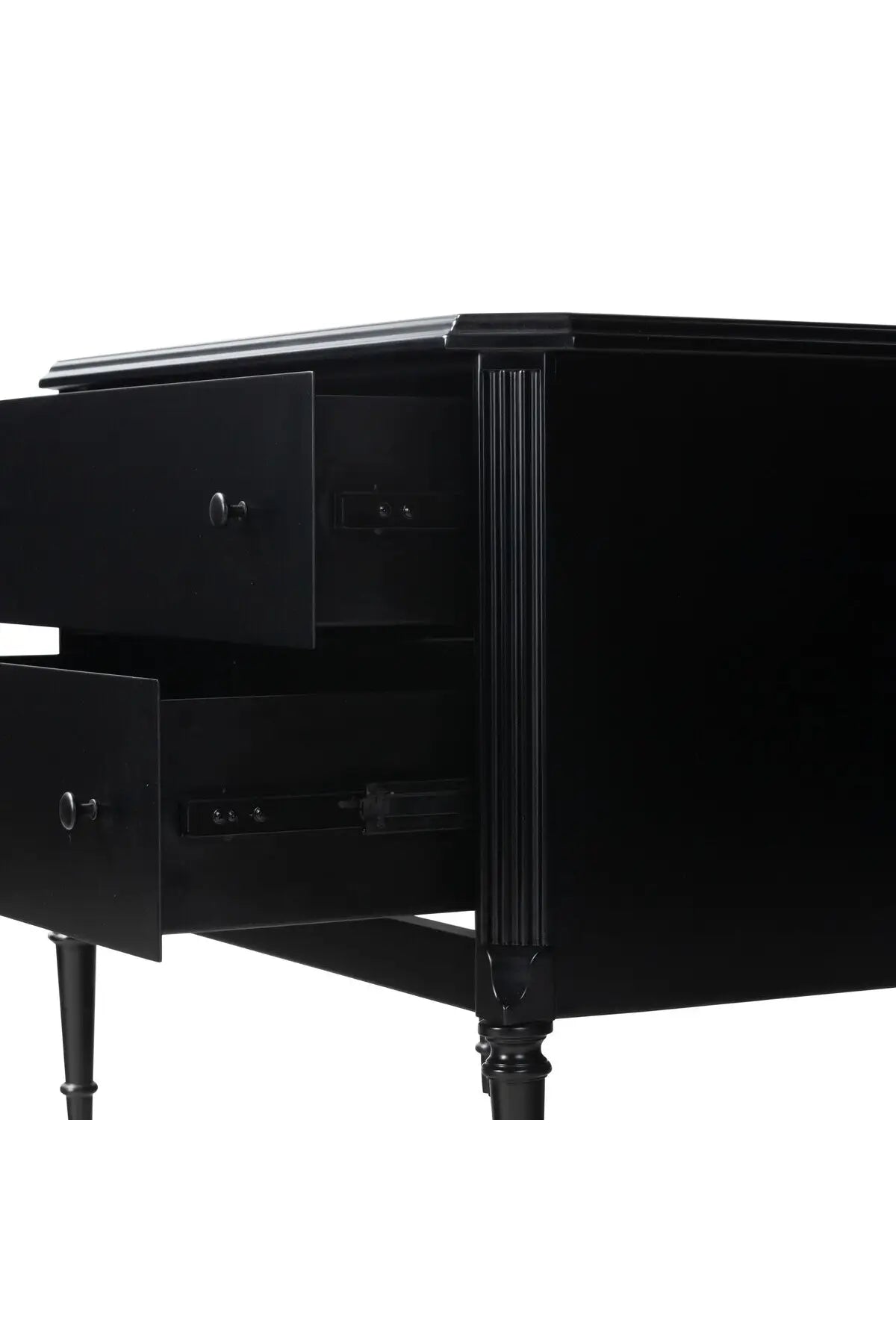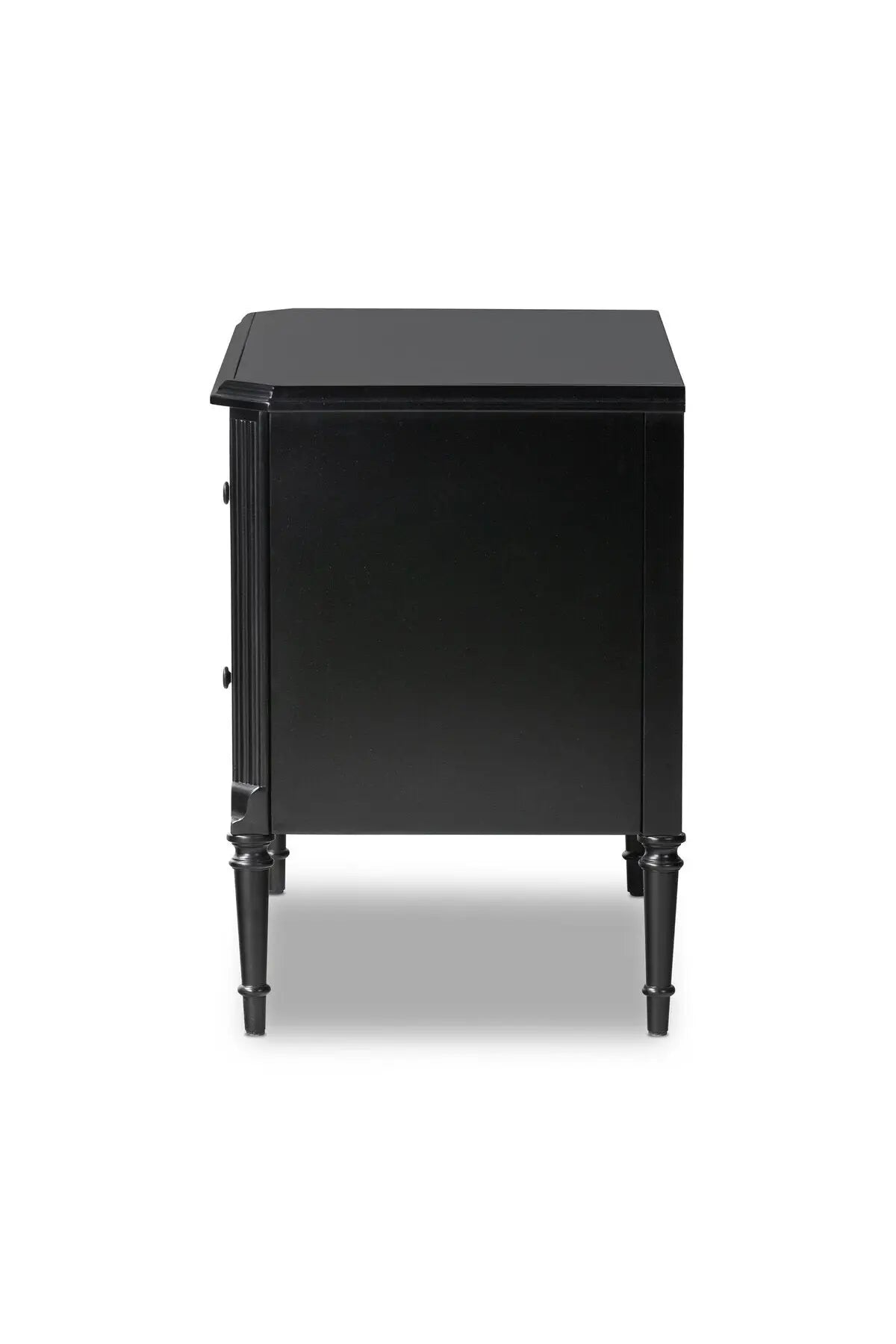 Meet the Lendon Nightstand. This French-inspired full-on metal nightstand features turned leg detailing, classic moulding along the edges and an ogee edging on top. Drawers open and close on smooth side-mount metal glides. Crafted from iron in a matte black.