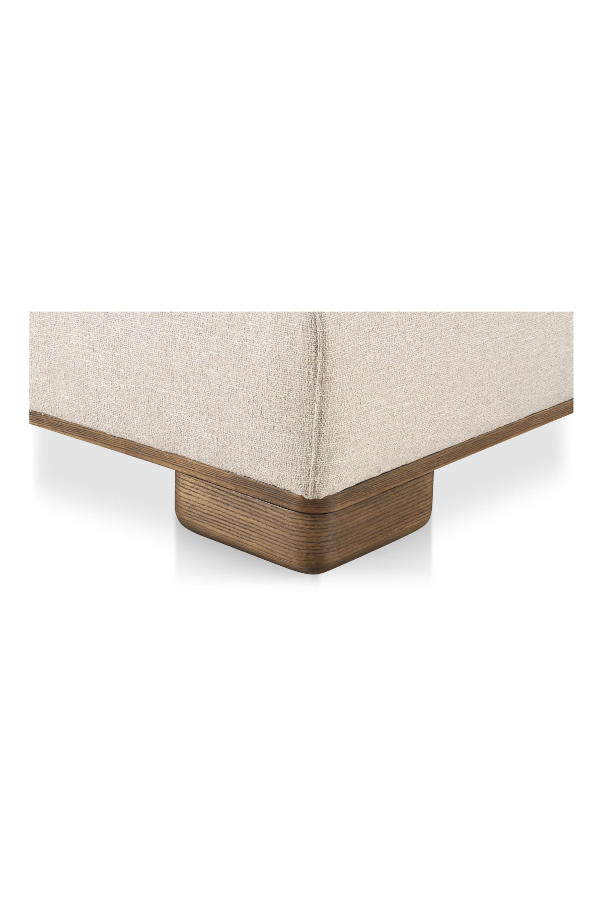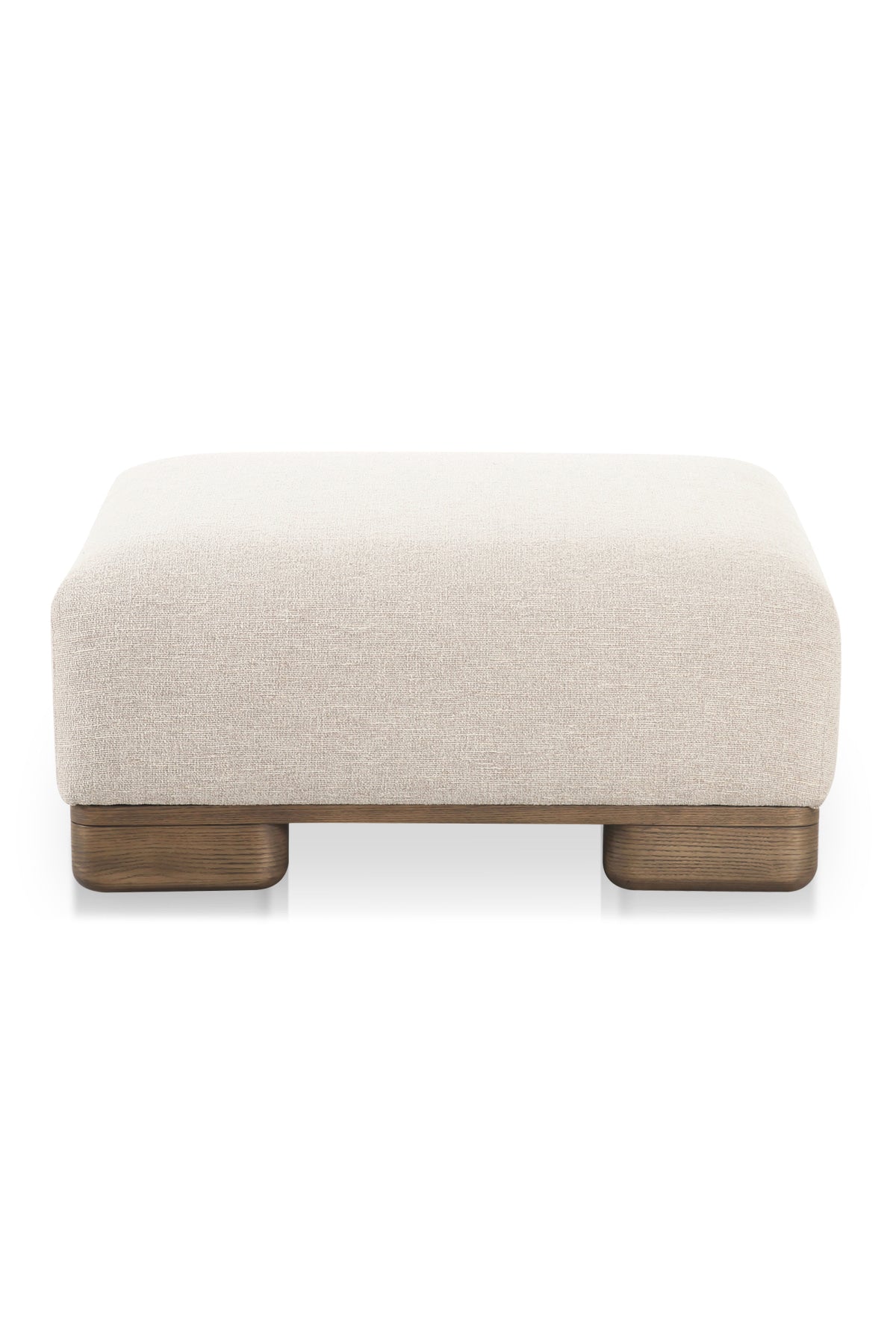Designed with modular components that expertly function as standalone pieces or as part of modular configurations, the June Ottoman is all about versatility. Wrapped in warm-toned, textured performance fabrics and elevated by oversized oak veneer legs, this piece combines everyday living and understated elegance. Built for ultimate relaxation — the plush feather and fiber fill, along with lumbar toss cushions, offer ultimate comfort.