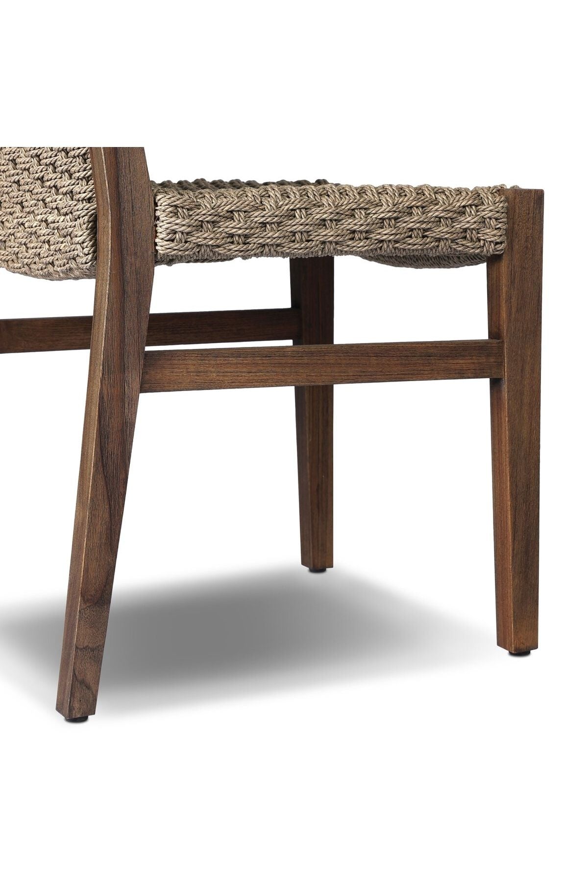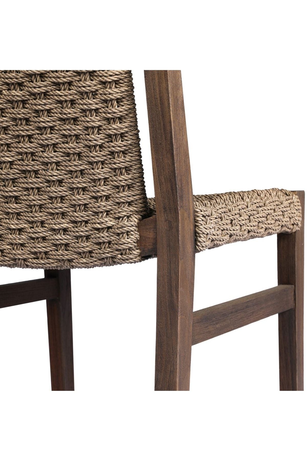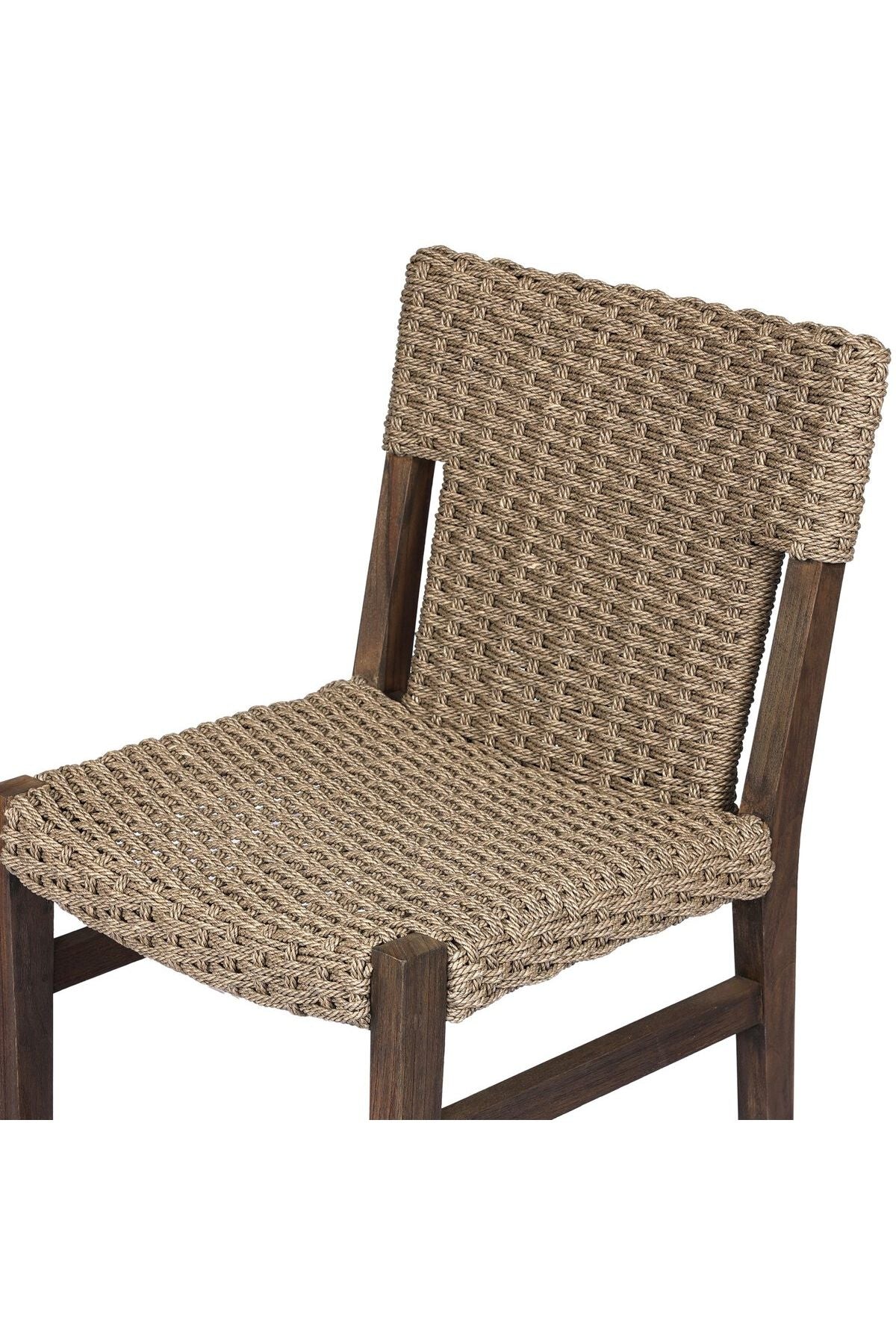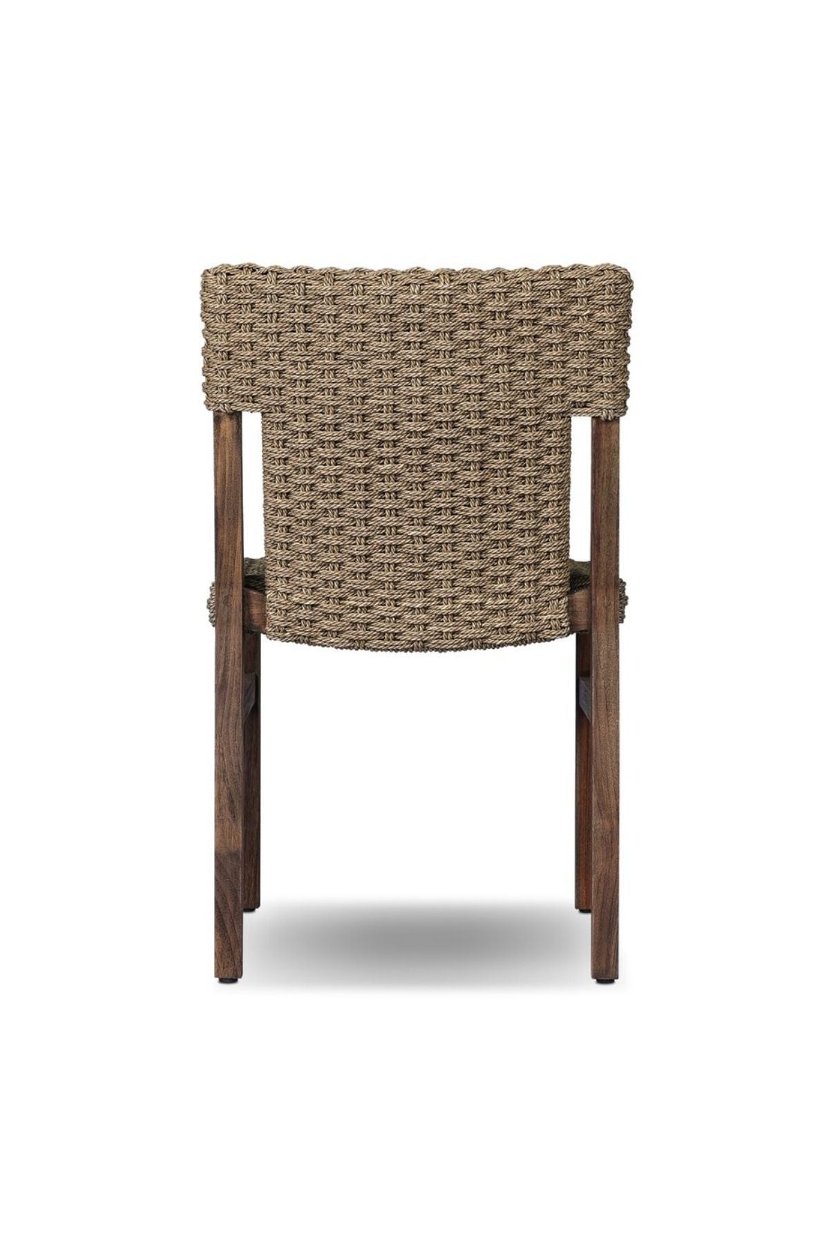 Meet the Cromwell Outdoor Dining Chair. Add texture to your outdoor space with a Nordic-inspired dining chair. A subtle sling seat of all-weather wicker crafts a chunky weave, all framed out by FSC®-certified teak. Cover or store indoors during inclement weather and when not in use.
