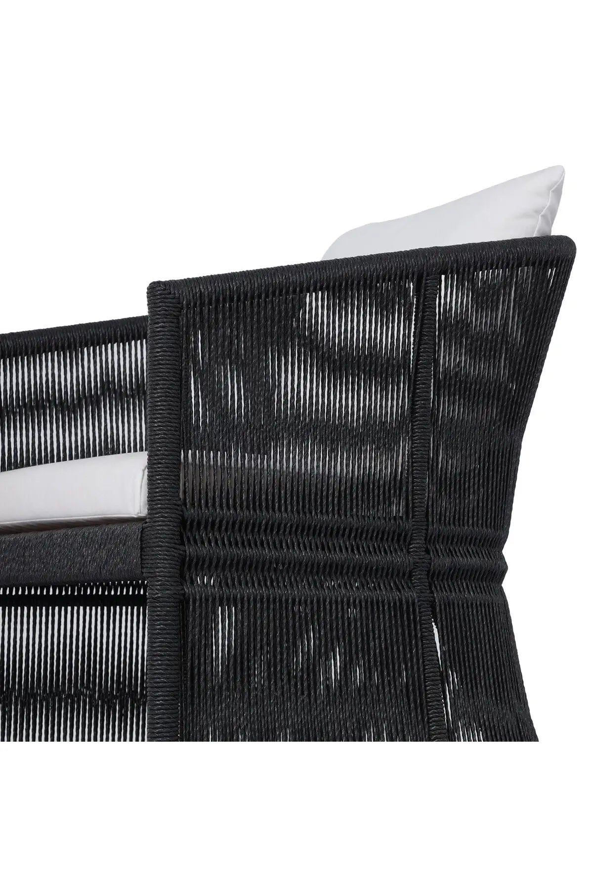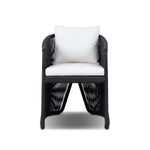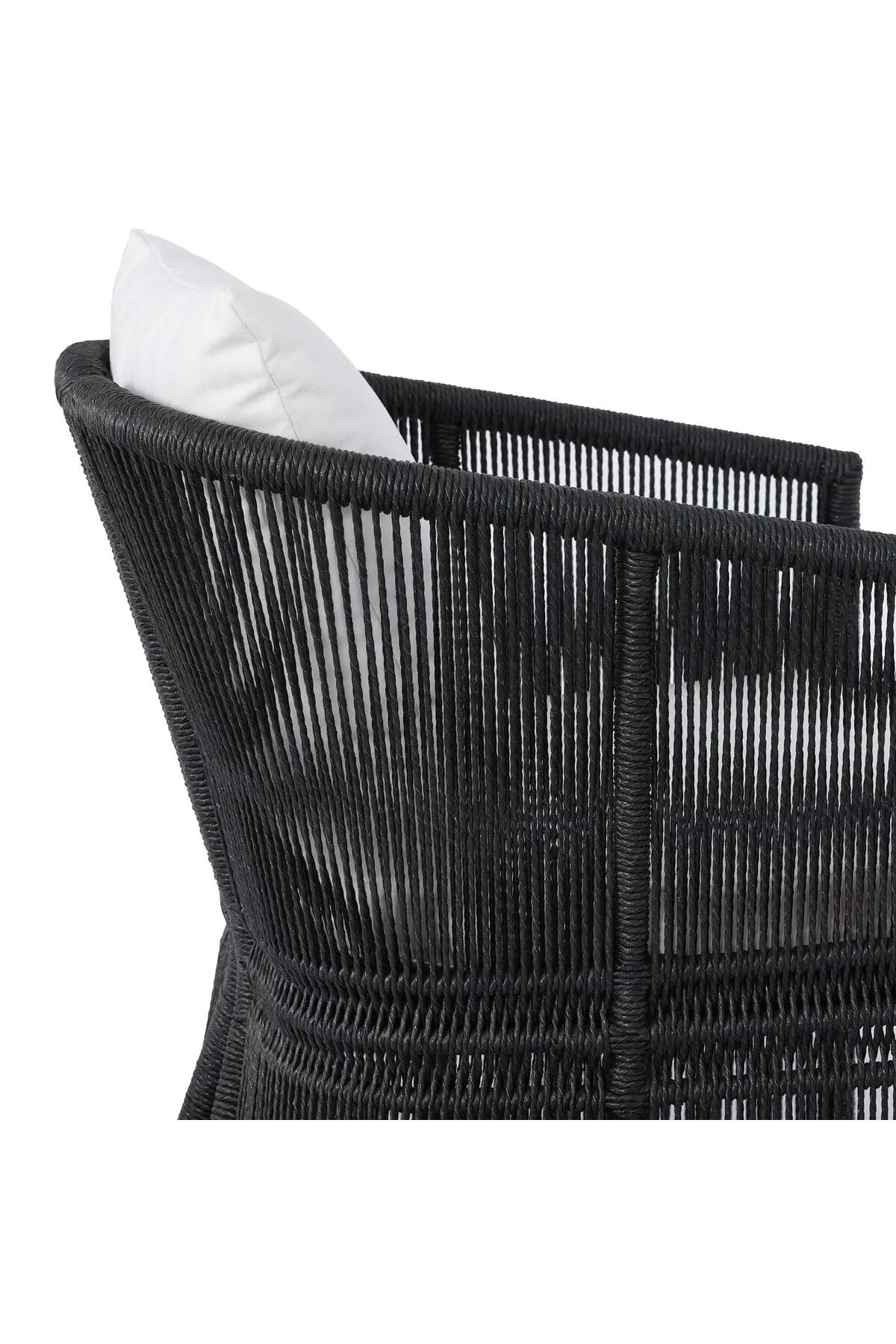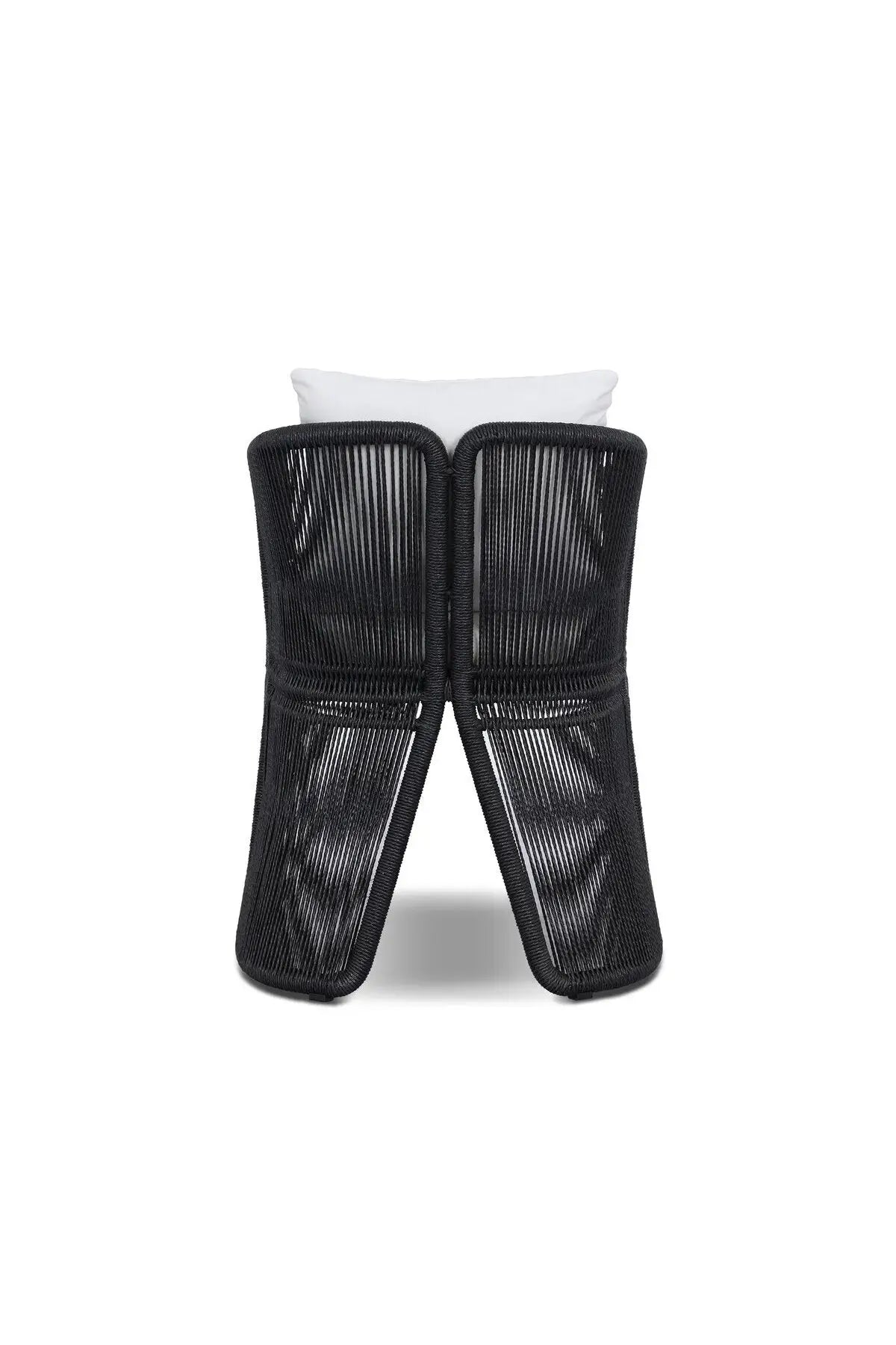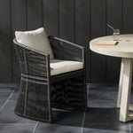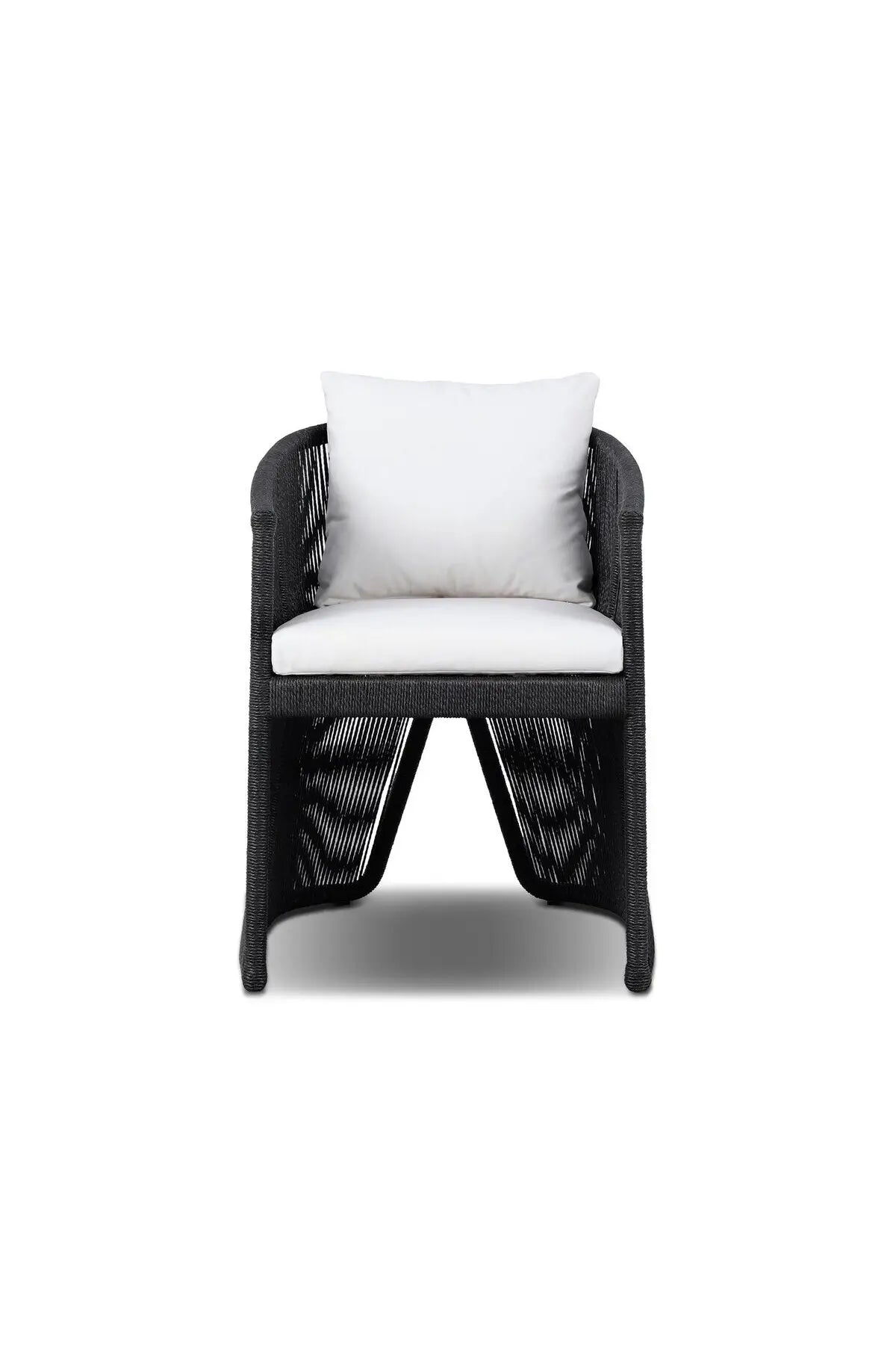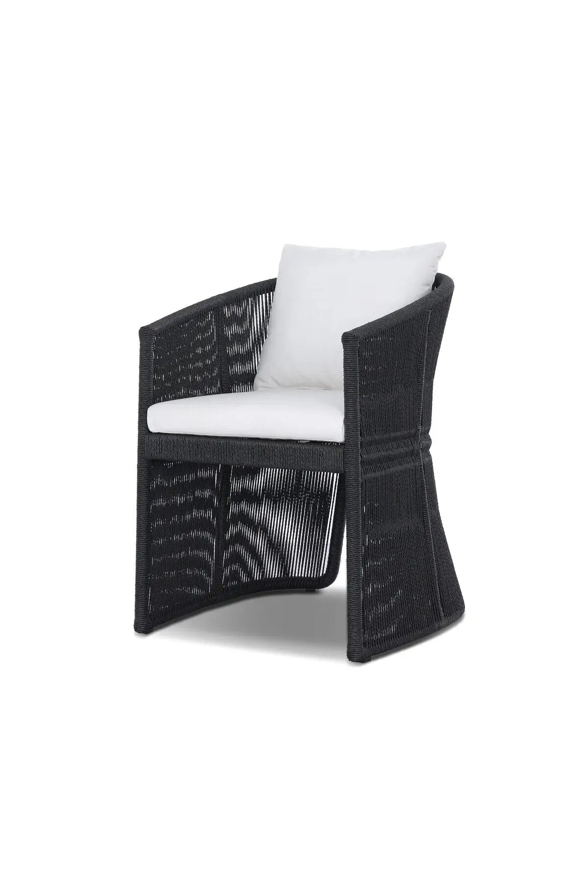 Meet the Mondira Outdoor Dining Chair. A stunning spot for outdoor daydreaming. The linear rope-based design on this beautifully woven outdoor dining chair is paired with clean curves. Designed with an angular cutout detail on back so the seat is stunning from all angles. Back and seat cushions are UV-resistant, water-repellent and quick-drying. Cover or store indoors during inclement weather and when not in use.