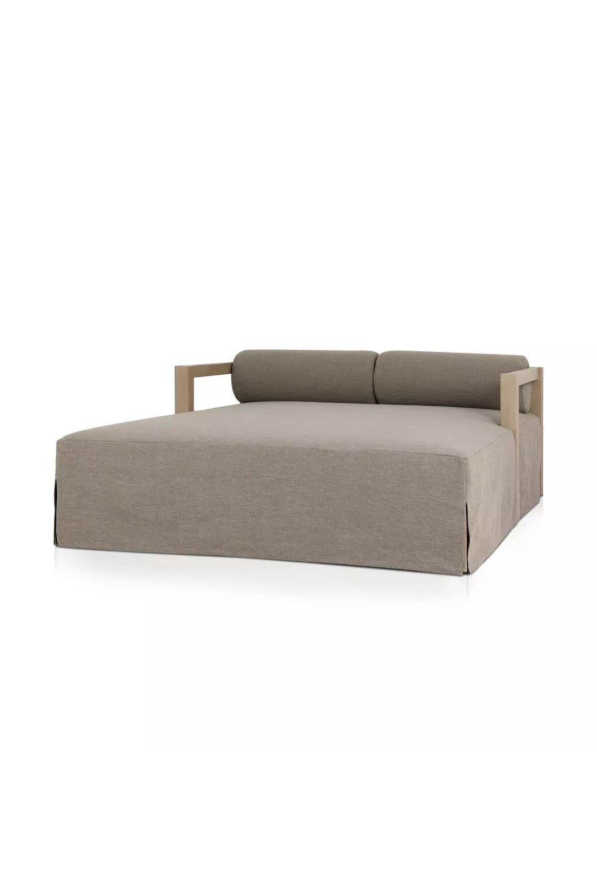 The Laskin Outdoor Daybed features a soft, durable slipcover over FSC®-certified teak for a stylish, relaxed look and comfortable support. Its antimicrobial fabric resists sunlight, abrasion, and chlorine, ensuring lasting outdoor use.