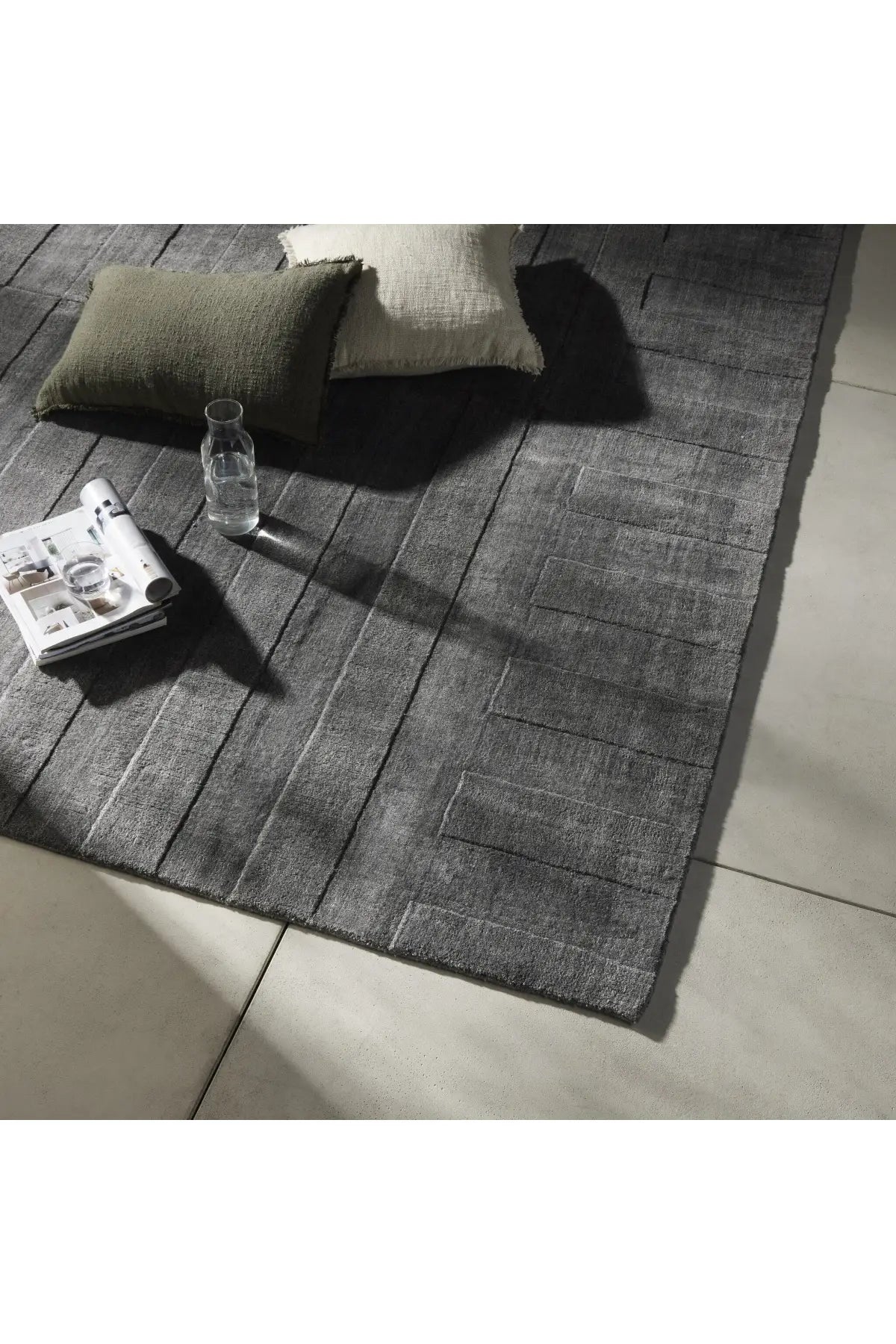 Meet the Ario Outdoor Rug. Asymmetrical lines create naturally shadowed stripes on this hand-sheared outdoor rug. The heathered hue and high-low pattern bring neutral ground to your outdoor lounge.