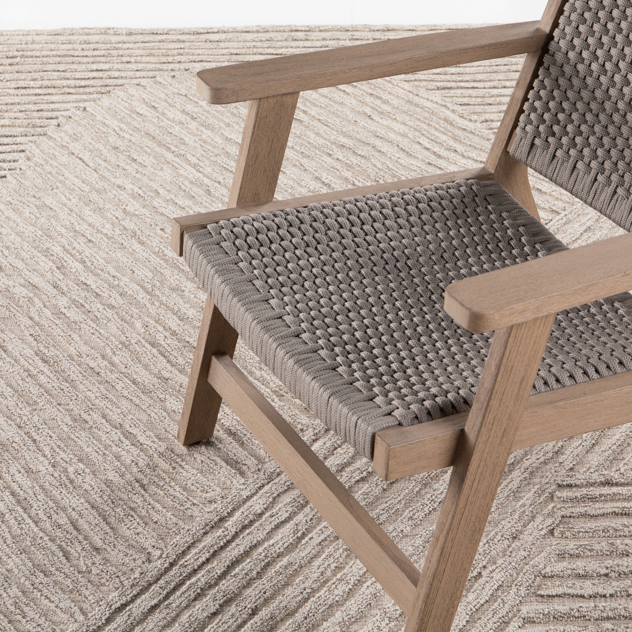 Meet the Chasen Outdoor Rug. Made entirely from recycled materials, linear patterns plus a high/low pile contrast work a high-texture look to outdoor styling. Store inside during inclement weather and when not in use.