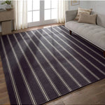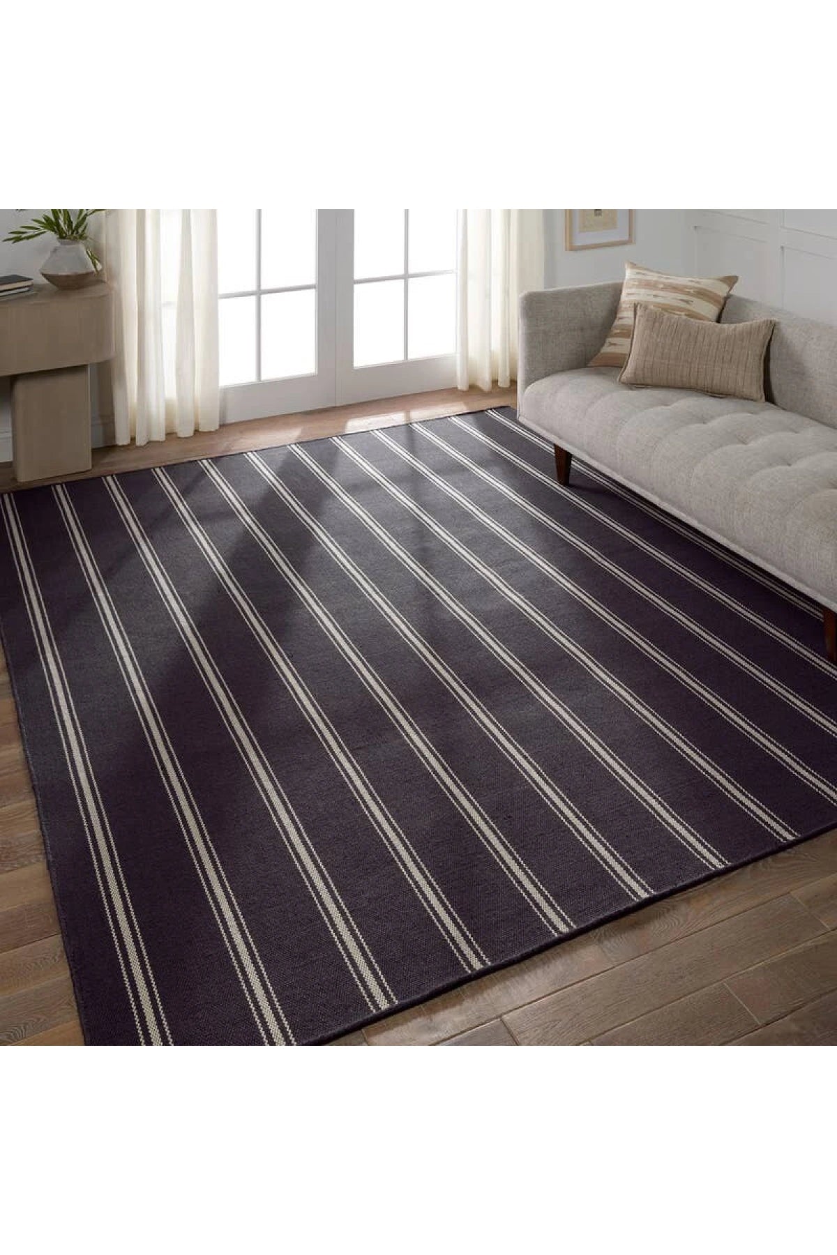 Meet the Laguna Rug - Graphite. The handwoven Laguna collection is an easy-going, classic statement for both indoor and outdoor spaces. Crafted of soft, flatwoven PET yarns, these traditional hues and striped designs set the tone for simple sophistication. The rug utilizes thin and thick stripes to add dimension and style. The cream and beige colorway delights in both high and low traffic areas of the home.