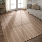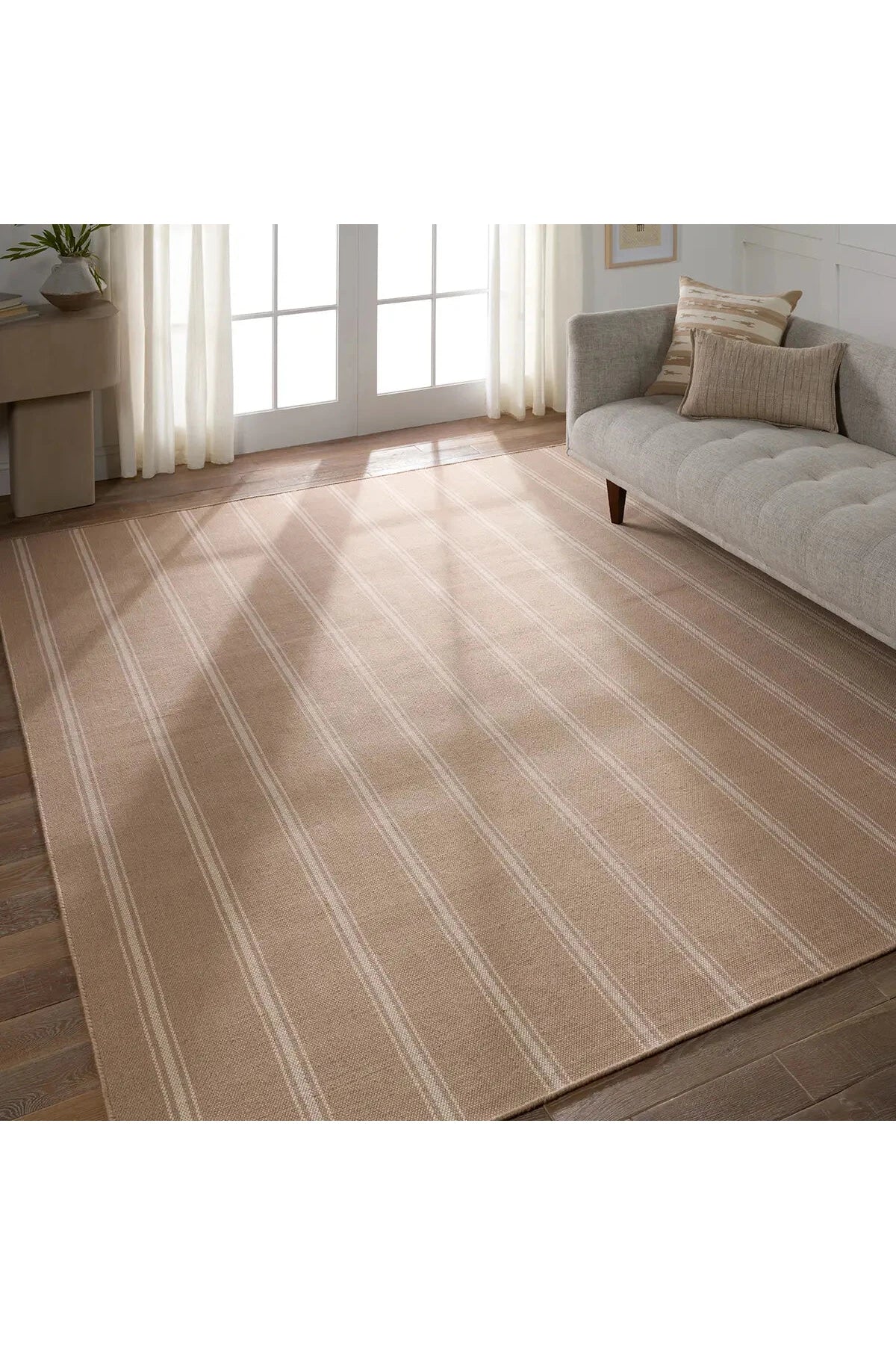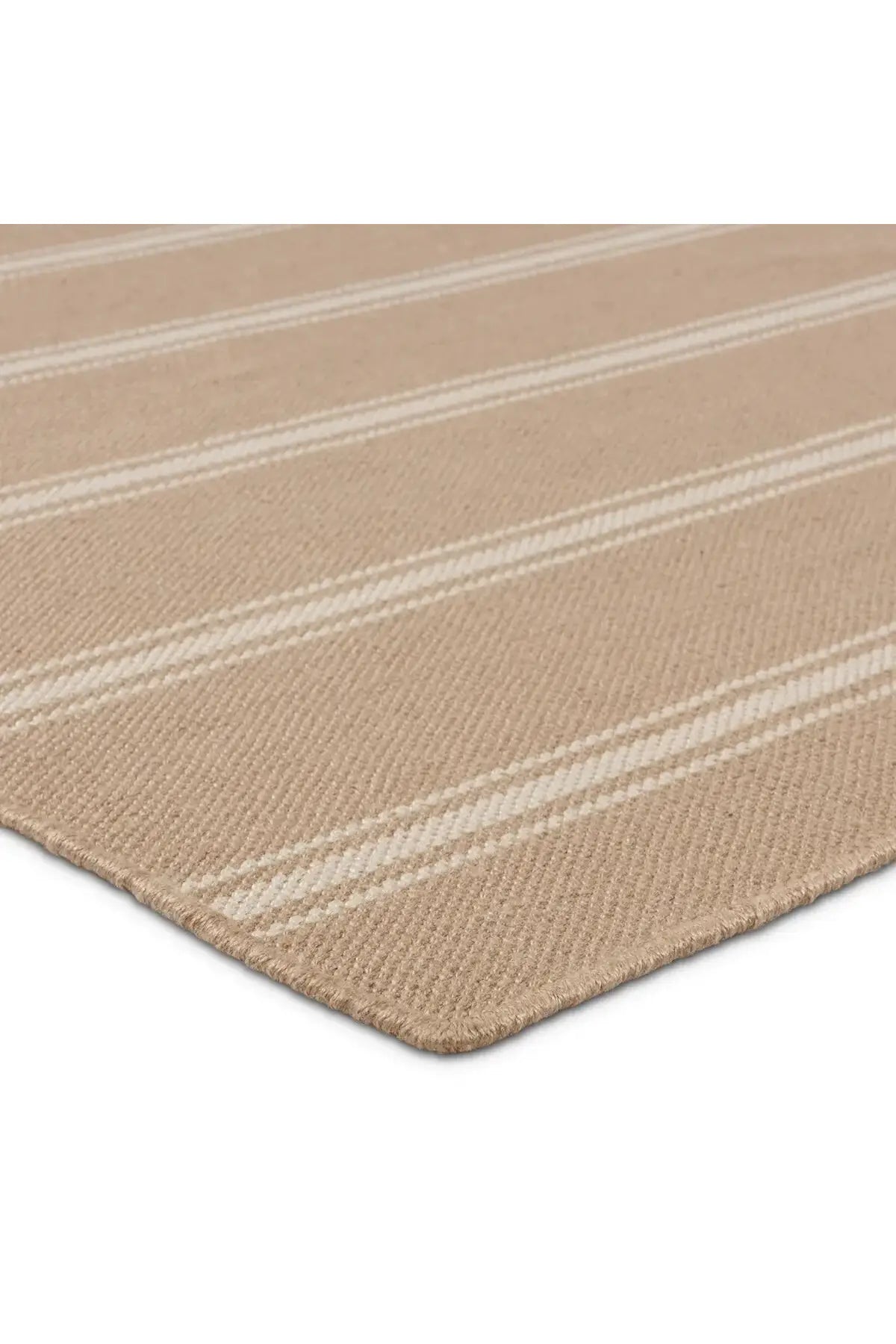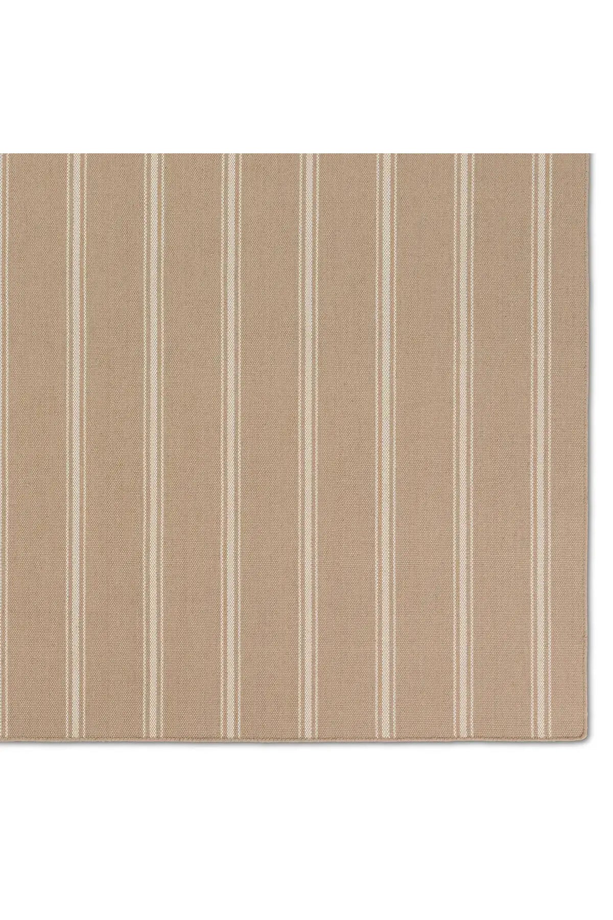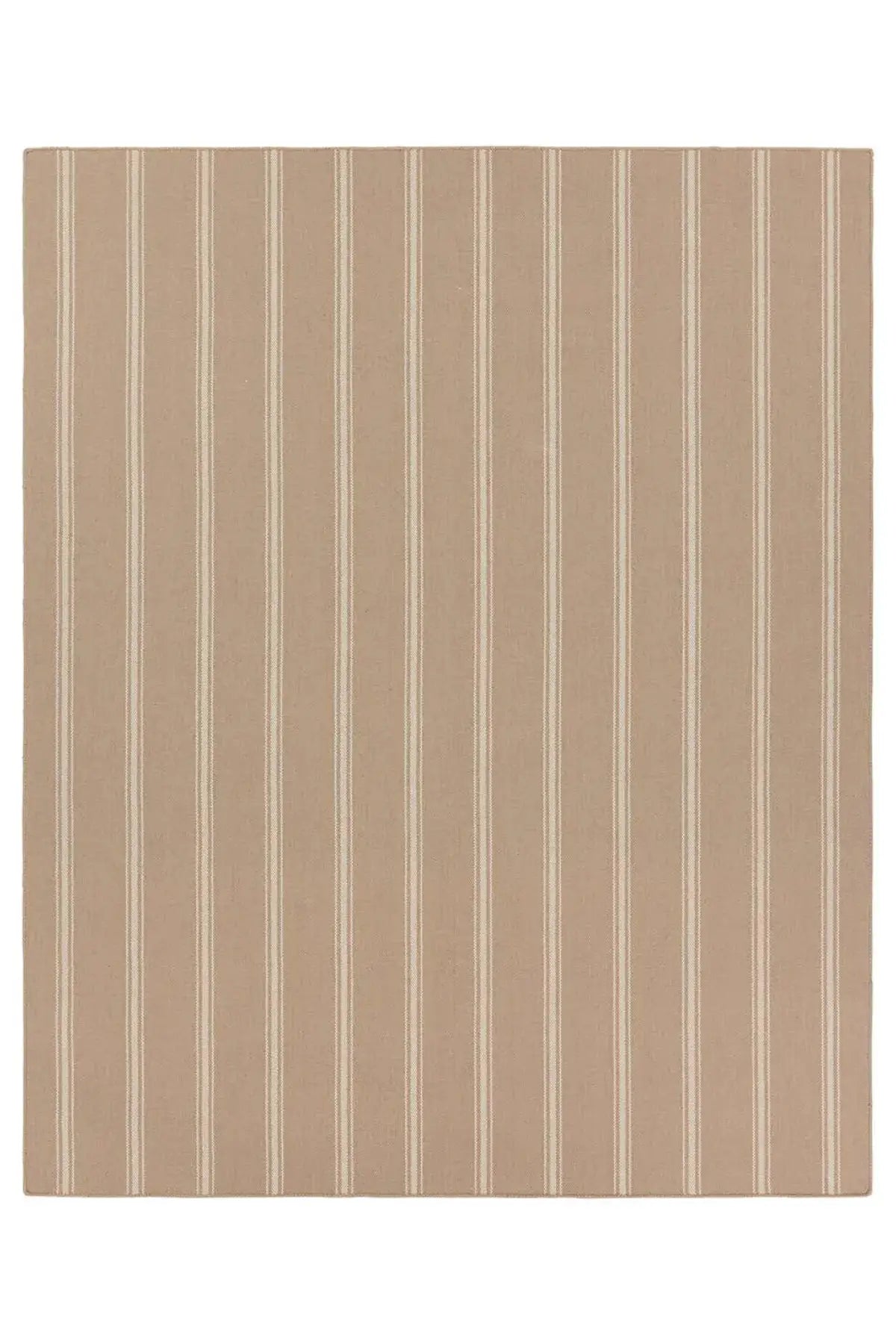 Meet the Laguna Rug - Fog. The handwoven Laguna collection is an easy-going, classic statement for both indoor and outdoor spaces. Crafted of soft, flatwoven PET yarns, these traditional hues and striped designs set the tone for simple sophistication. The rug utilizes thin and thick stripes to add dimension and style. The cream and beige colorway delights in both high and low traffic areas of the home.