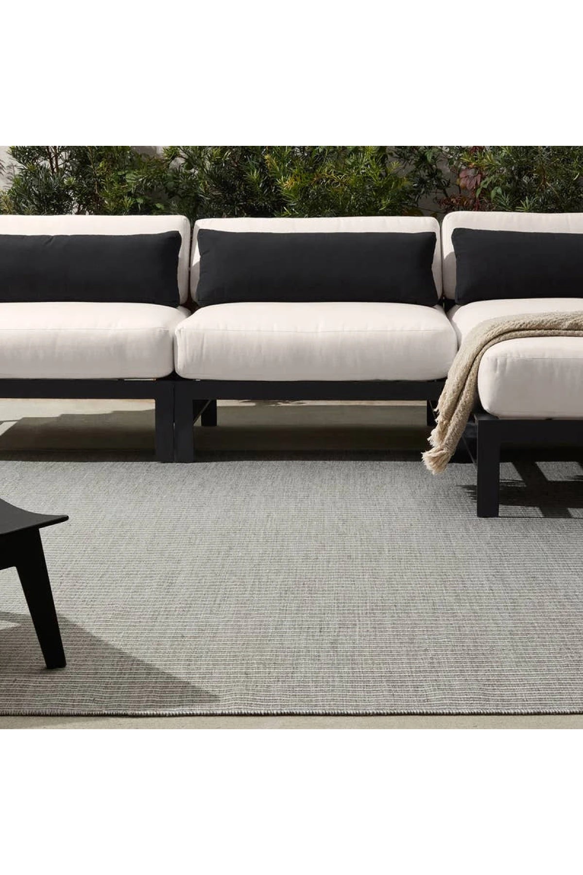The Sacdecer Rug is an exceptional handwoven indoor/outdoor rug, blending high-performance style with eco-conscious materials. Hand crafted in India from 100% PET yarn, sourced from recycled plastic bottles, it's both durable and environmentally friendly. Designed to withstand outdoor elements and heavy traffic. Samples are modeled at our North Scottsdale/Phoenix location.