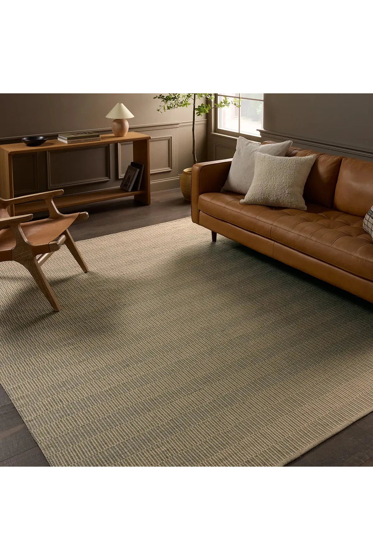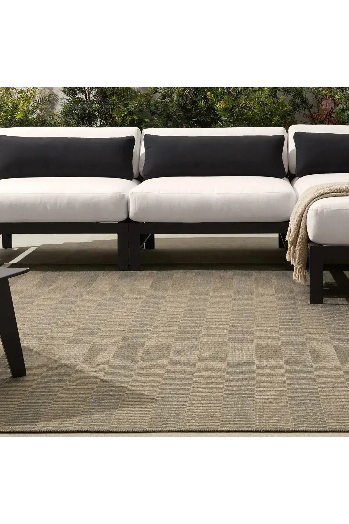 Meet the Sacdecer Rug. Hand crafted in India from 100% PET yarn, sourced from recycled plastic bottles, it's both durable and environmentally friendly. Designed to withstand outdoor elements and heavy traffic, this rug seamlessly merges functionality with style. Samples are modeled at our North Scottsdale/Phoenix location.