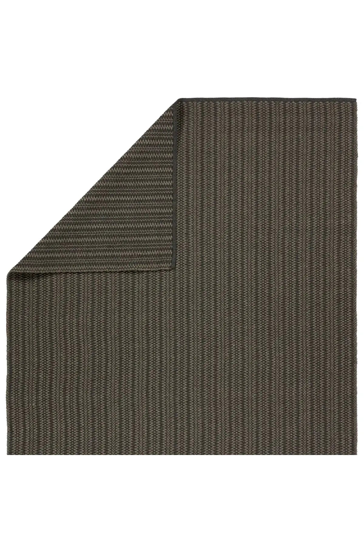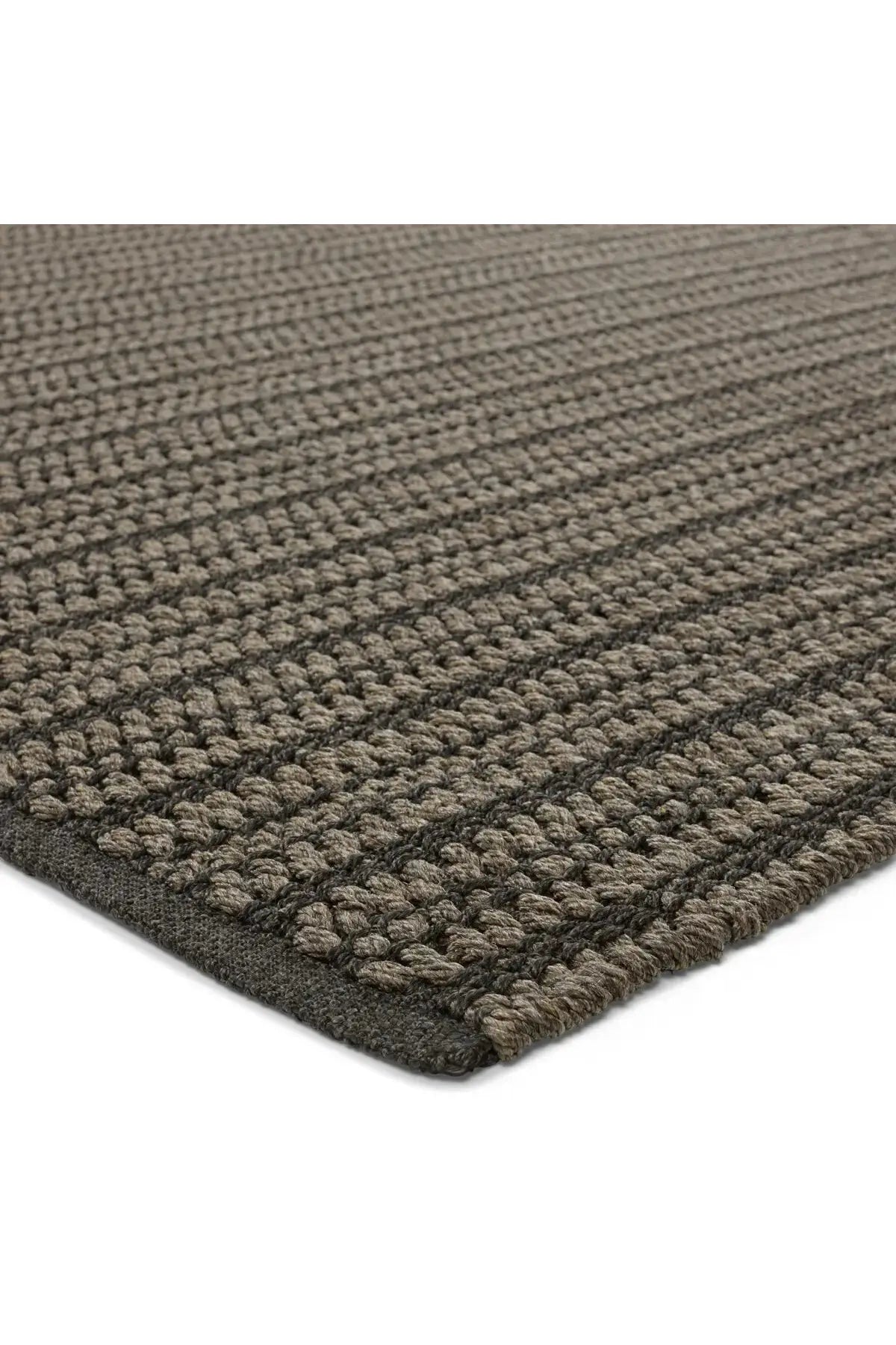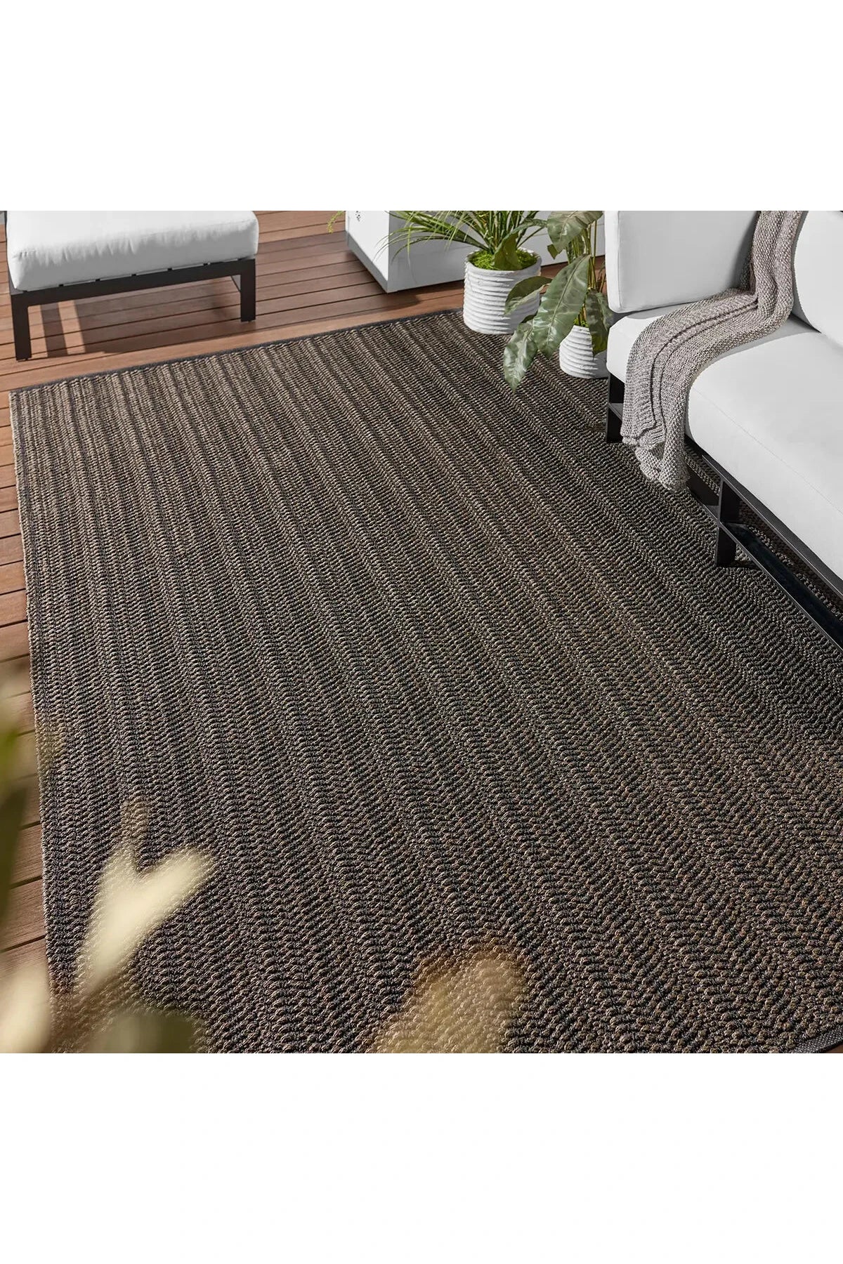 Meet the Talin Rug - Black. Handwoven of thick and durable performance fibers, the Talin collection offers a sturdy accent with evocative texture to any space. Neutral, versatile colorways combine with an undulating striped weave for a not-so-solid, but perfectly grounding, modern design. The design's gray and charcoal hues thrive both indoors and out, easily hiding dirt and scuffs from everyday foot traffic. The 100% polypropylene fibers are water, stain, fade and we ther-resistant for an all-around high-performance piece for busy homes with children and pets.